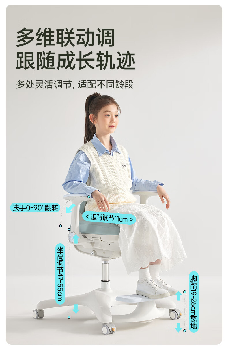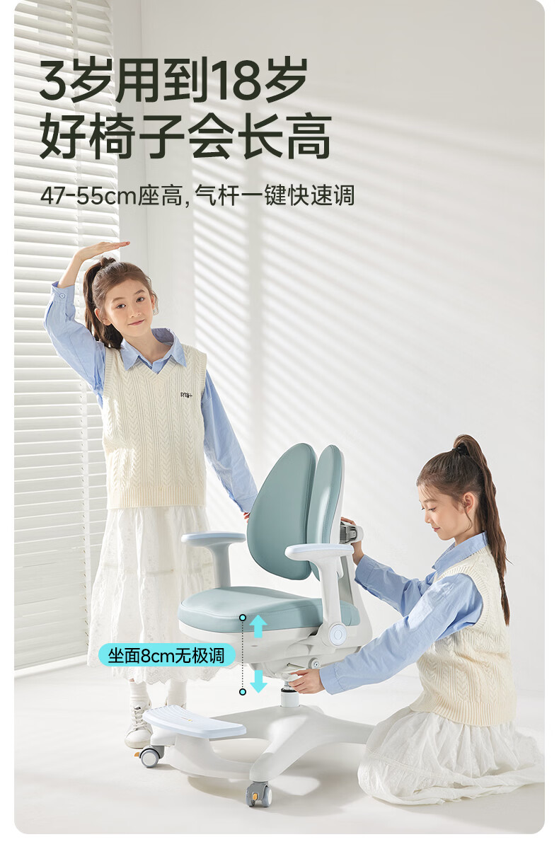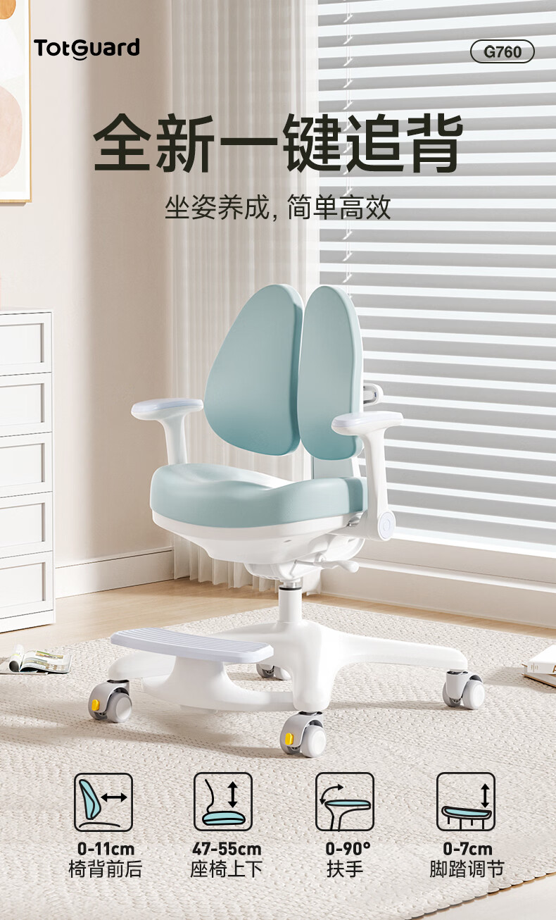 护童(Totguard)儿童学习椅子6-18岁儿童座椅学生写字椅带靠背可升降调节餐椅 G760-蓝【耐污科技皮+11cm追背正姿】
