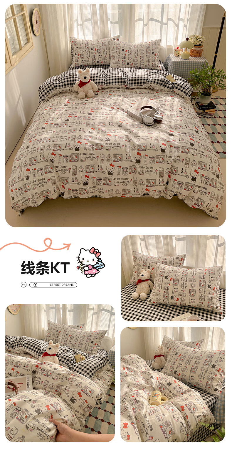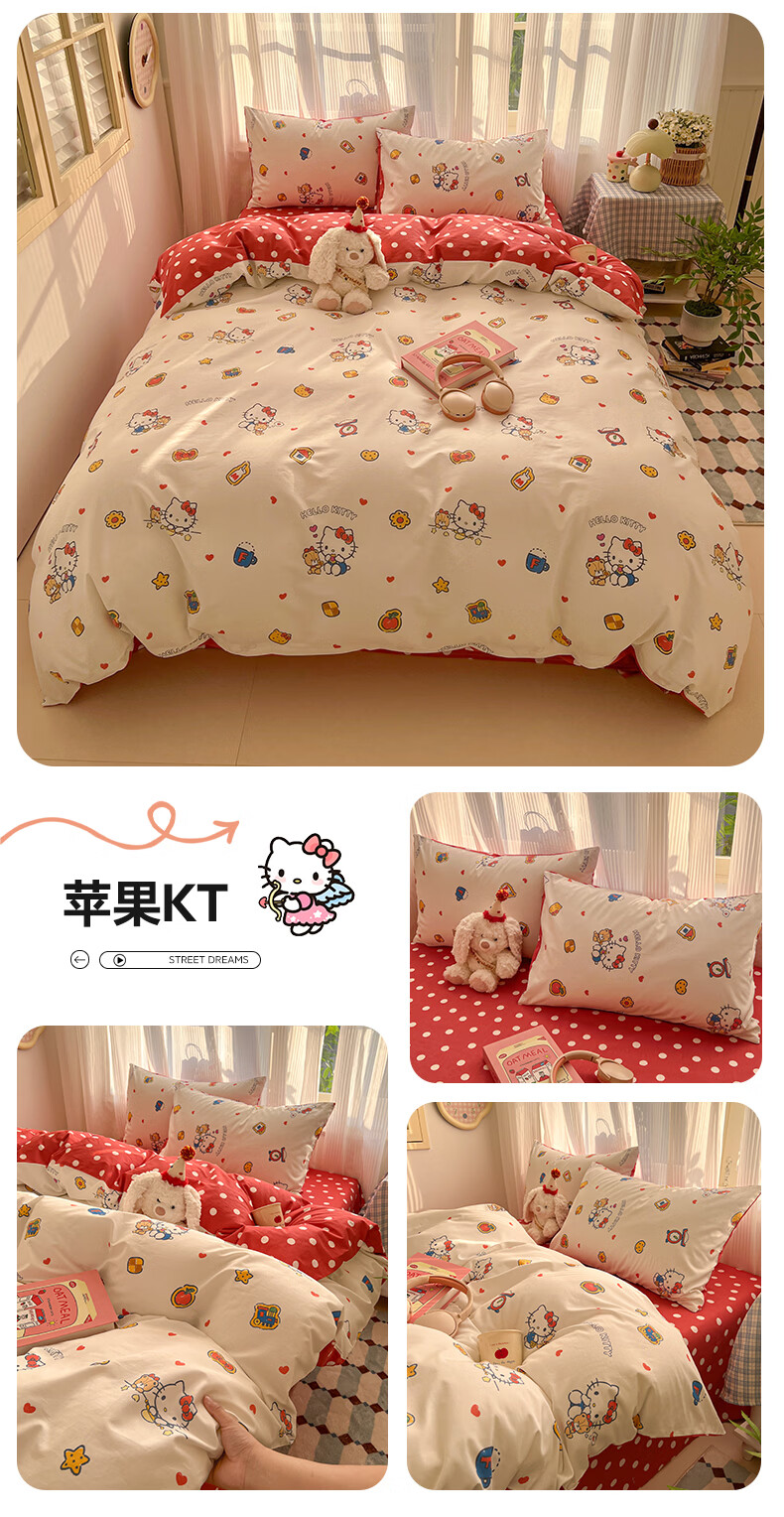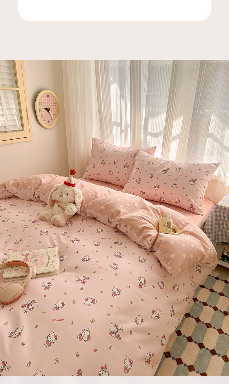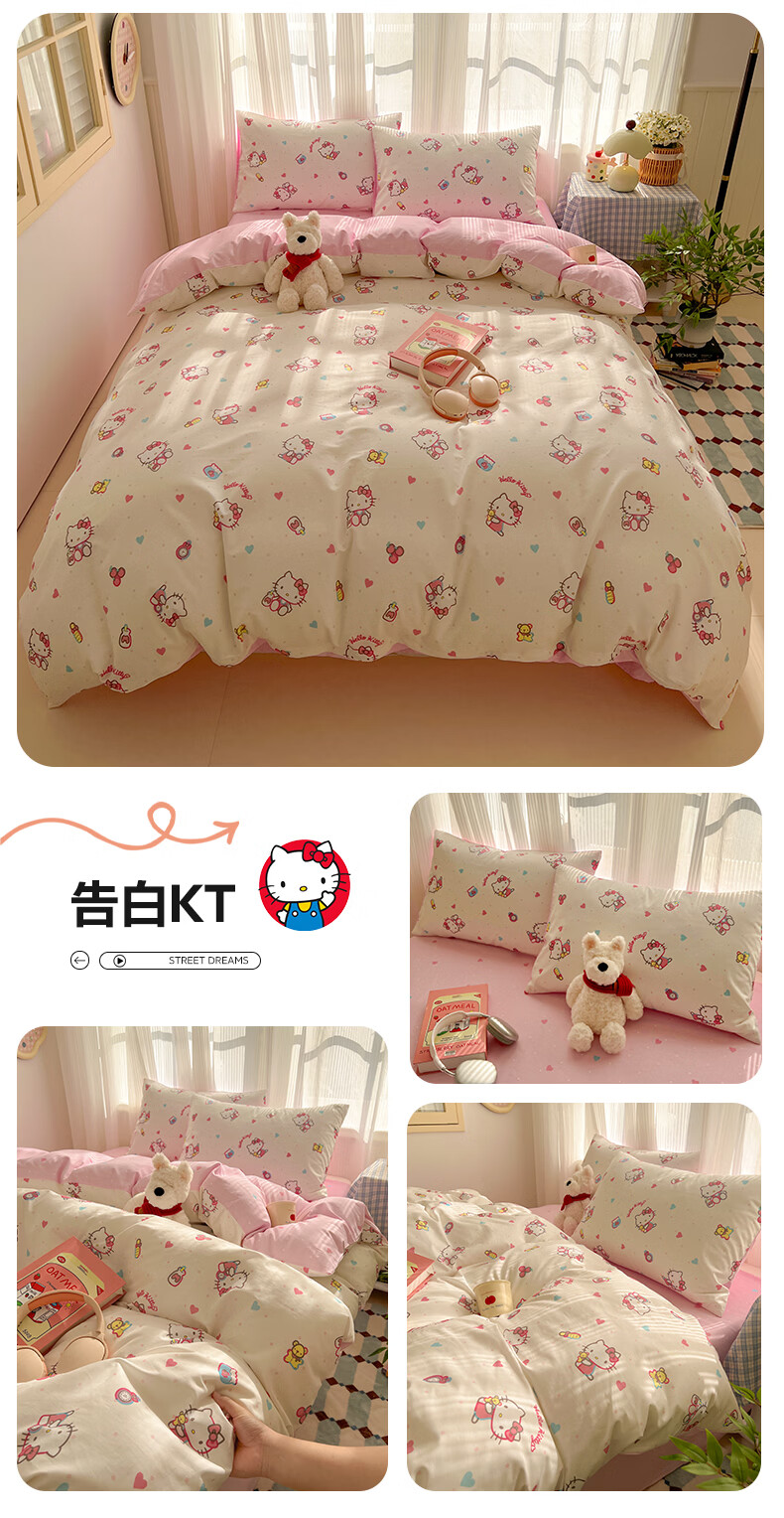 无印良品卡通全棉纯棉被套150x200cm单人被罩单件亲肤裸睡床上用品四件套4 告白KT【新疆纯棉 亲肤柔软】 150cm*200cm 单被套