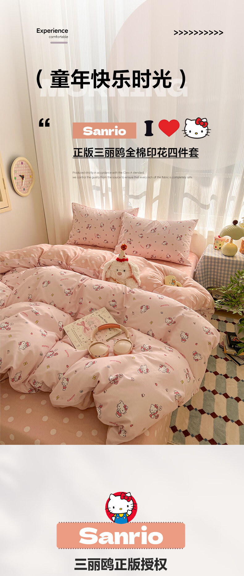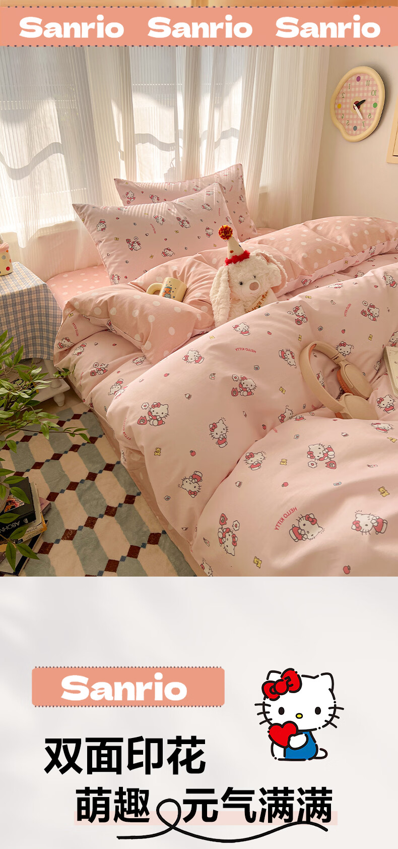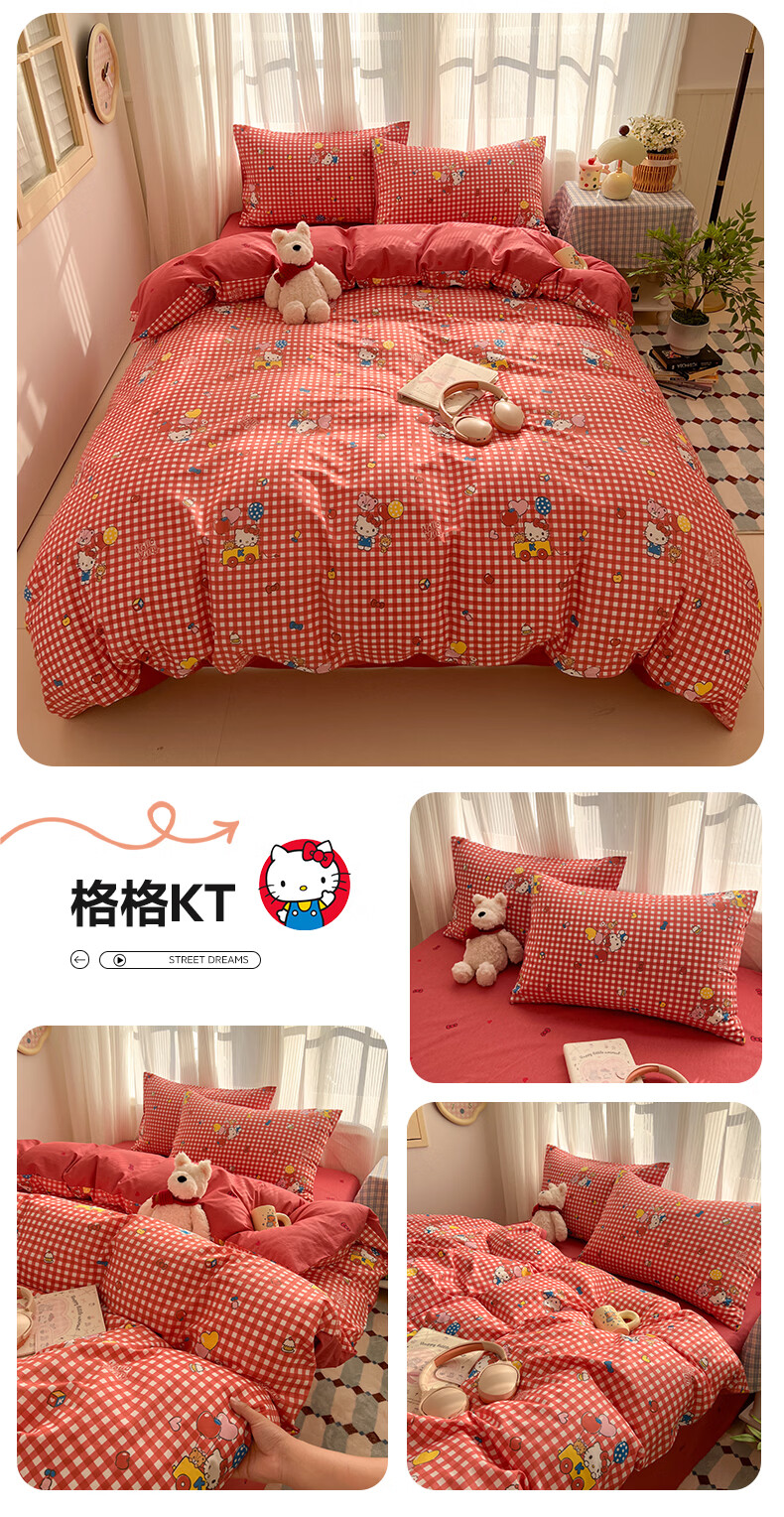 无印良品卡通全棉纯棉被套150x200cm单人被罩单件亲肤裸睡床上用品四件套4 告白KT【新疆纯棉 亲肤柔软】 150cm*200cm 单被套