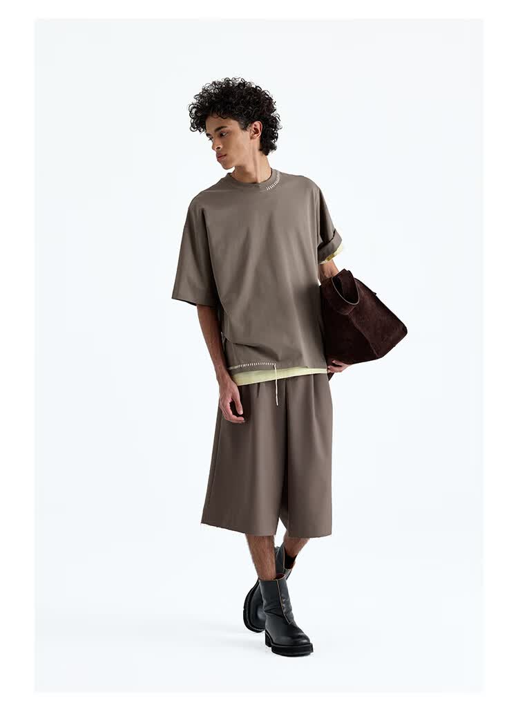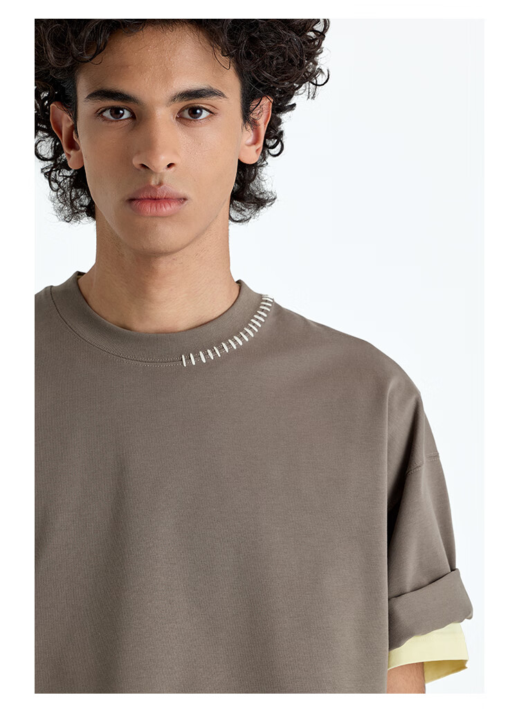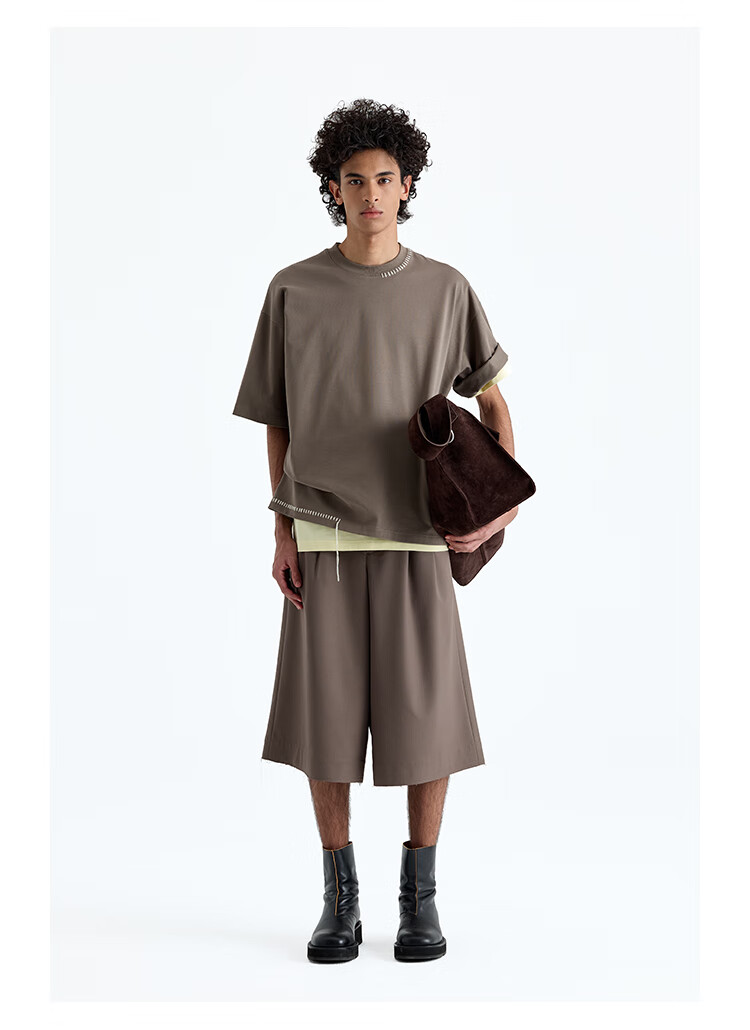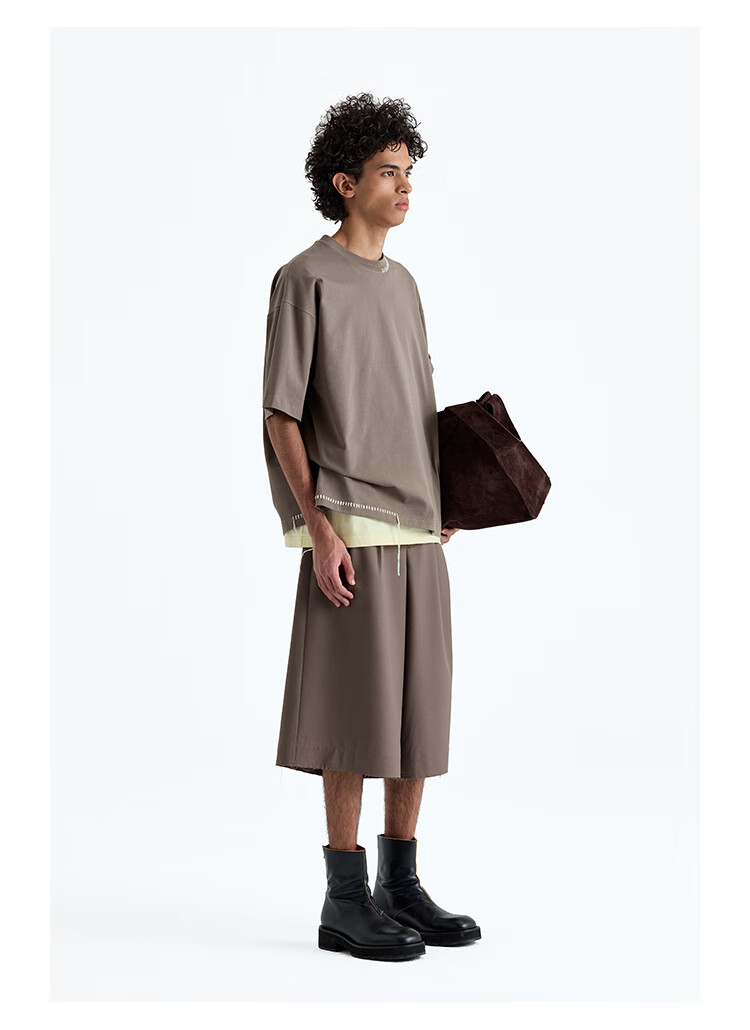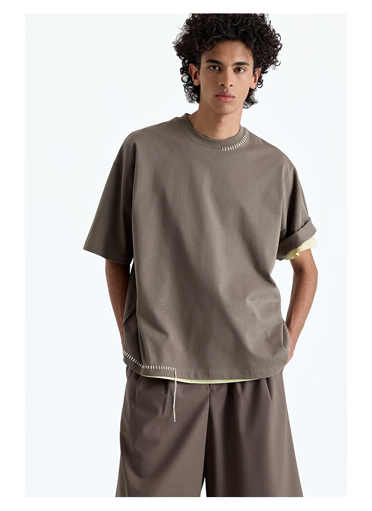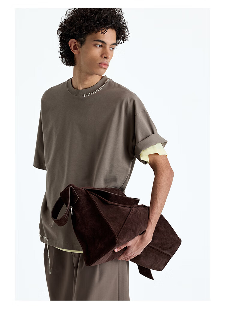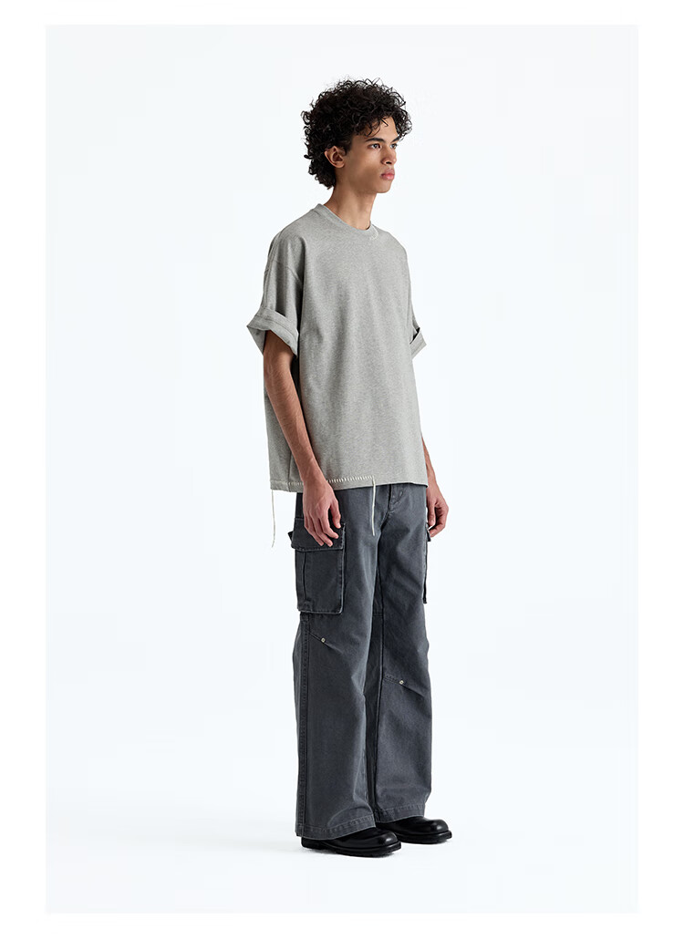 NANS STUDIO 300G新疆长绒棉手工缝线流苏设计窄圆领廓形短袖TEE NS9A11 GRAY / 麻灰 现货 S