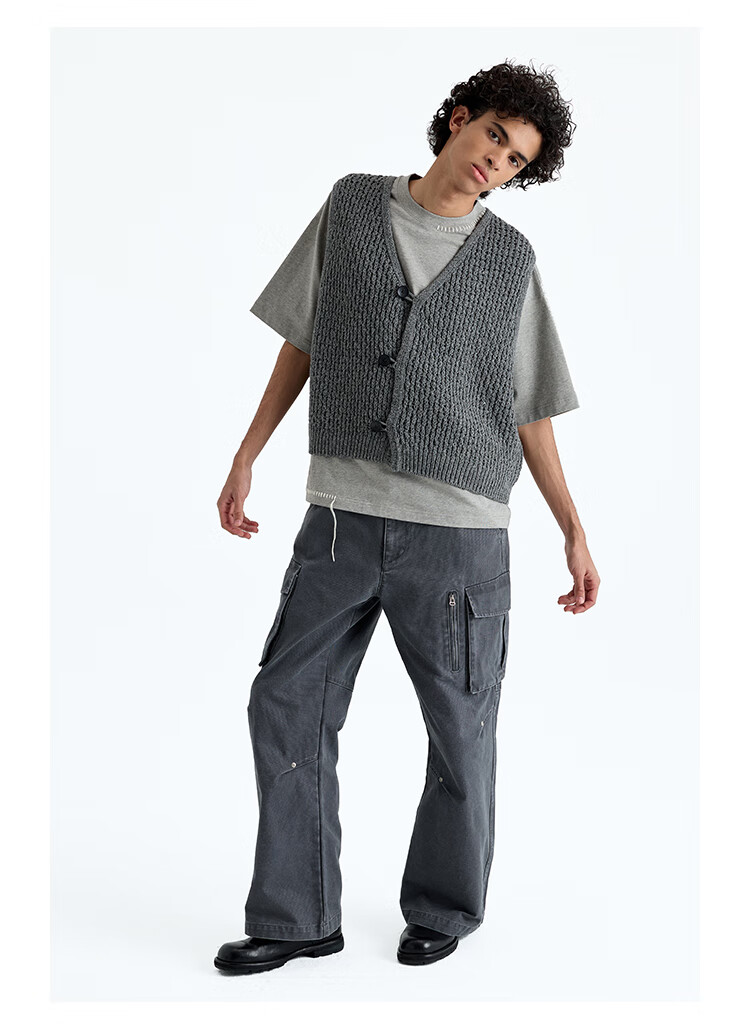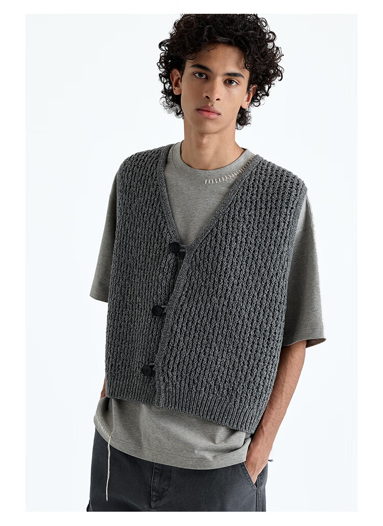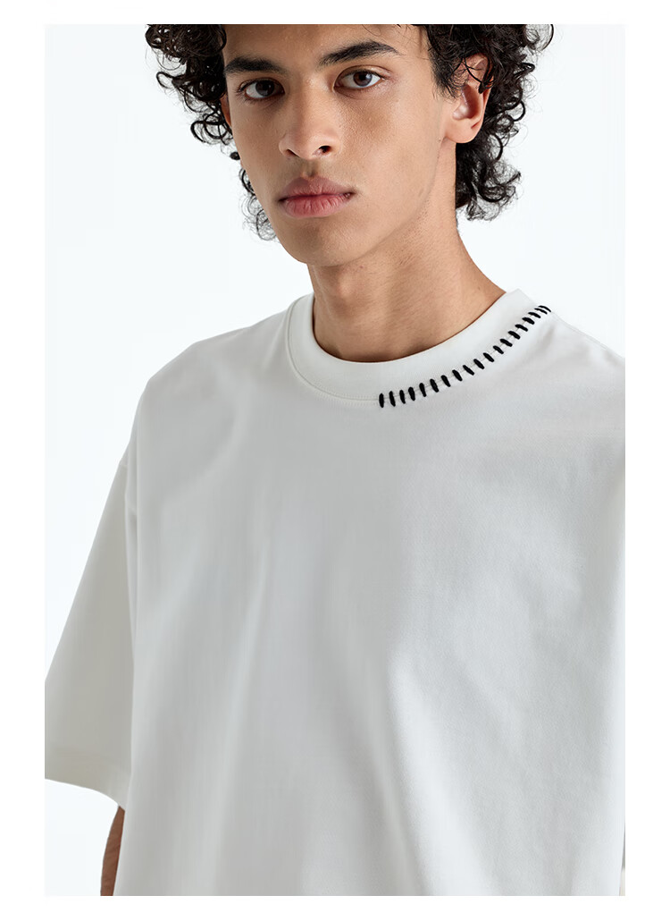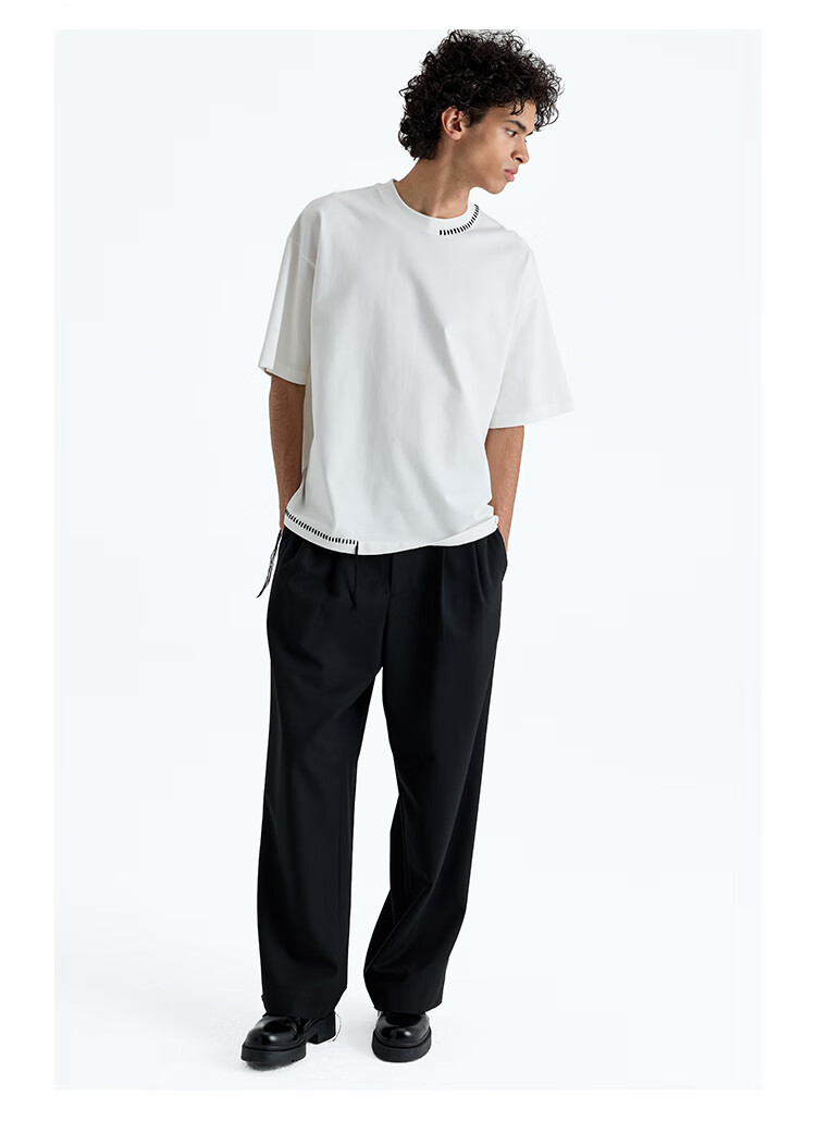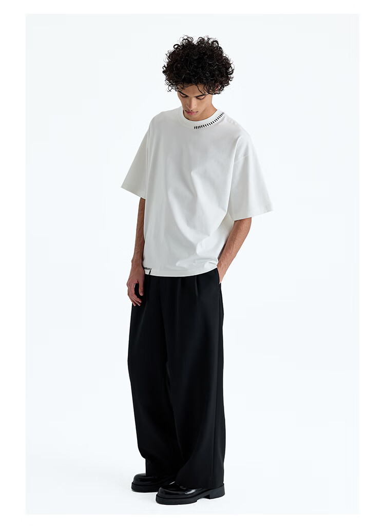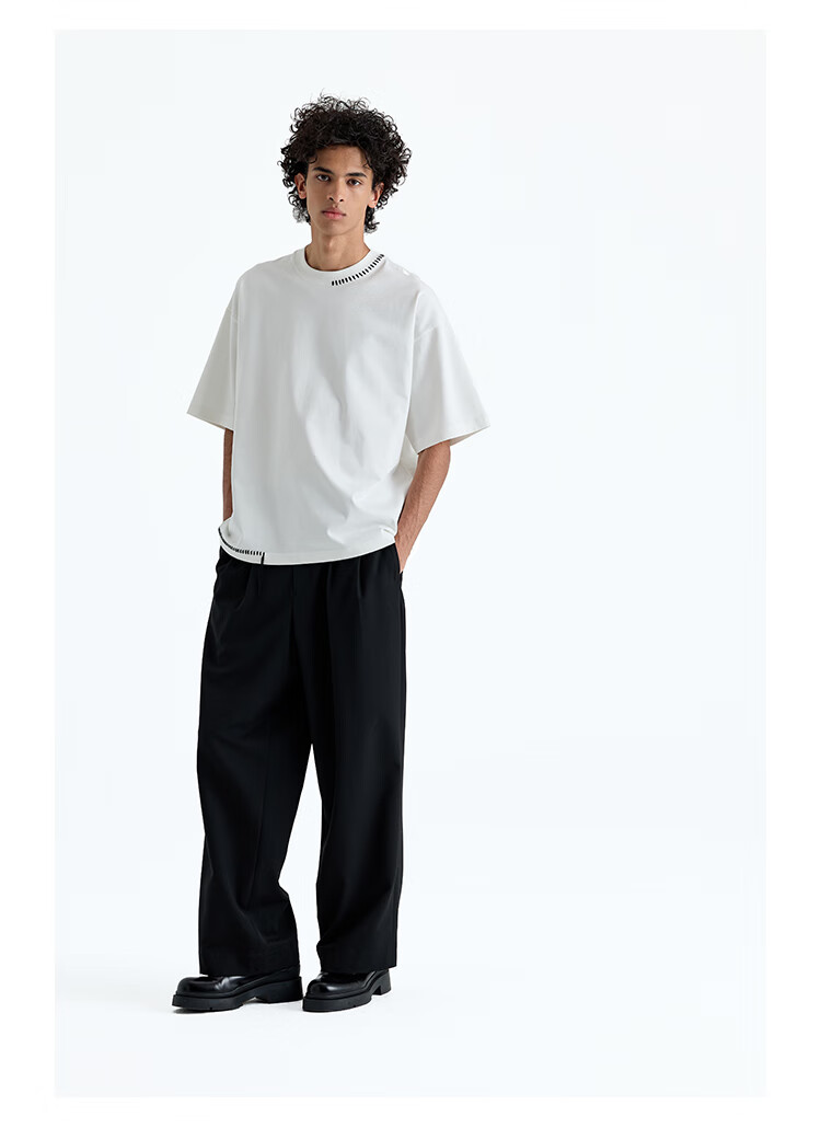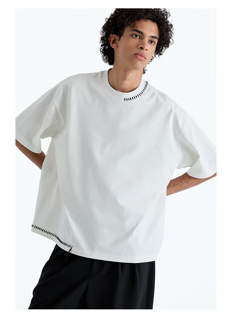 NANS STUDIO 300G新疆长绒棉手工缝线流苏设计窄圆领廓形短袖TEE NS9A11 GRAY / 麻灰 现货 S