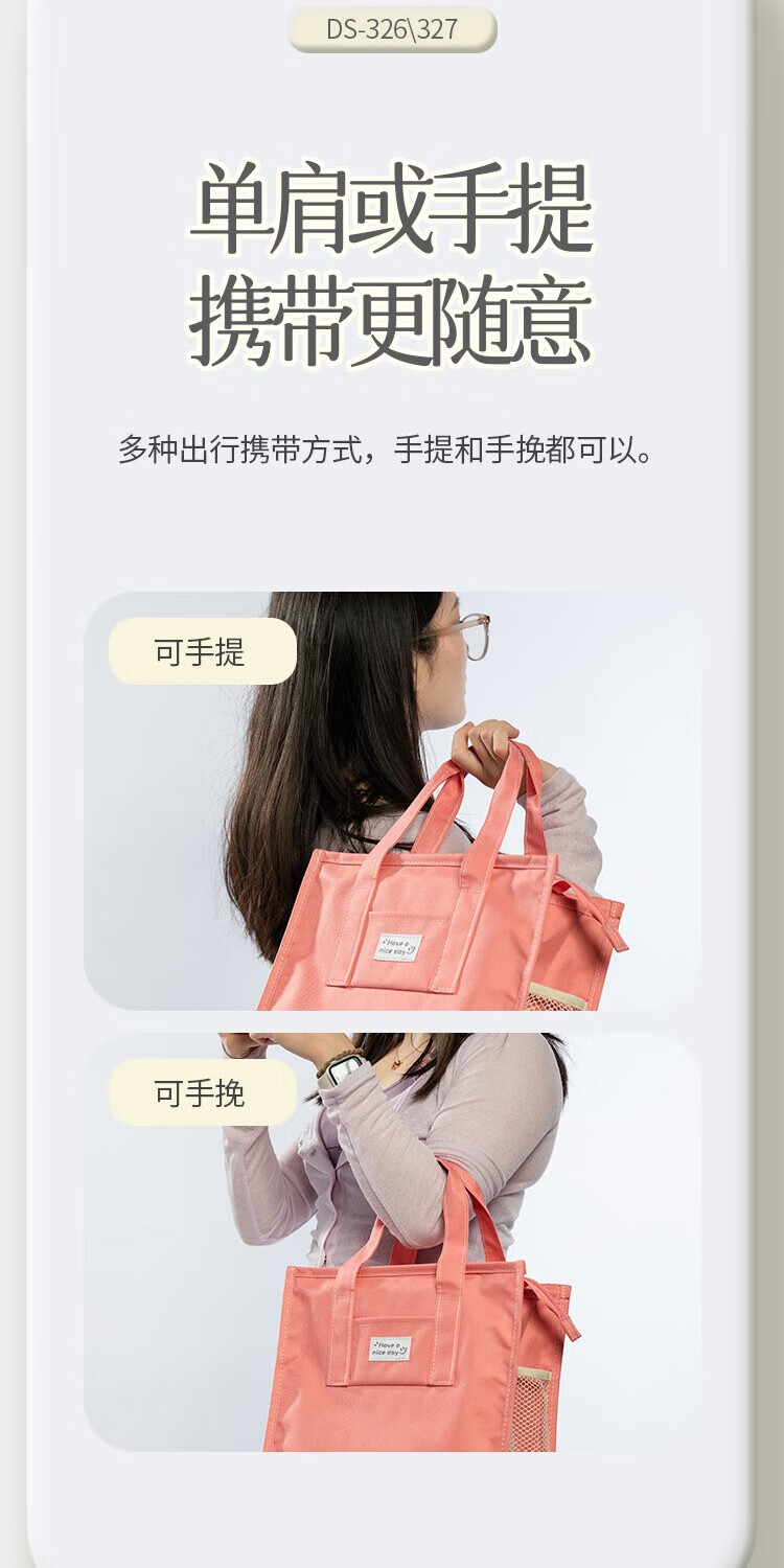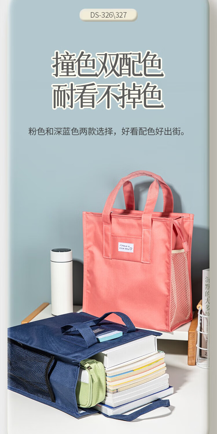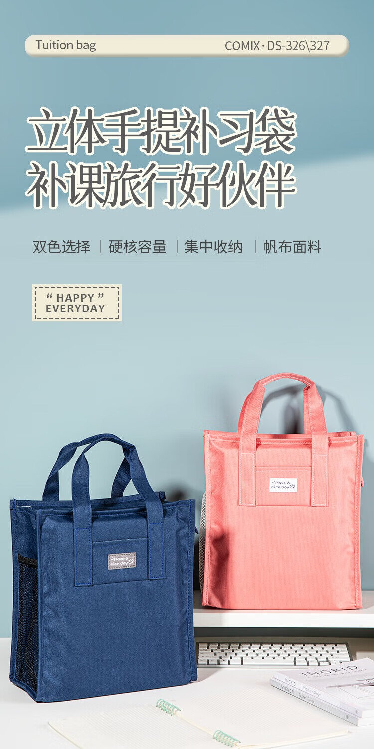 齐心(COMIX)学生手提收纳袋补习袋书包帆布收奶带 证件收纳包文件包资料册洗漱收纳包 便捷收纳 粉色-DS-326