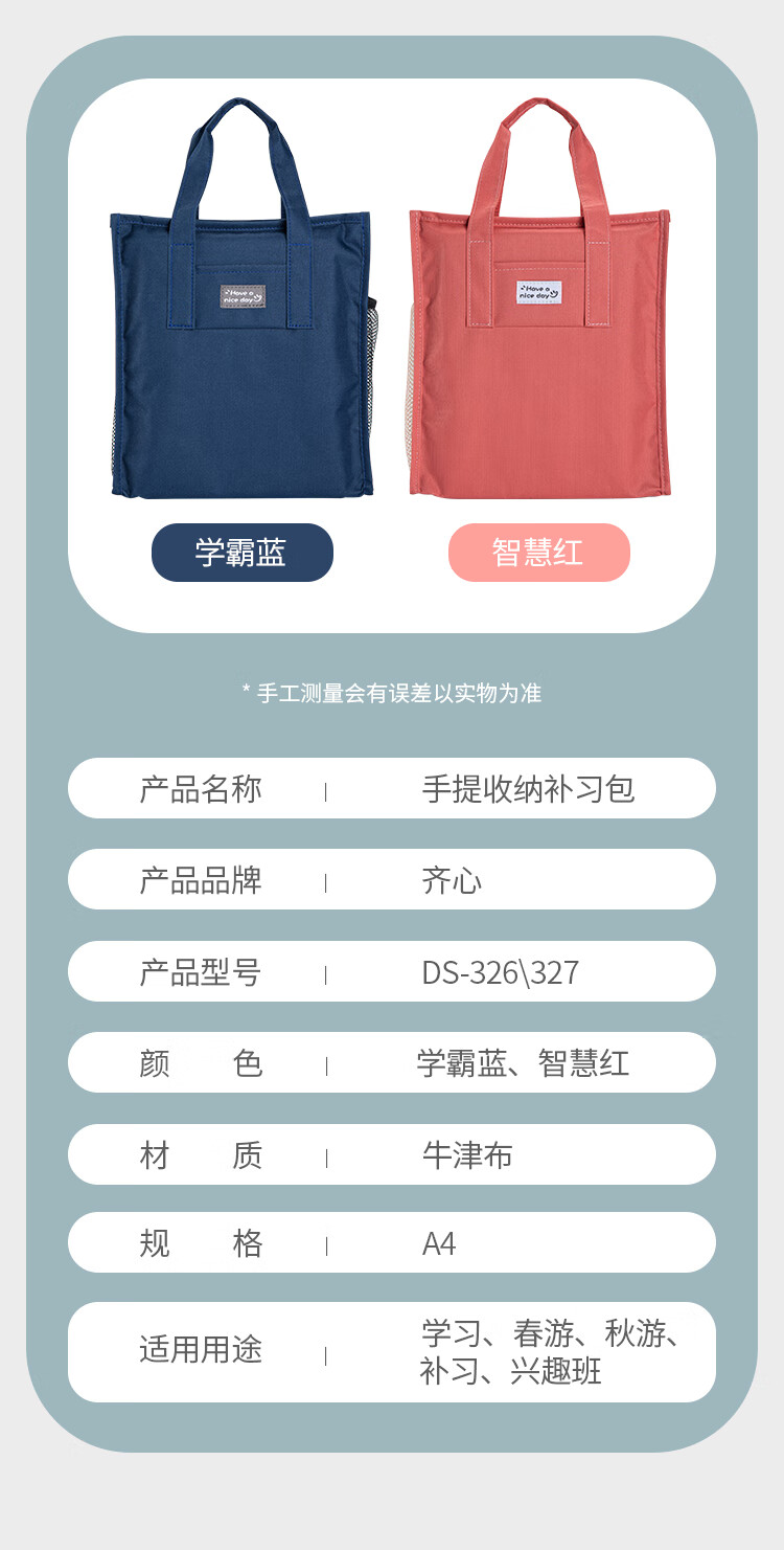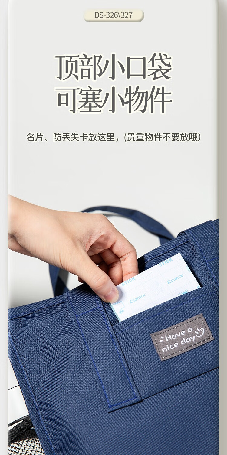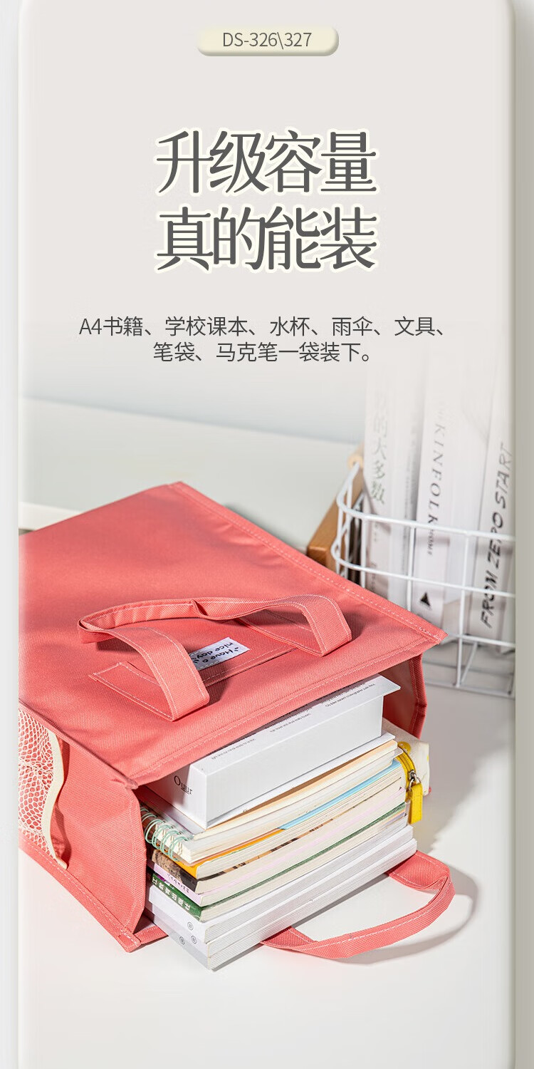 齐心(COMIX)学生手提收纳袋补习袋书包帆布收奶带 证件收纳包文件包资料册洗漱收纳包 便捷收纳 粉色-DS-326