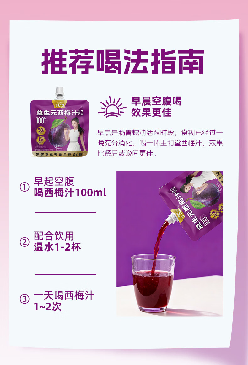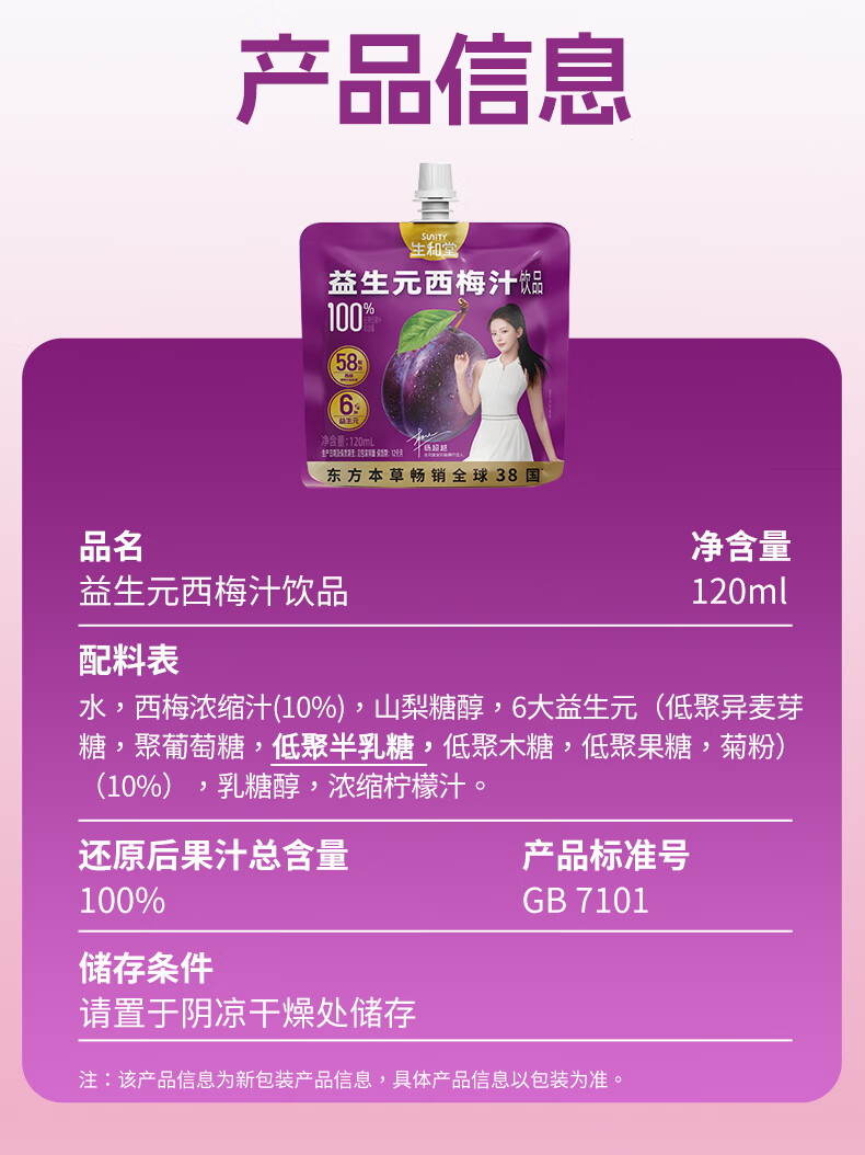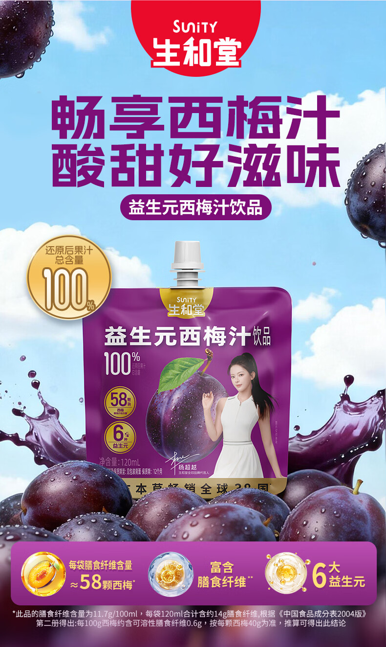生和堂益生元西梅汁120ml 6大益生元含膳食纤维复合果蔬饮料 益生元西梅汁120ml*10袋