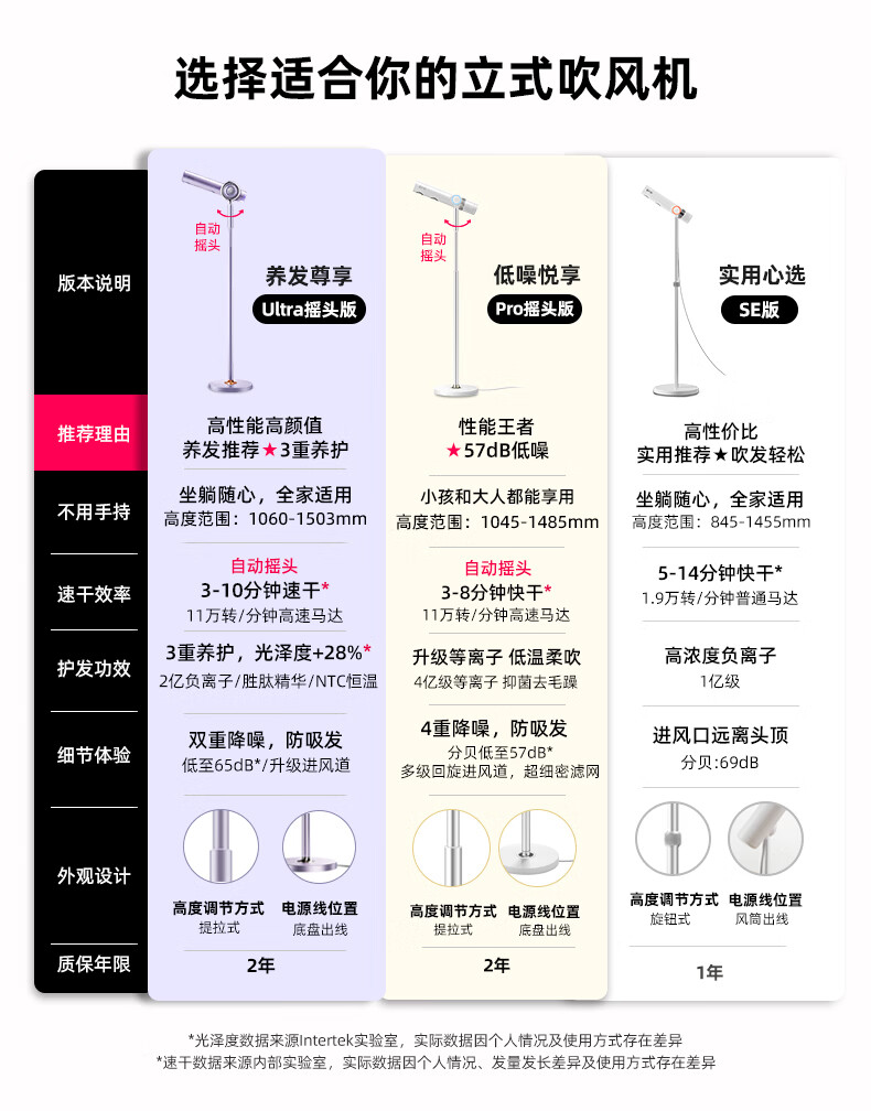 品仕乐立式电吹风机家用恒温冷热负离子护发大功率速干 免手持折叠无线遥控双出风口 皓月白(pro摇头版)