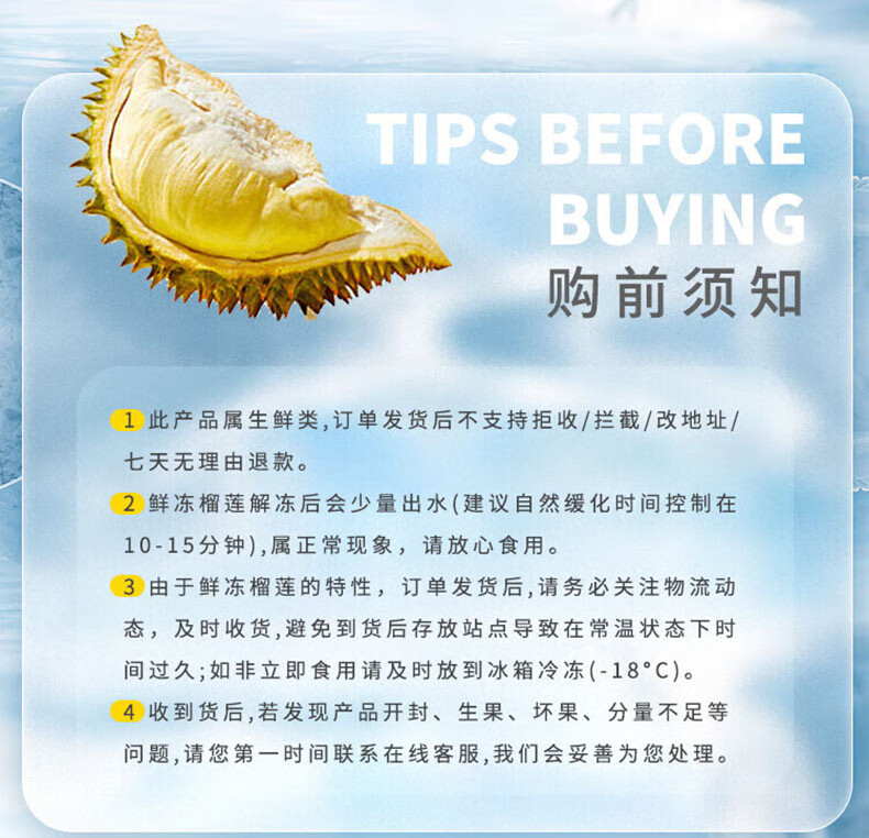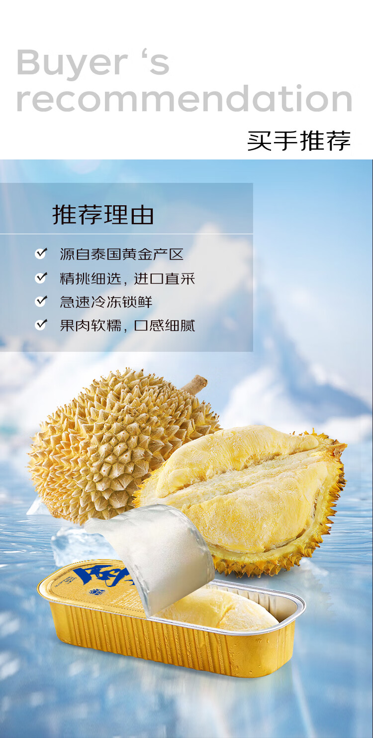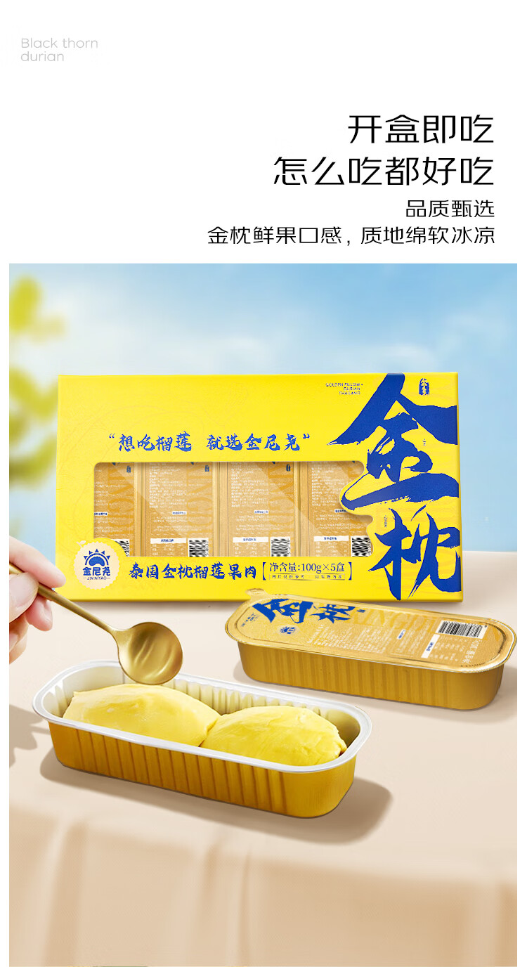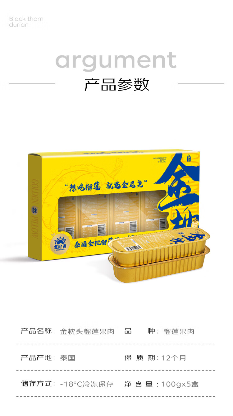 麓鹊泰国进口金枕榴莲冷冻果肉生鲜水果 100g*10盒【90%用户选择】