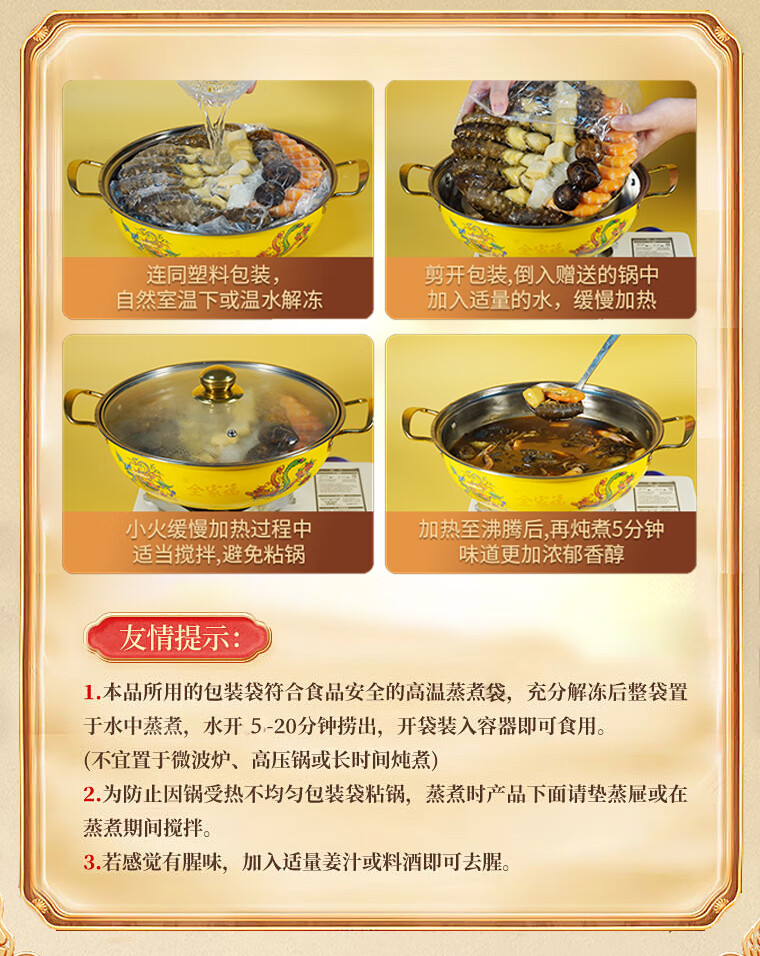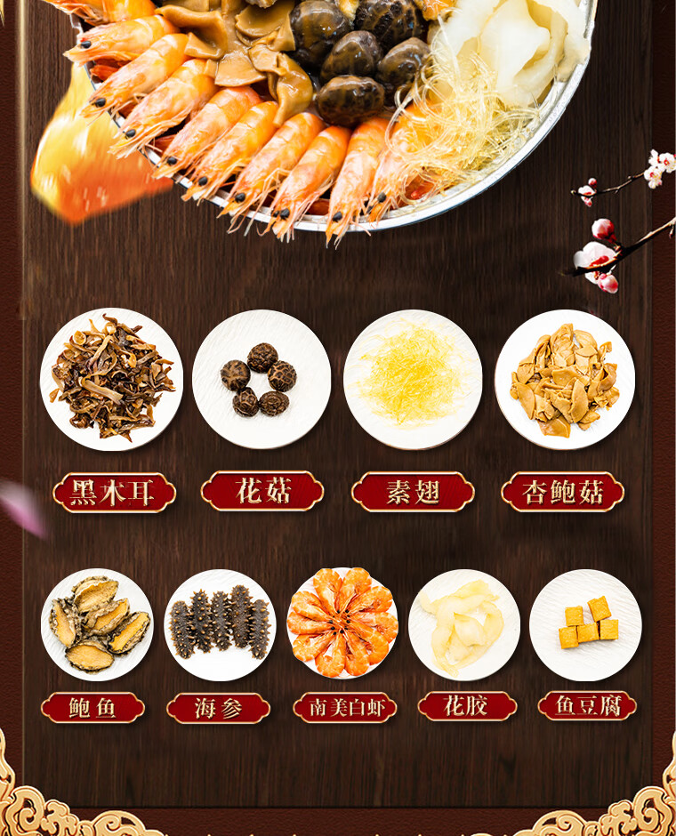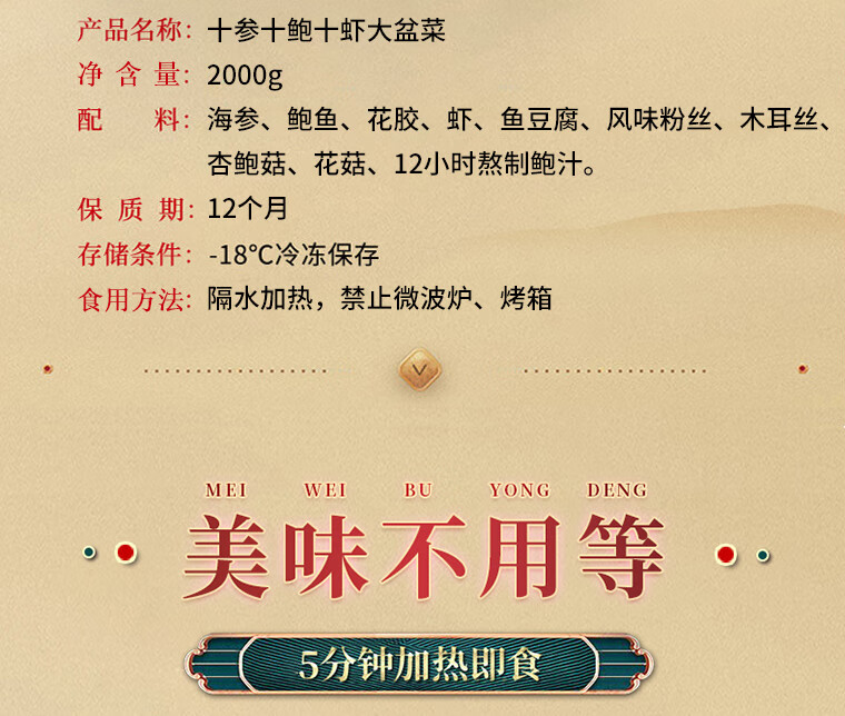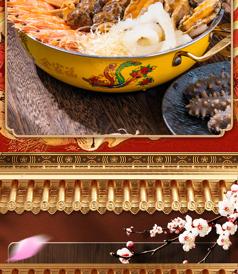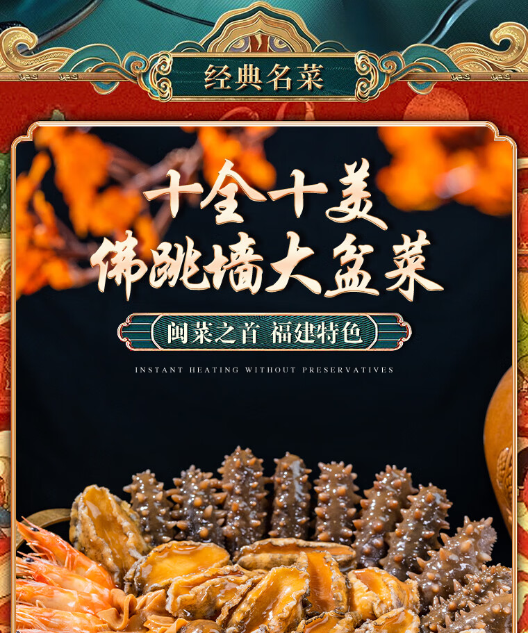 灯火岛佛跳墙大盆菜 加热即食预制菜方便菜 春节年货节日送礼海鲜礼盒 【十参十鲍大盆菜-1750g】不带锅 1箱