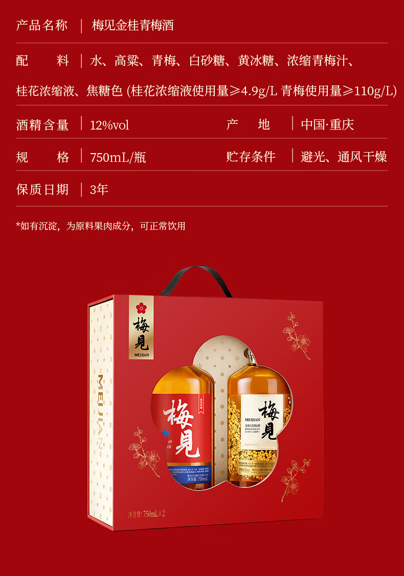 梅见新年礼盒12度750ml*2低度青梅酒果酒节日送礼 伴手礼 果酒新年礼盒