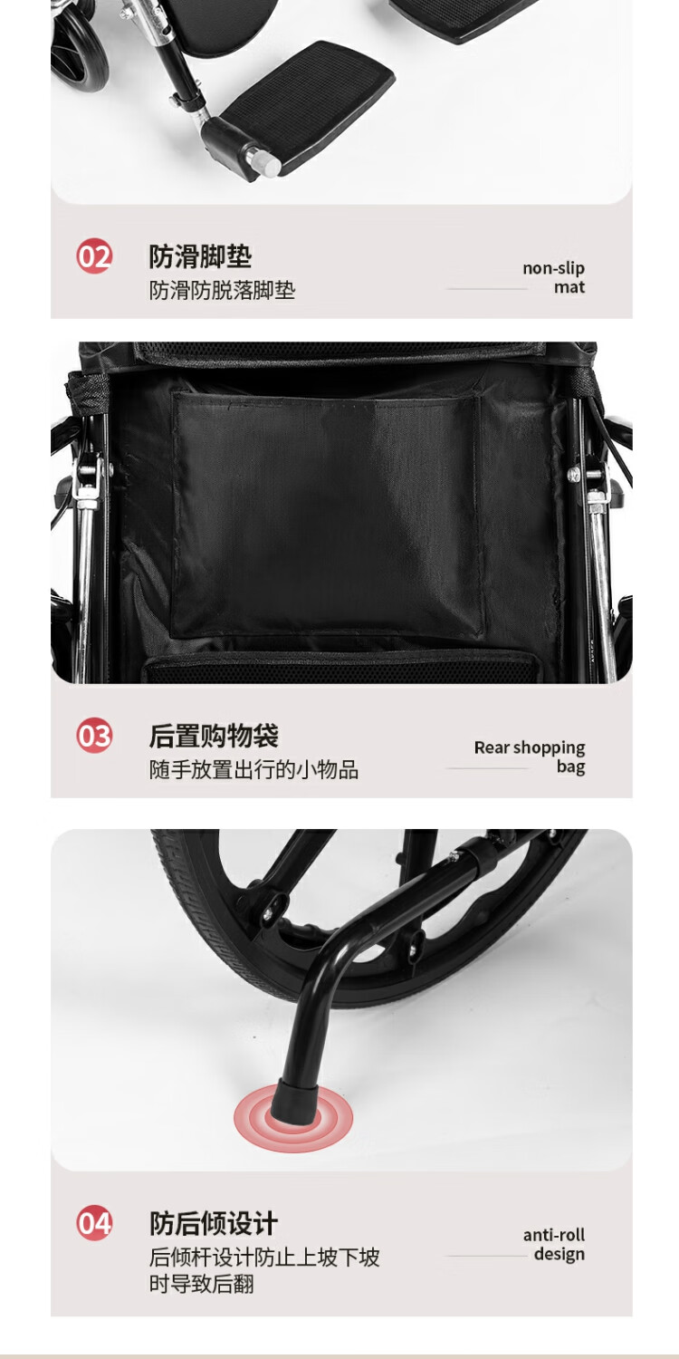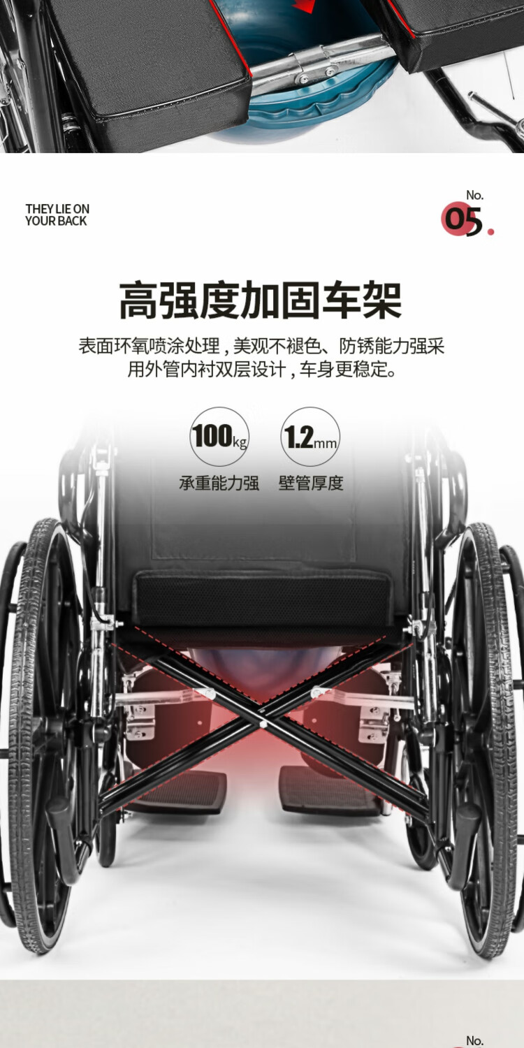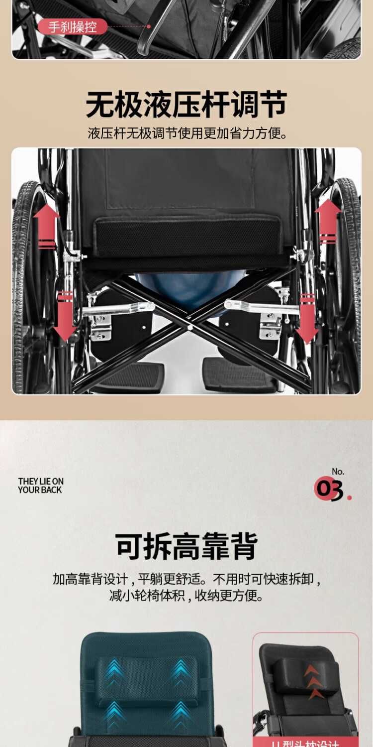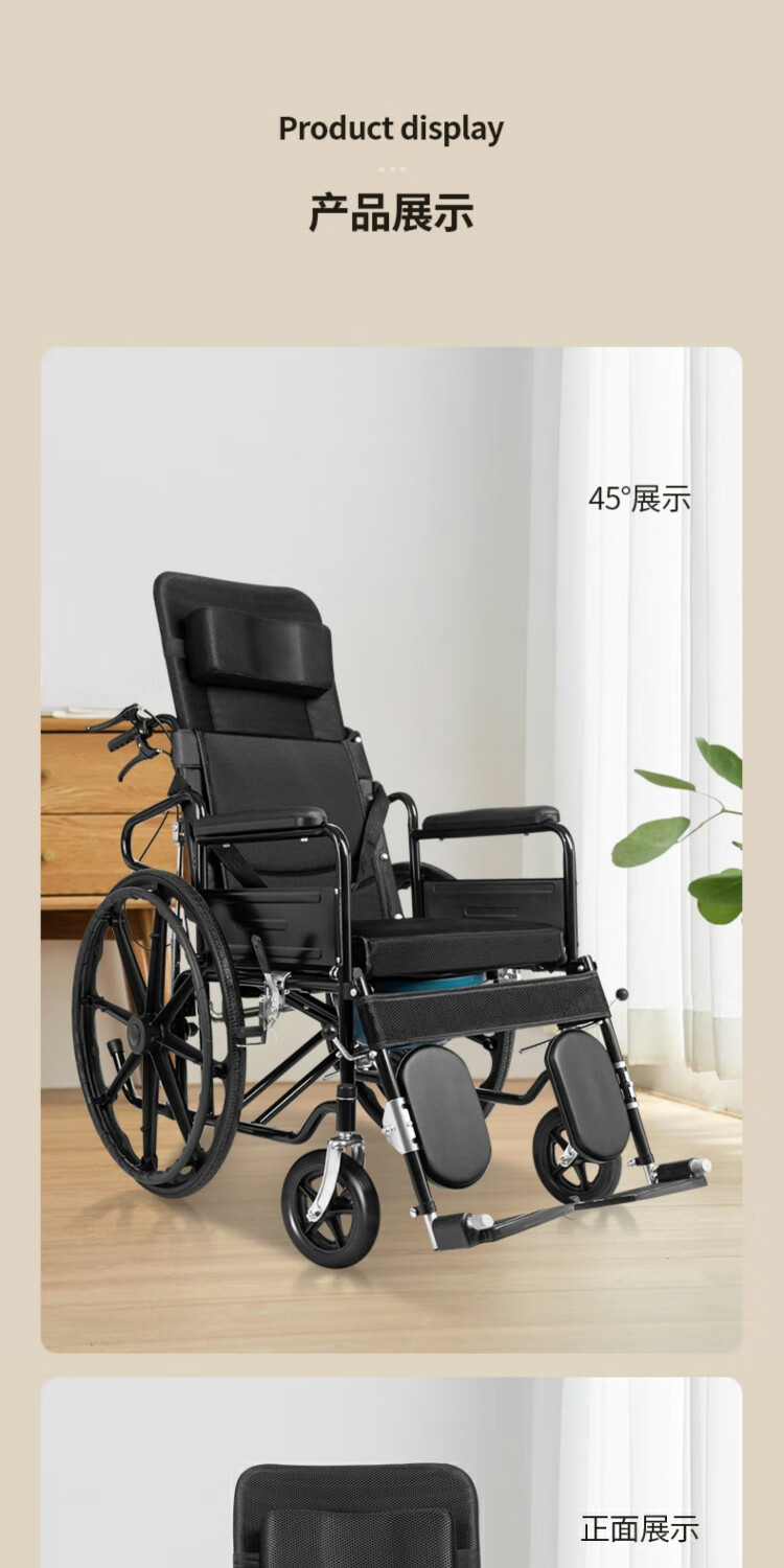 康立普(CANLIPE)轮椅瘫痪老人专用出行轻便折叠全躺多功能可躺可洗澡大小便手推车 【液压】透气耐磨牛津布+加厚减震轻便铝圈轮