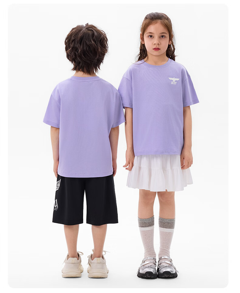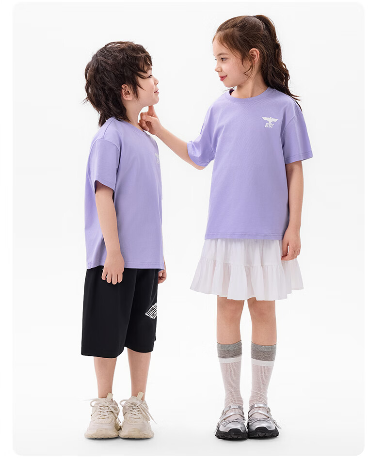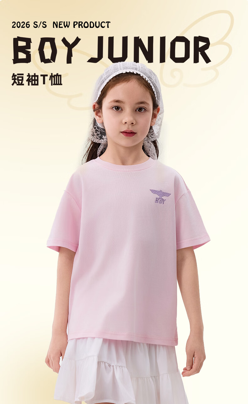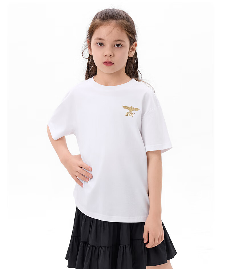 BOY JUNIOR春夏新款男童女童纯色短袖T恤夏季新款 白色 120