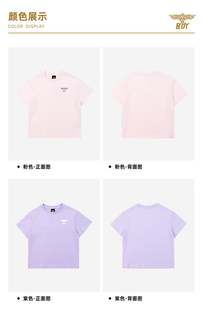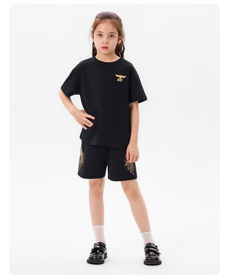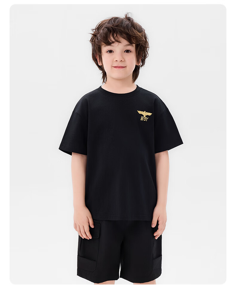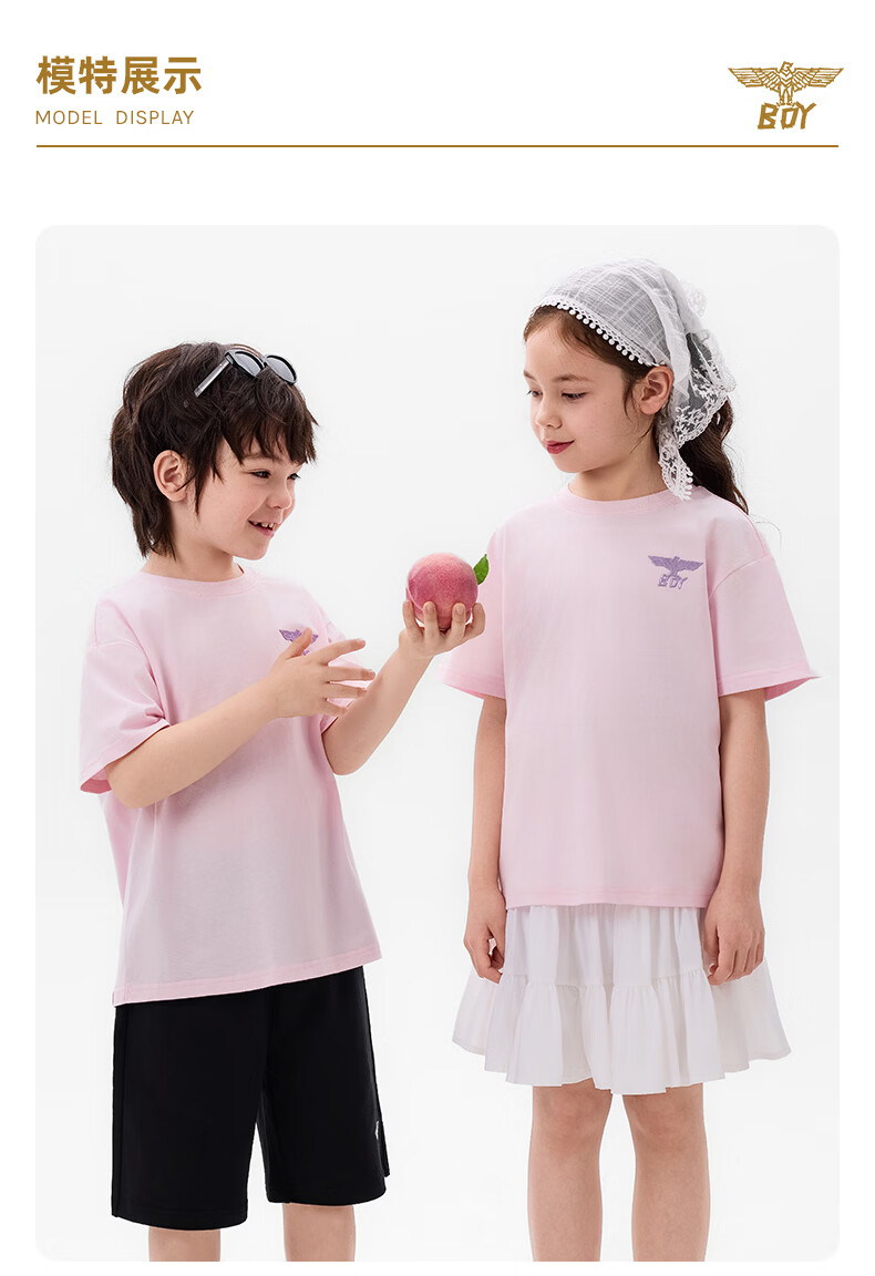 BOY JUNIOR春夏新款男童女童纯色短袖T恤夏季新款 白色 120