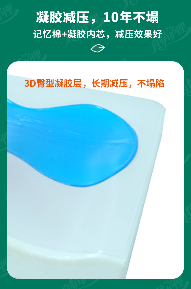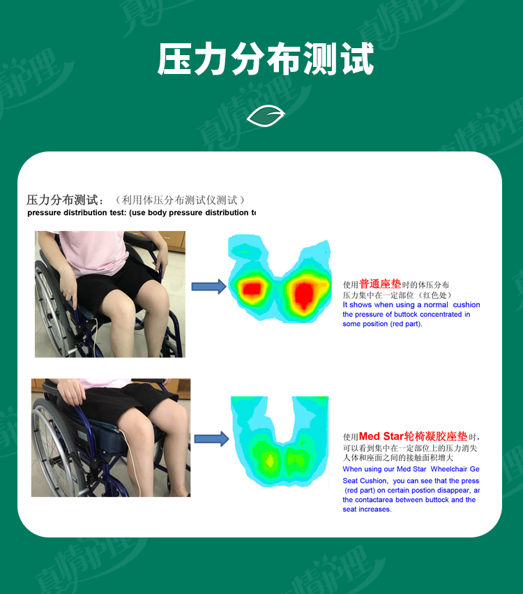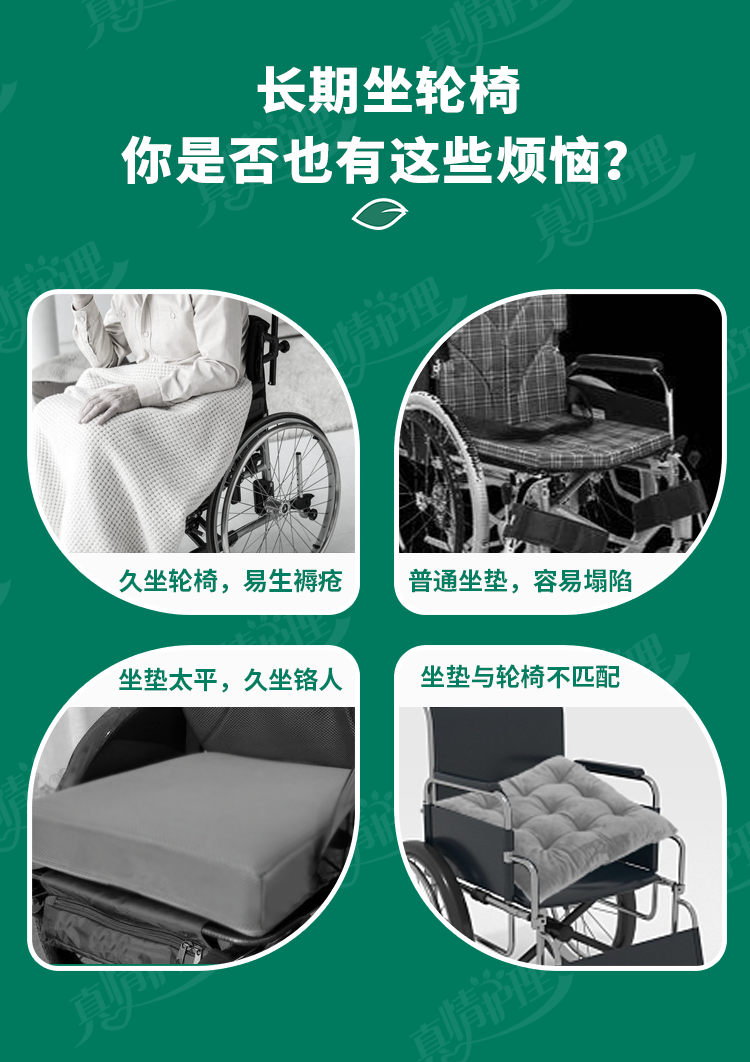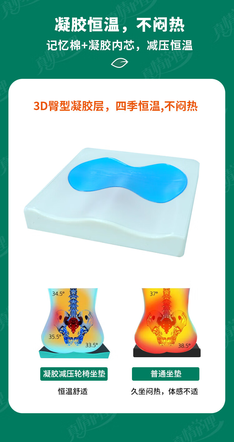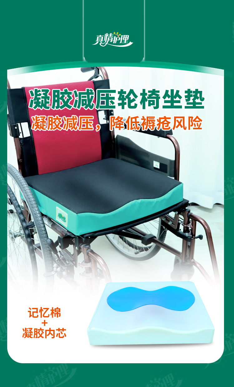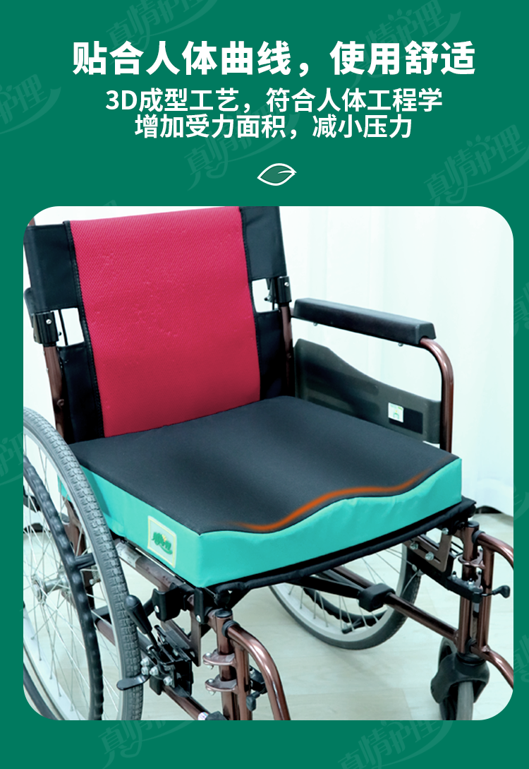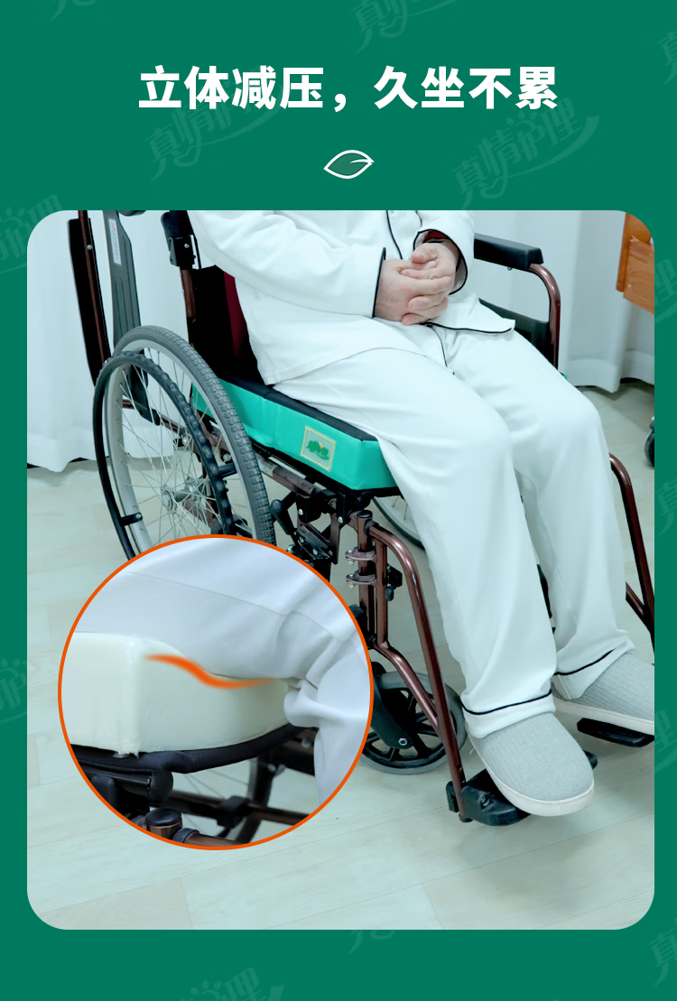 真情护理轮椅专用坐垫防褥疮坐垫减压轮椅坐垫老人专用轮椅垫 【久坐不塌】湖绿色