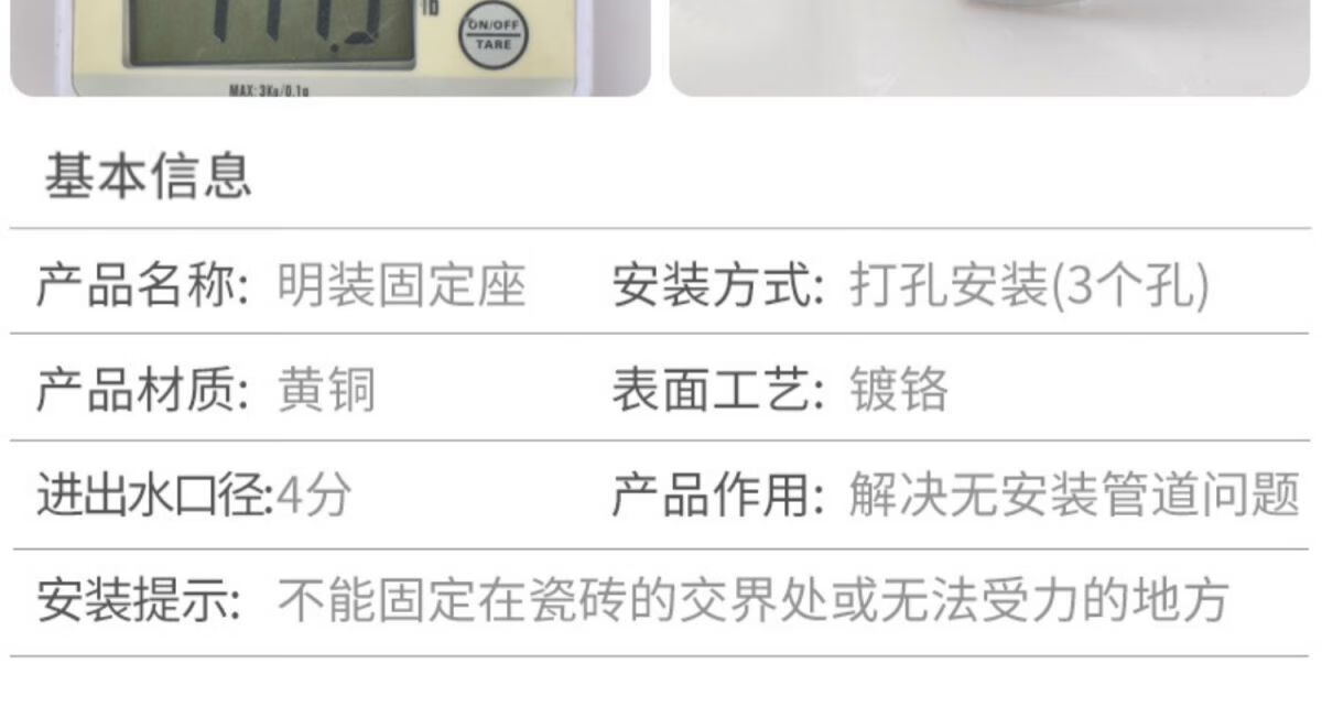 一靓4分明装水龙头固定底座全铜暗装改明装转接头支架墙座免打孔配件 4分特厚明装固定墙座【一只装】