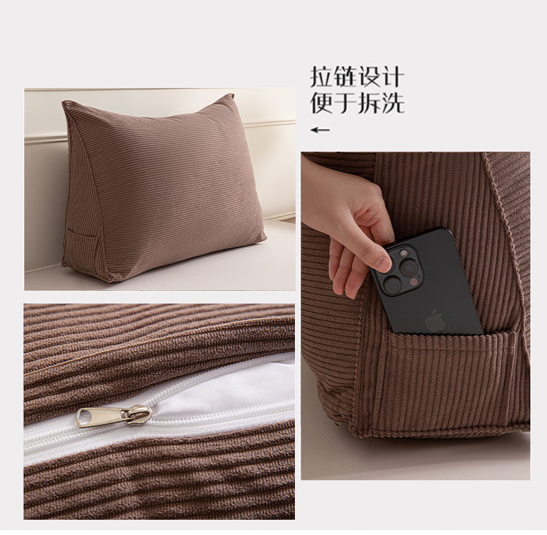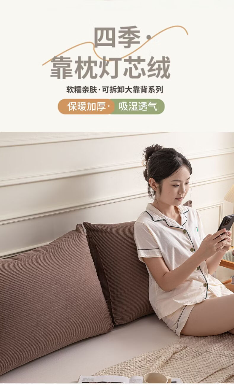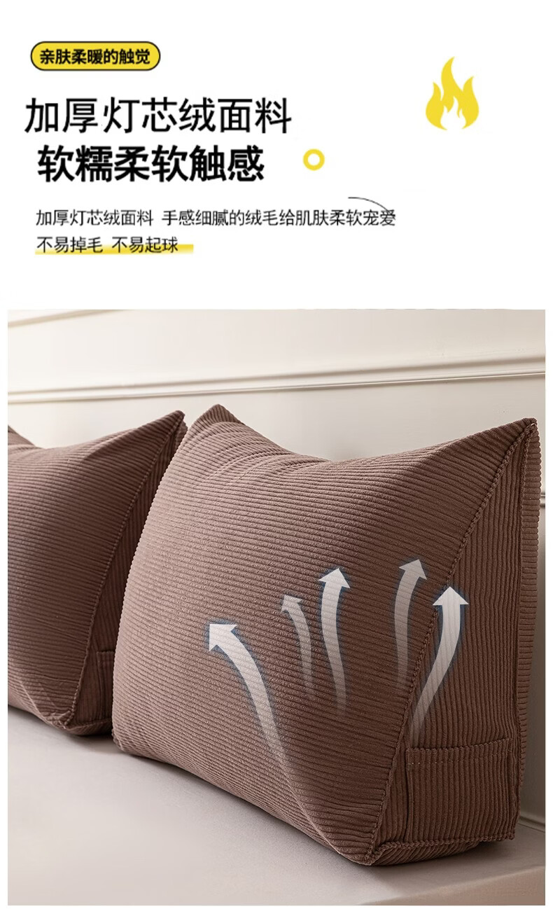 名创优品(MINISO)灯芯绒床头软包靠背垫子 床上大靠垫可拆洗腰靠枕 抹茶绿 70cm*45cm*25cm 含枕芯 单只装