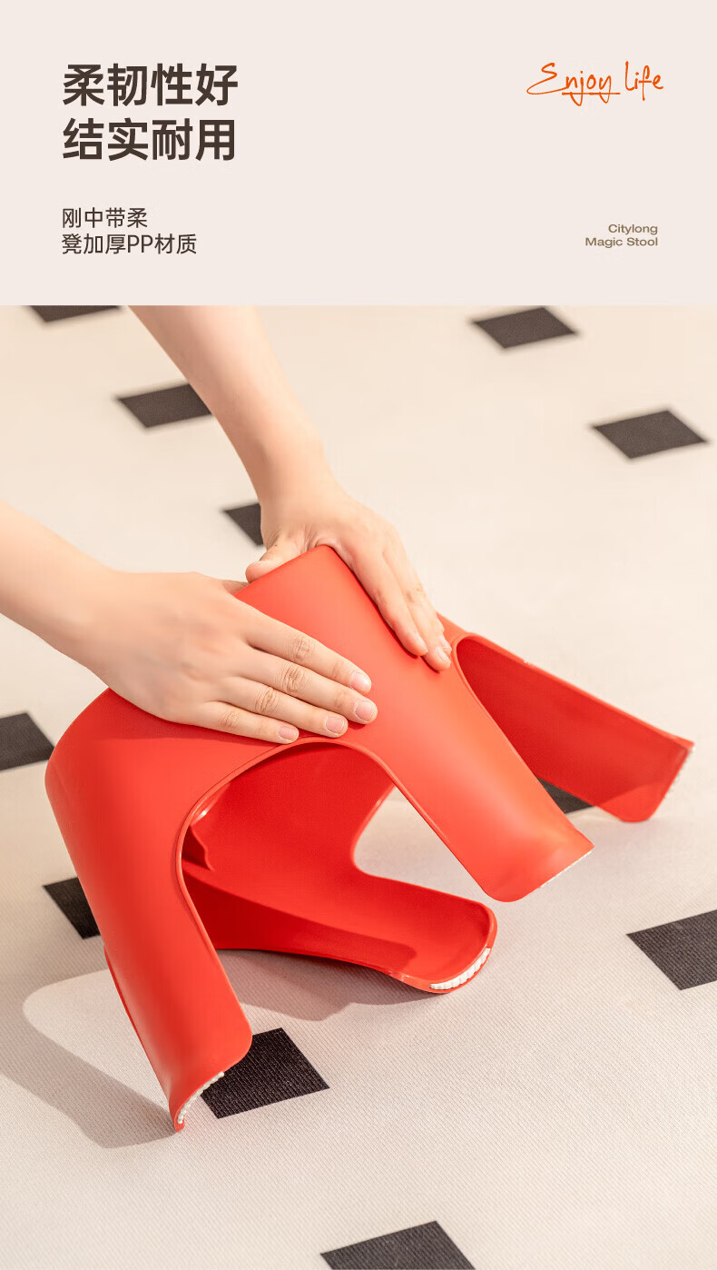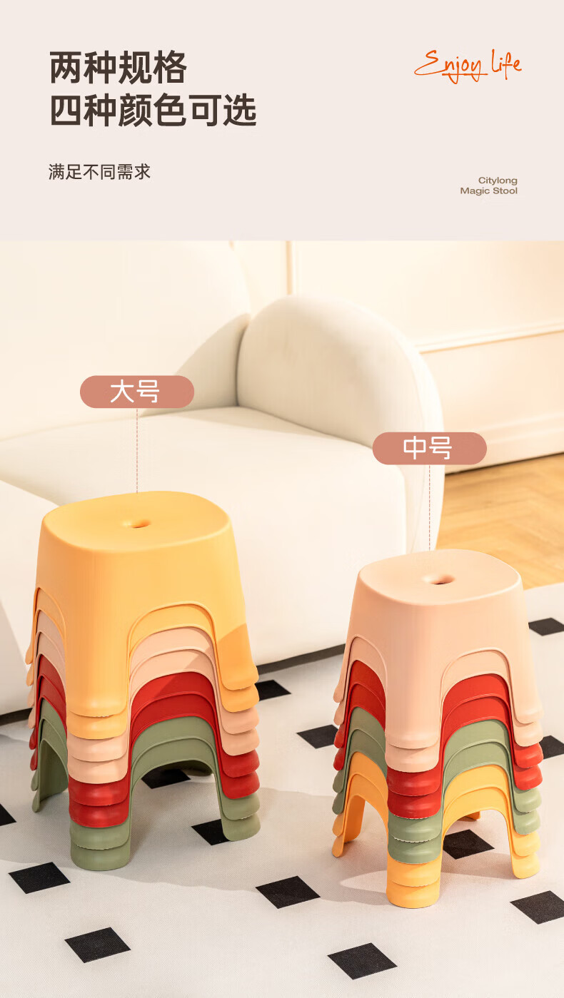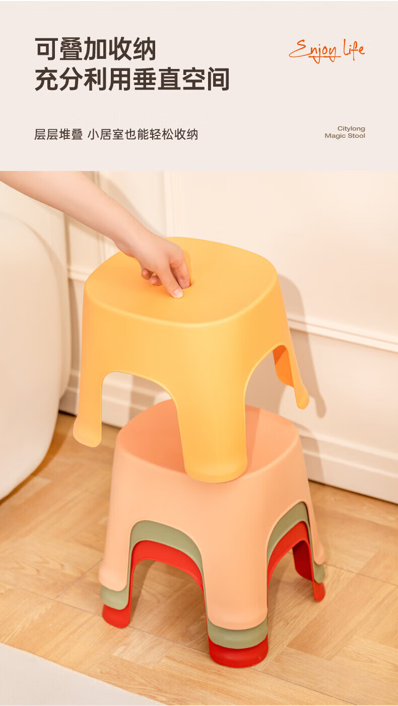 禧天龙凳子家用可叠放塑料椅子加厚结实餐椅中凳客厅梳妆台凳加厚防滑 中国红 1个装