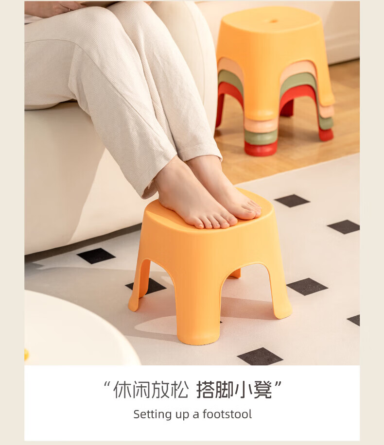 禧天龙皮革凳家用轻奢软包加厚客厅防滑塑料高凳叠放简约凳子可脚踏 荔枝纹软包高凳 陶瓷釉 1个装