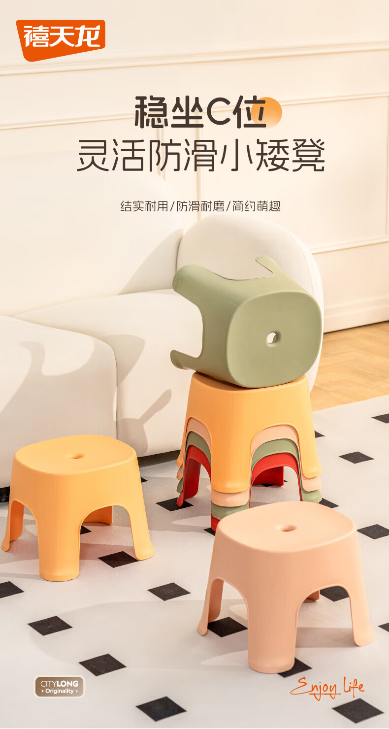 禧天龙小凳子家用矮凳卫生间小凳子简约小凳客厅凳子青云凳高凳简约 冰川灰【中凳29.1厘米】1个装