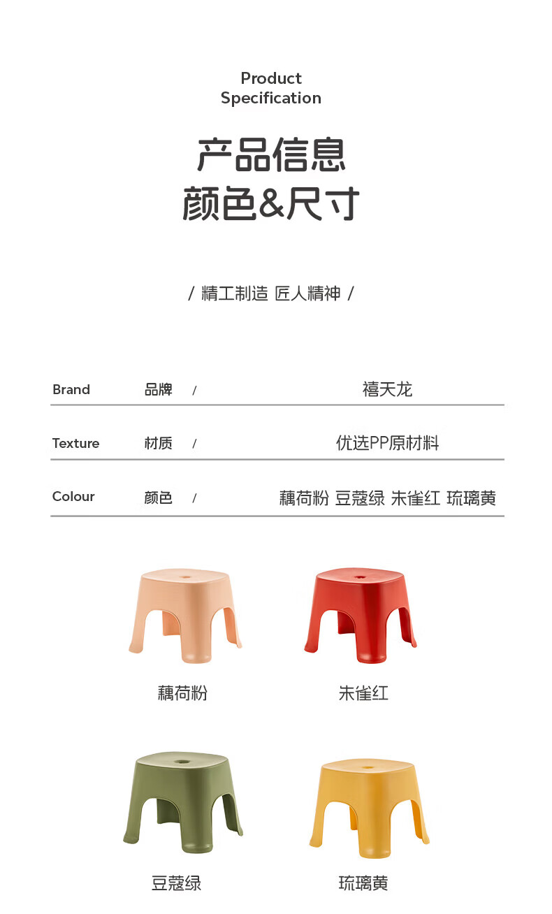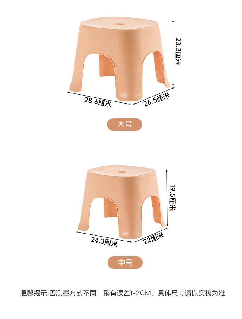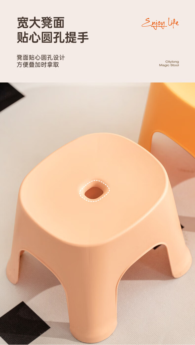 禧天龙加厚塑料凳子防滑家用客厅餐桌凳高凳熟胶凳浴室方凳 中号 粉色 1个装