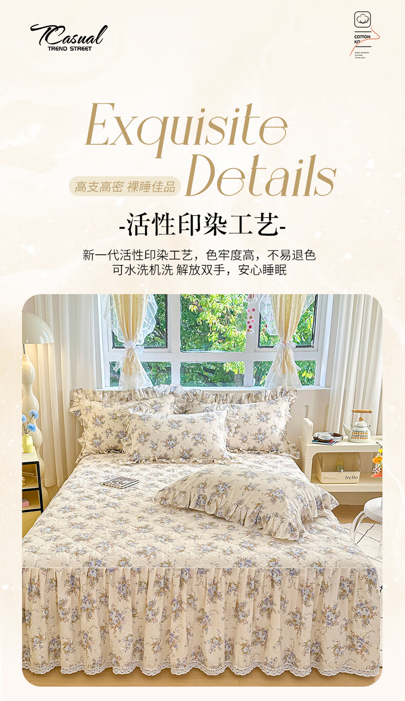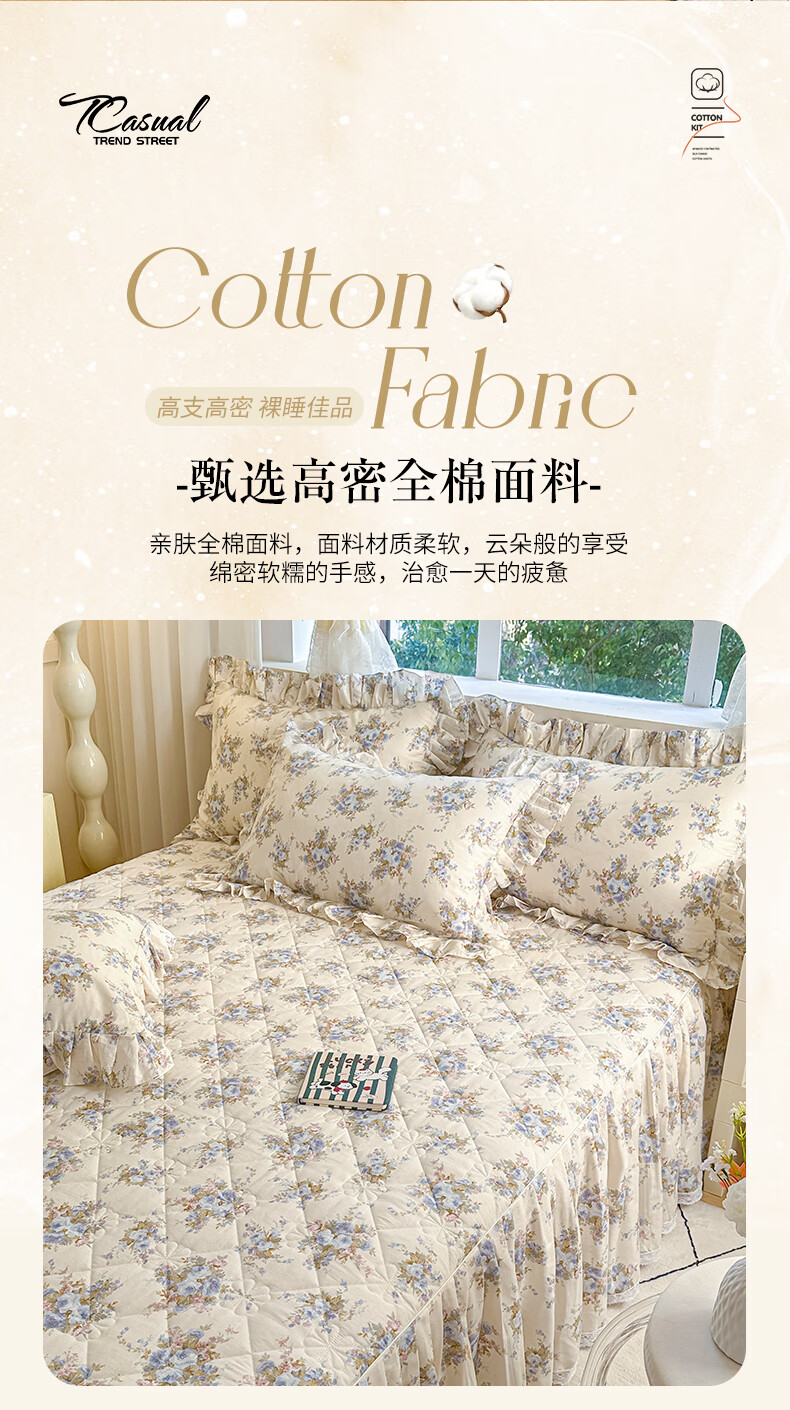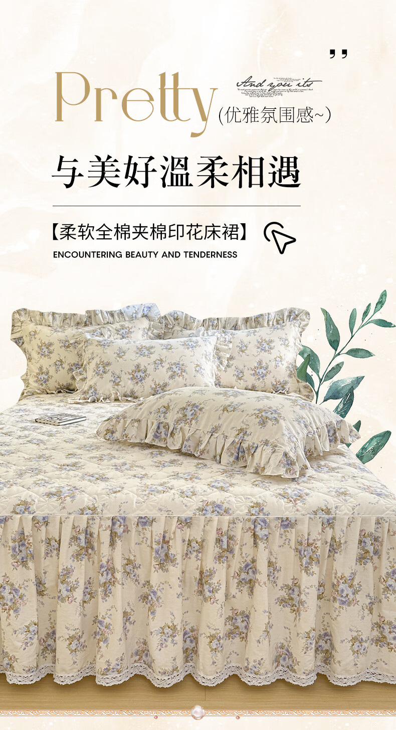 元族2025新款印花全棉夹棉床裙纯棉 柏林花涧 +45cm单床裙 120cm*200cm