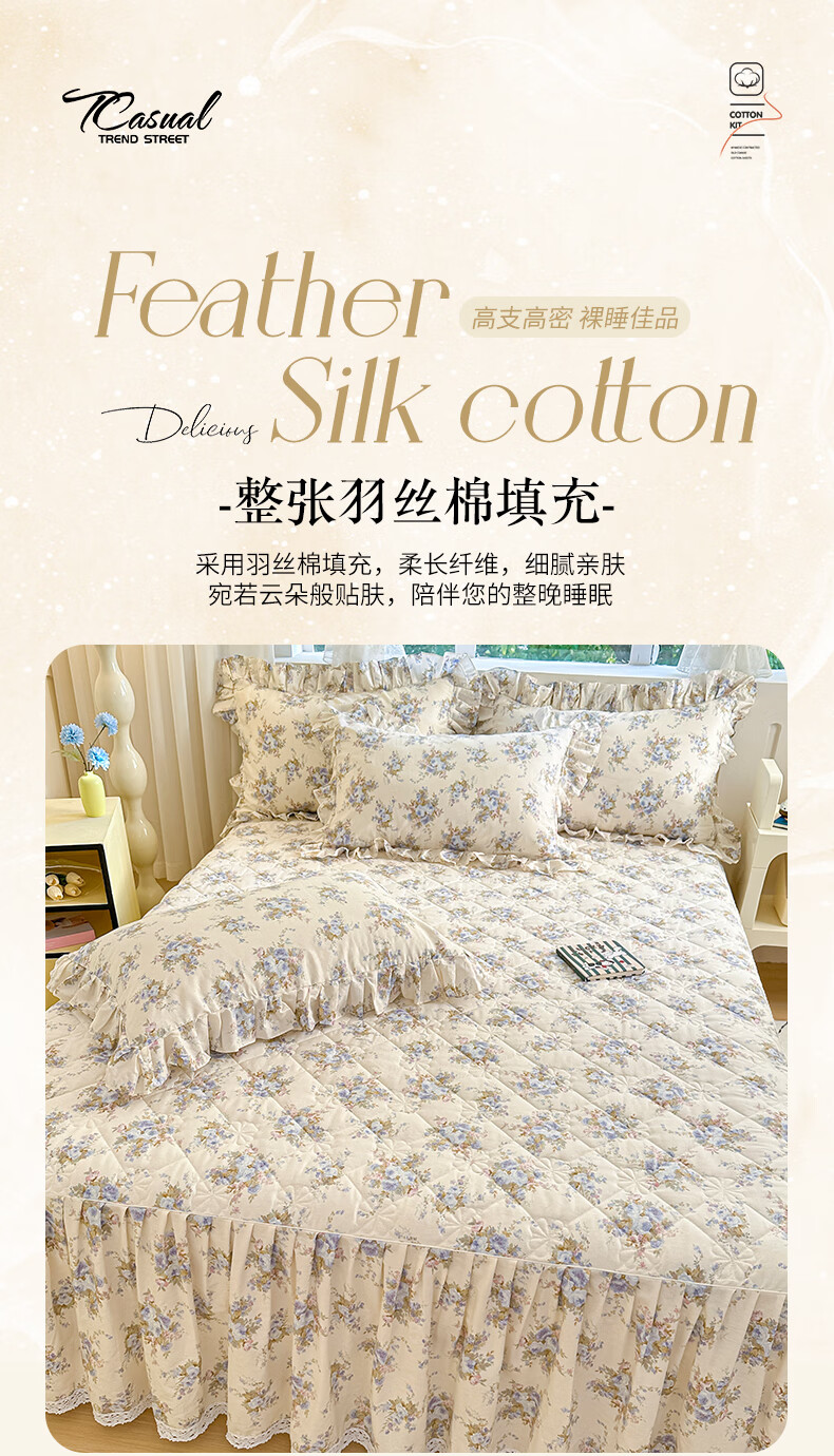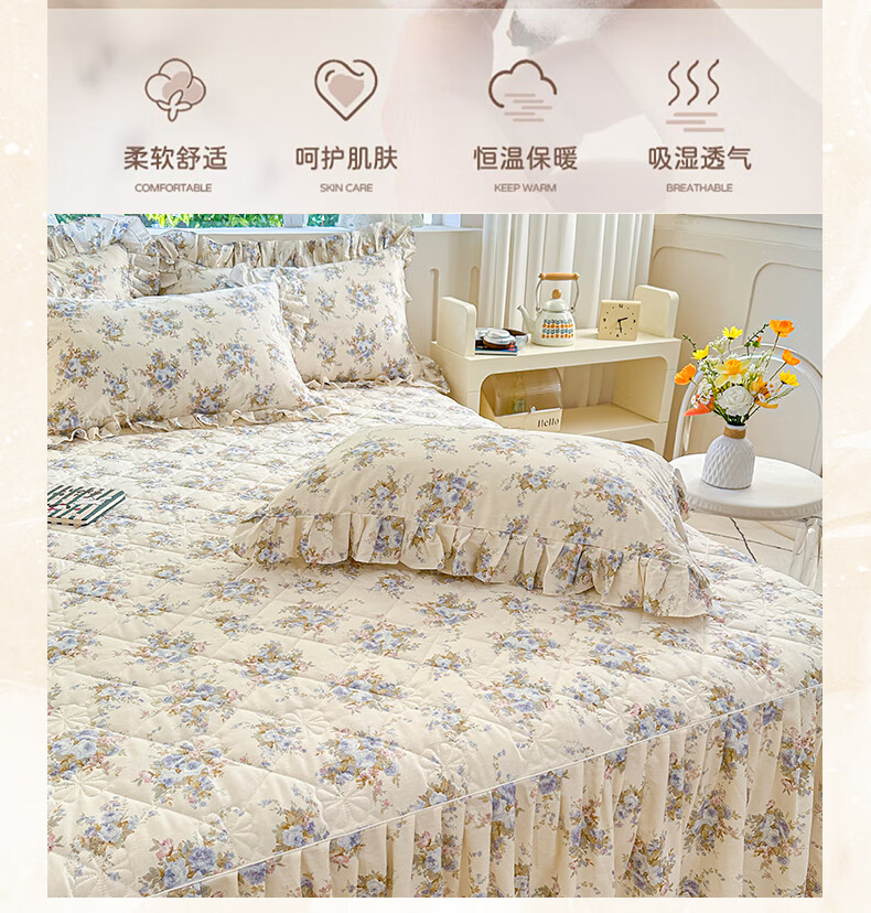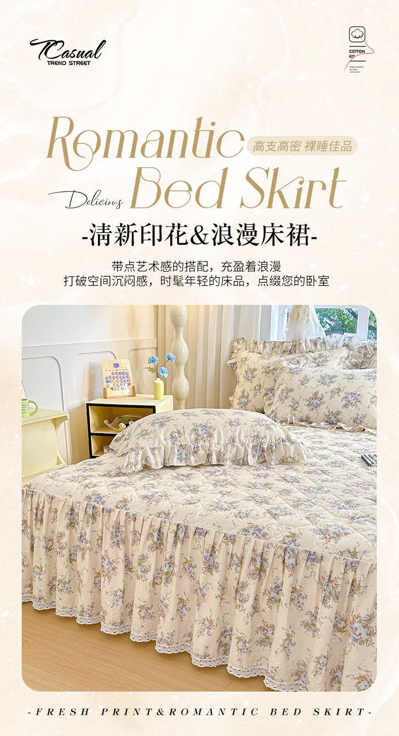元族2025新款印花全棉夹棉床裙纯棉 柏林花涧 +45cm单床裙 120cm*200cm