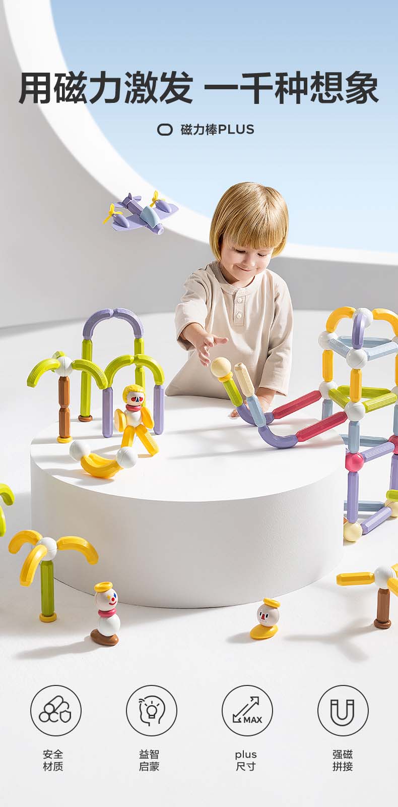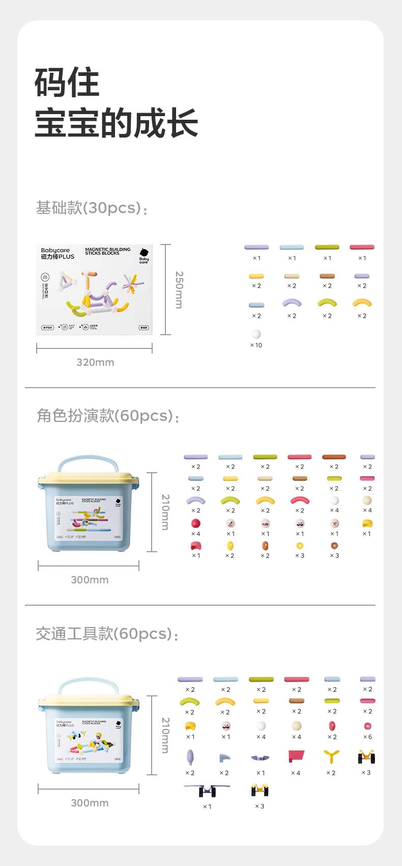 babycare百变磁力棒儿童益智玩具积木拼插大颗粒磁力片儿童生日礼物 磁力棒PLUS-基础款(30pcs)