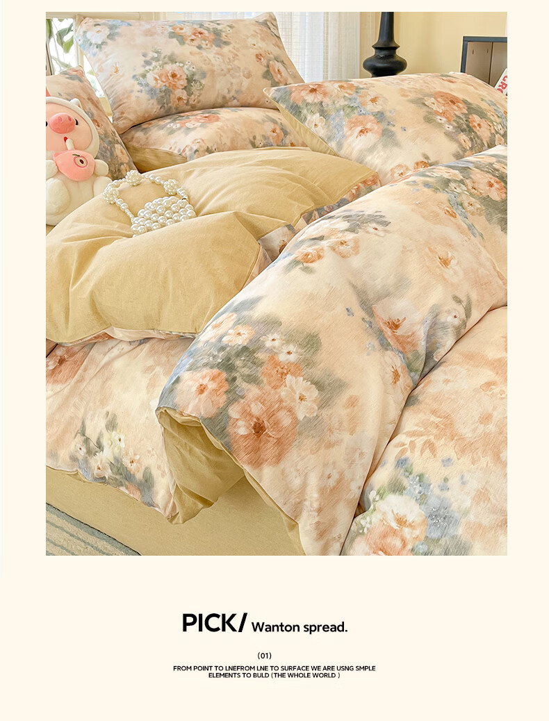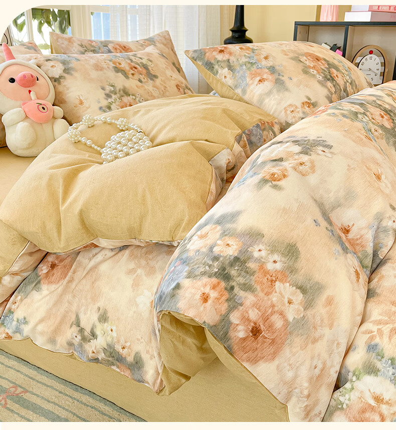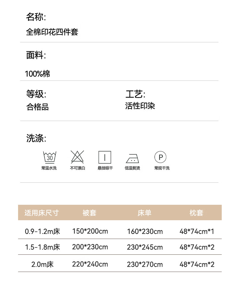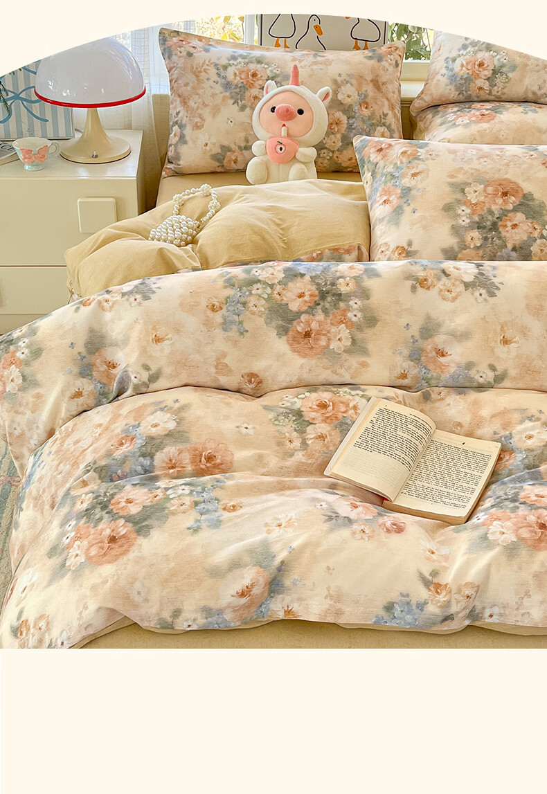 无印良品小清新全棉被套四件套纯棉床单被罩裸睡床笠款宿舍三件套床上用品 锦绣园 【100%全棉 柔软透气 裸睡无忧】 1.2m 床单款 三件套-被套150x200cm