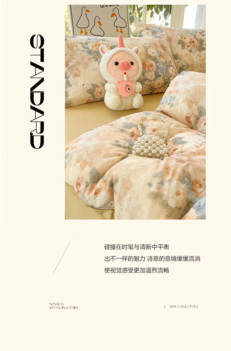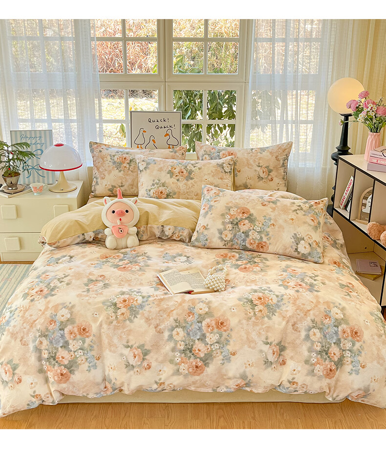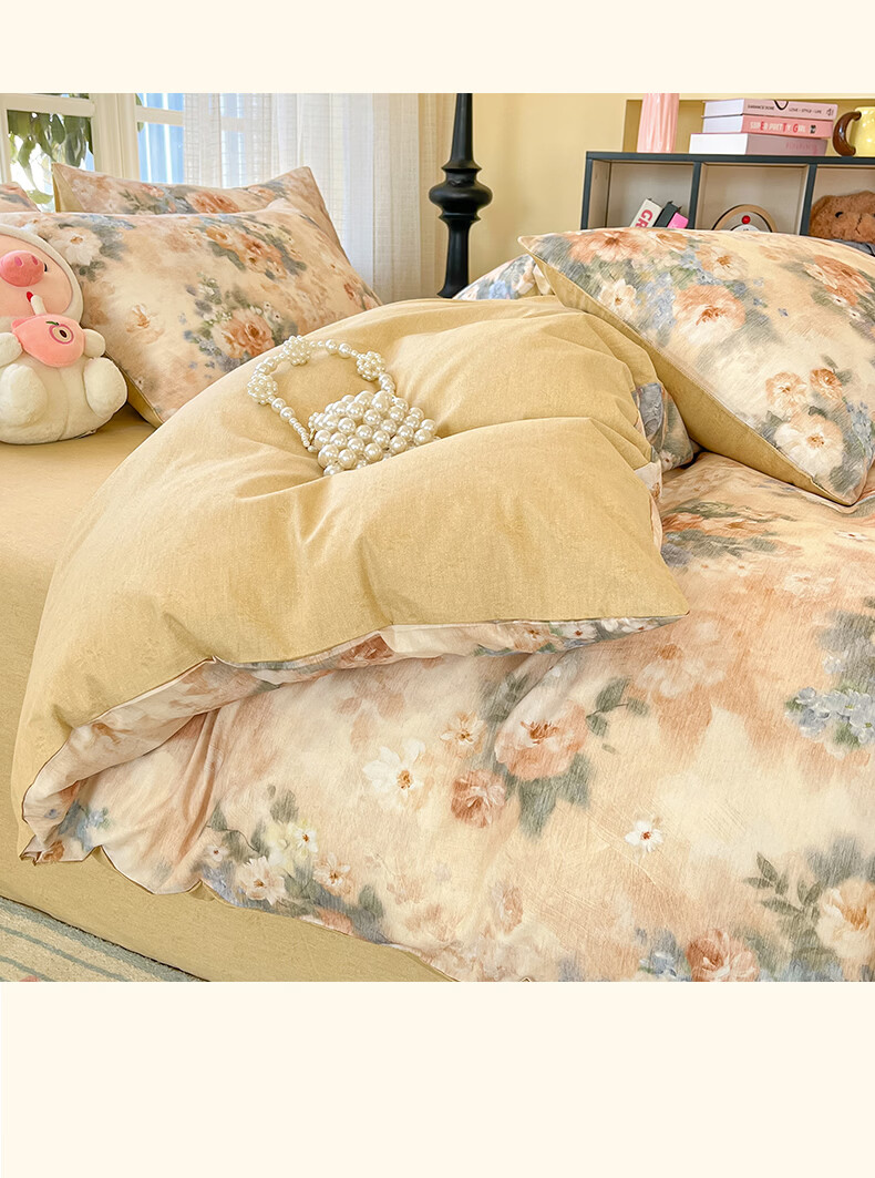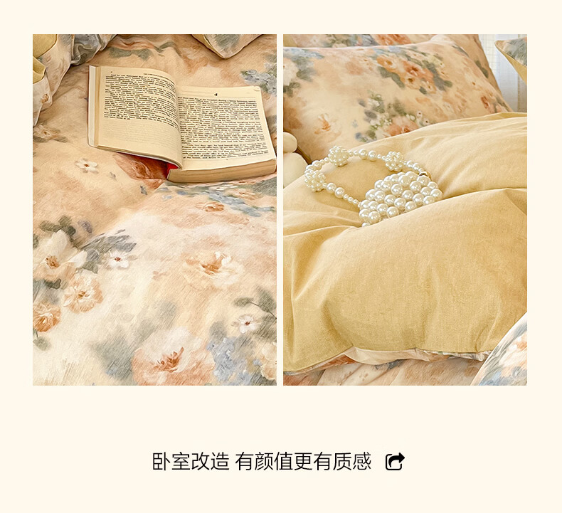 无印良品小清新全棉被套四件套纯棉床单被罩裸睡床笠款宿舍三件套床上用品 锦绣园 【100%全棉 柔软透气 裸睡无忧】 1.2m 床单款 三件套-被套150x200cm