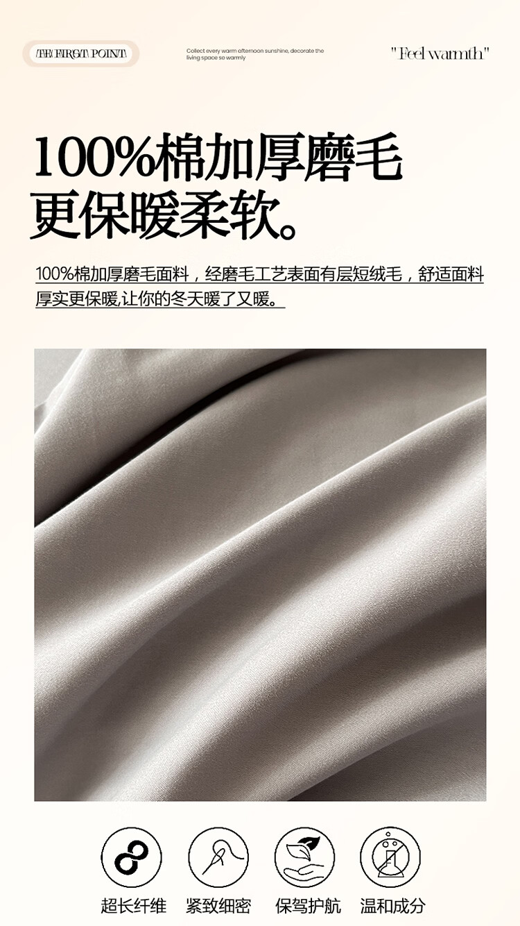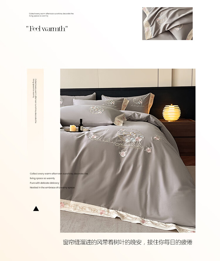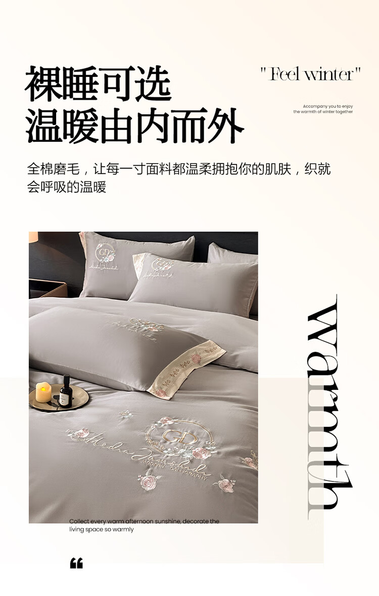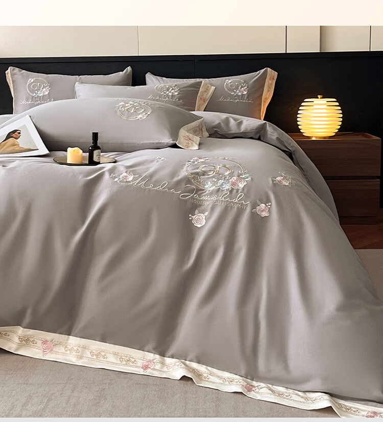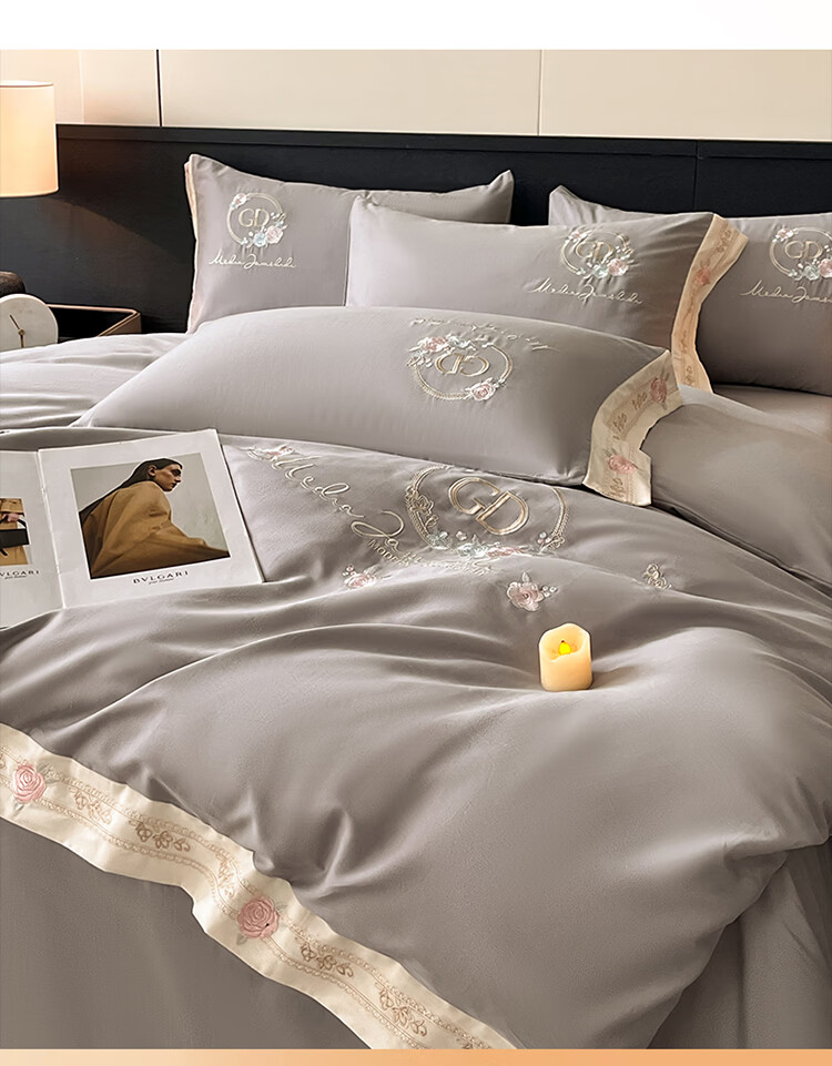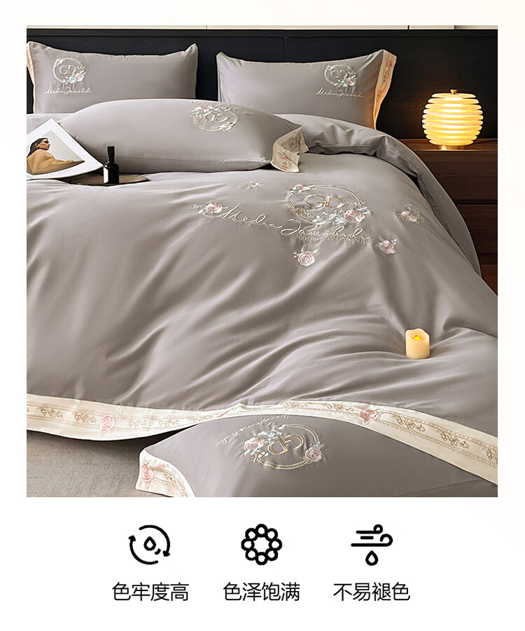 ROLAND LIVE全棉磨毛加厚A类四件套刺绣秋冬季被套床单纯棉床上用品1.8m床 PS 全棉磨毛四件套-斯嘉丽都市灰 标准 床单款 【被套200*230cm】