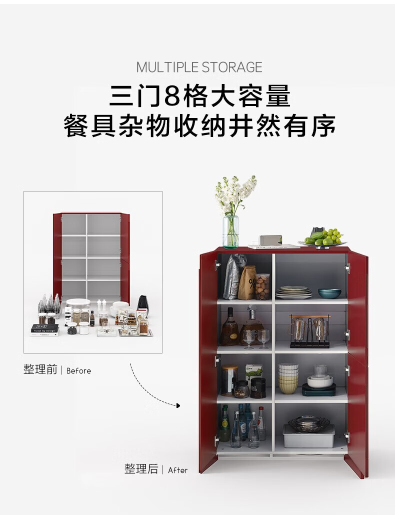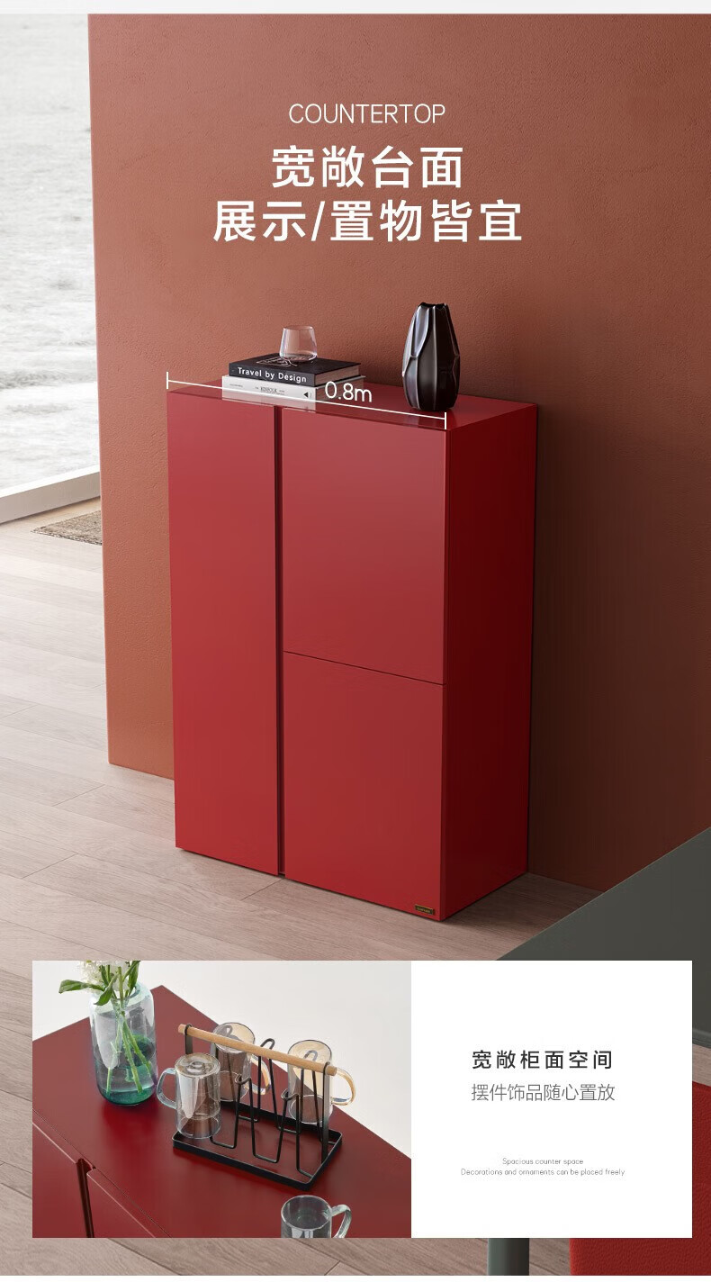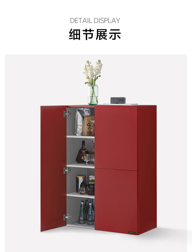 全友家居原木风实木餐边柜家用玻璃展示柜收纳储物小柜子沙发边柜KS 【樱桃木色|橡胶木】双门款餐边柜