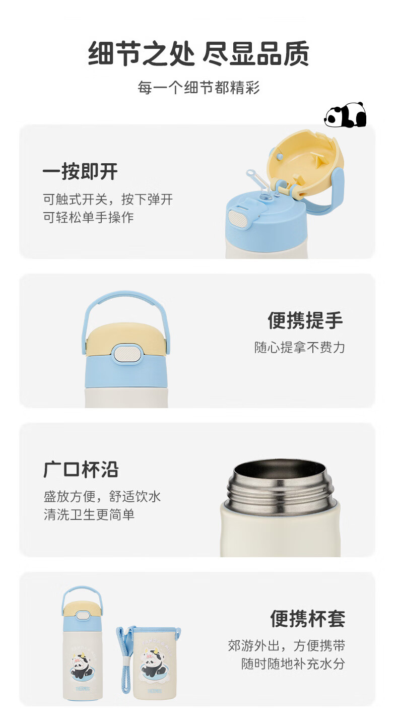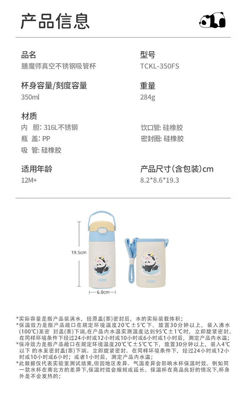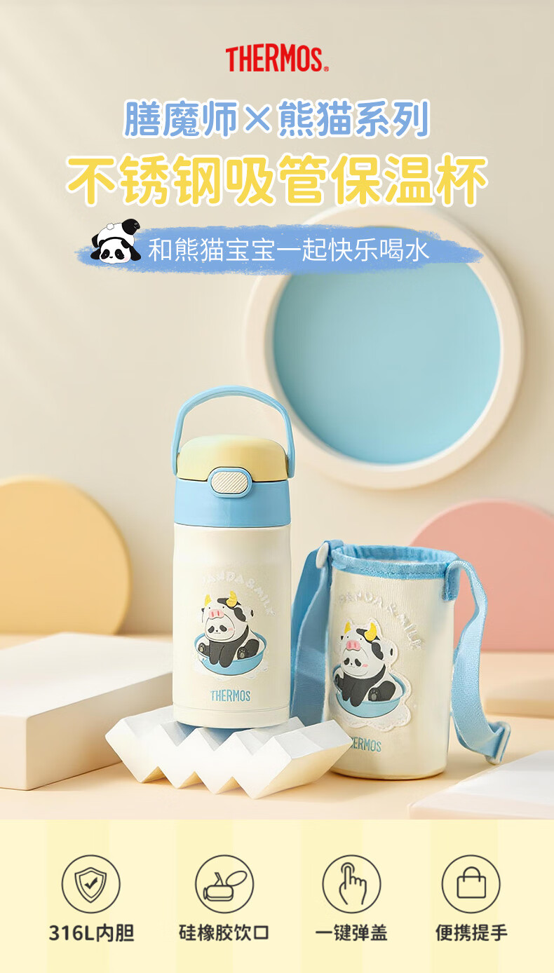膳魔师(THERMOS)儿童保温杯316L不锈钢畅吸杯小学生水杯宝宝喝水杯子TCKL