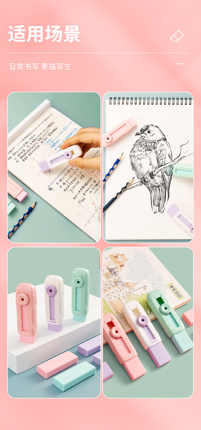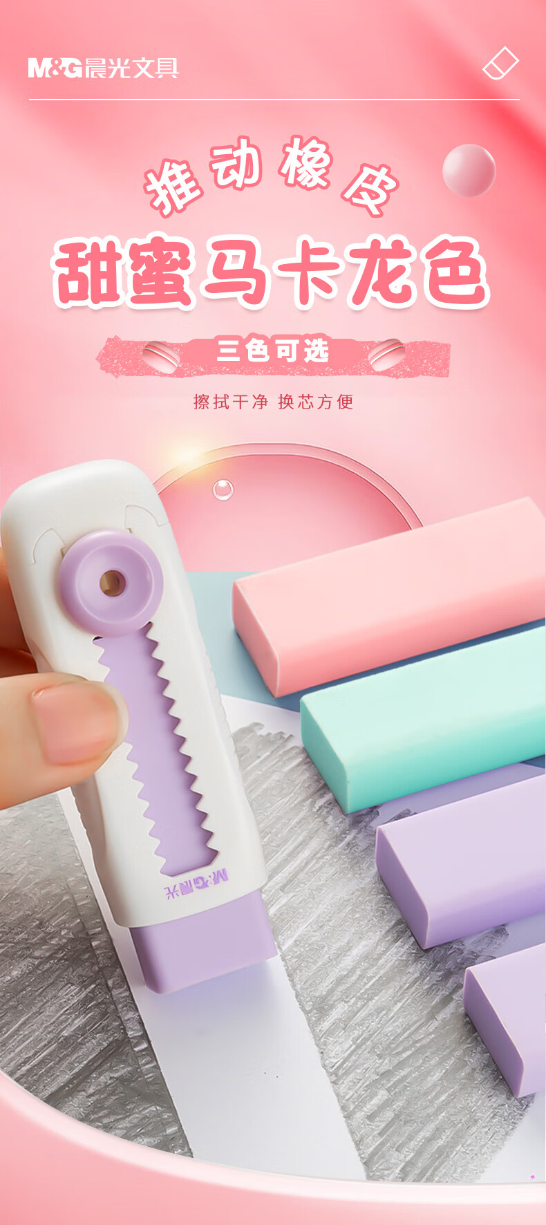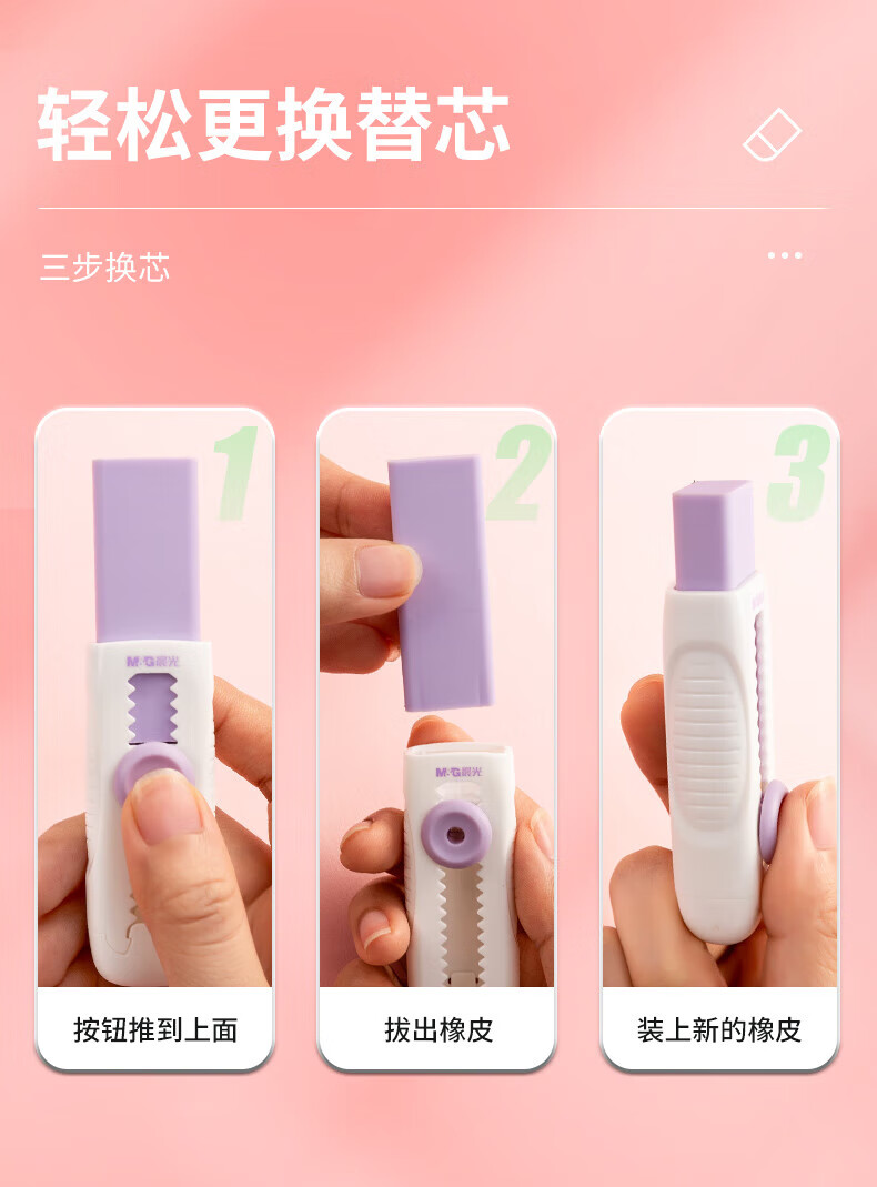 晨光(M&G)文具冰淇淋推拉橡皮擦 不易留痕少屑自锁可换芯铅笔橡皮 推动橡皮1块装奶芋冰开学文具