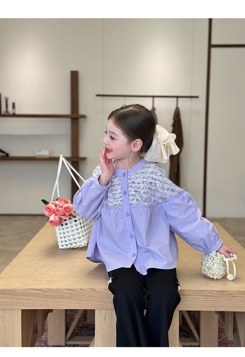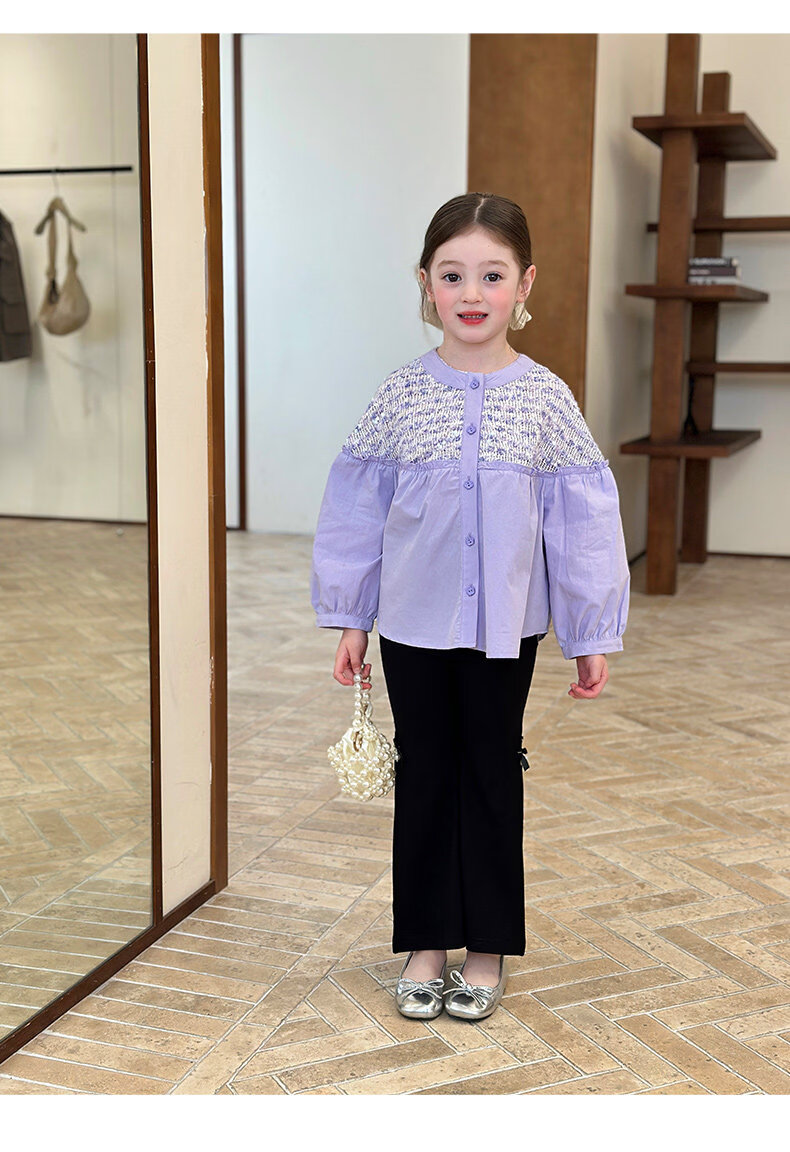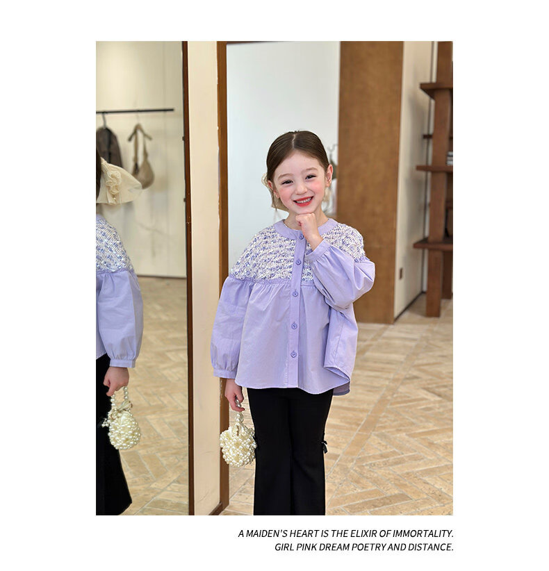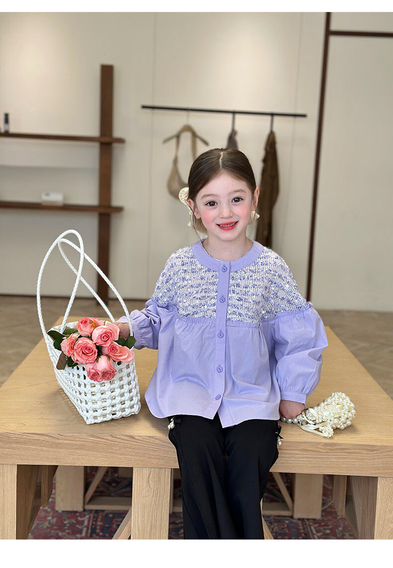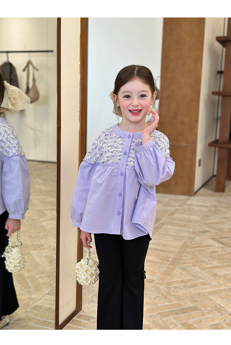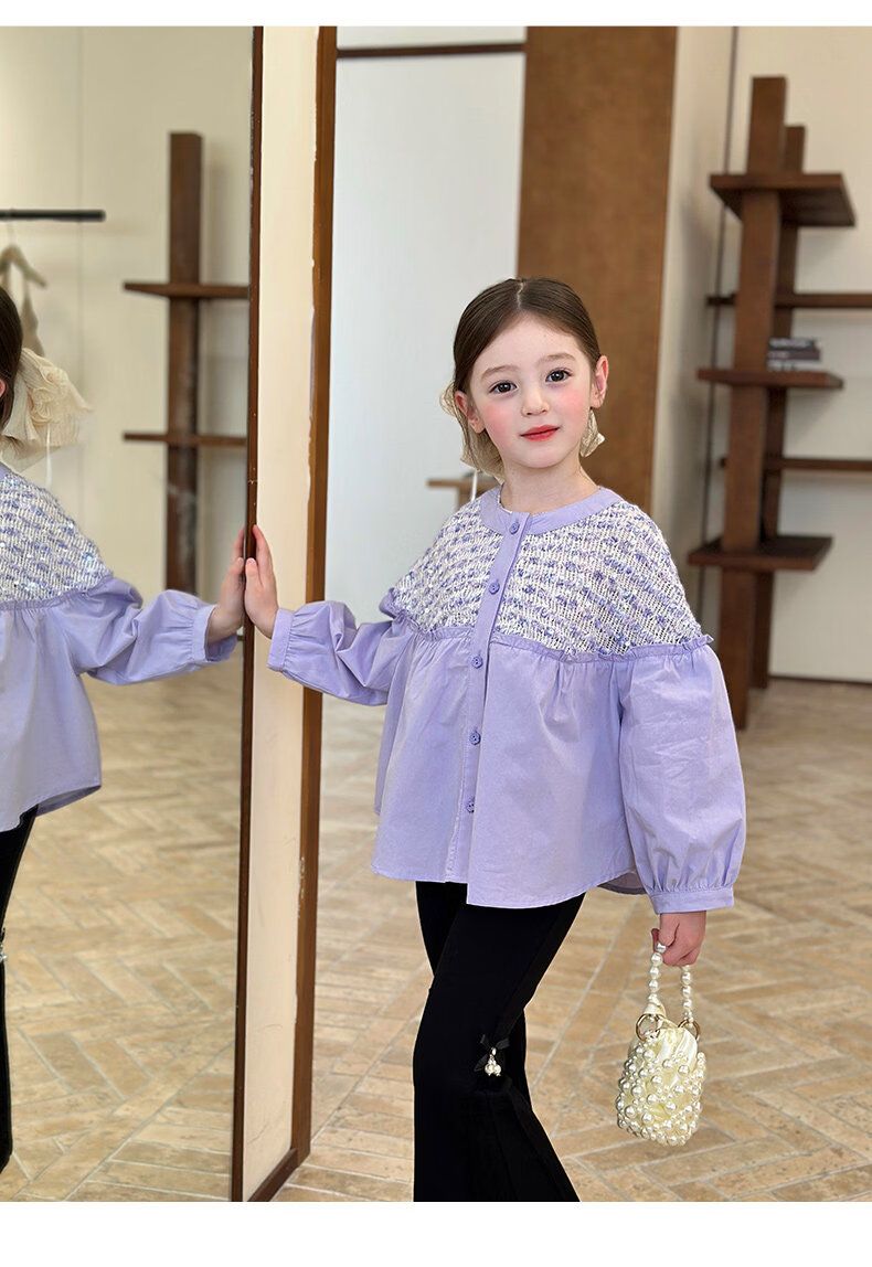 栀了成长记童装女童小香风圆领衬衫2026春季儿童新款甜美撞色上衣 紫色 衬衫 110 cm