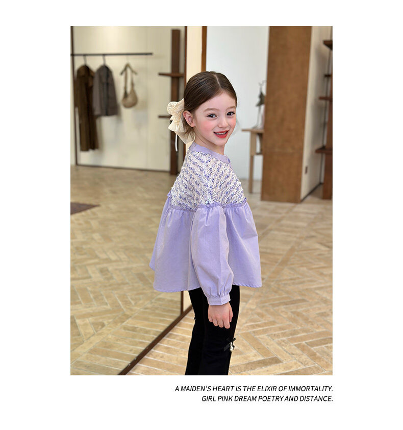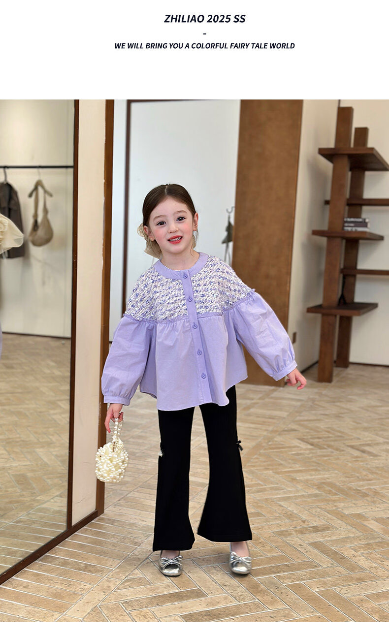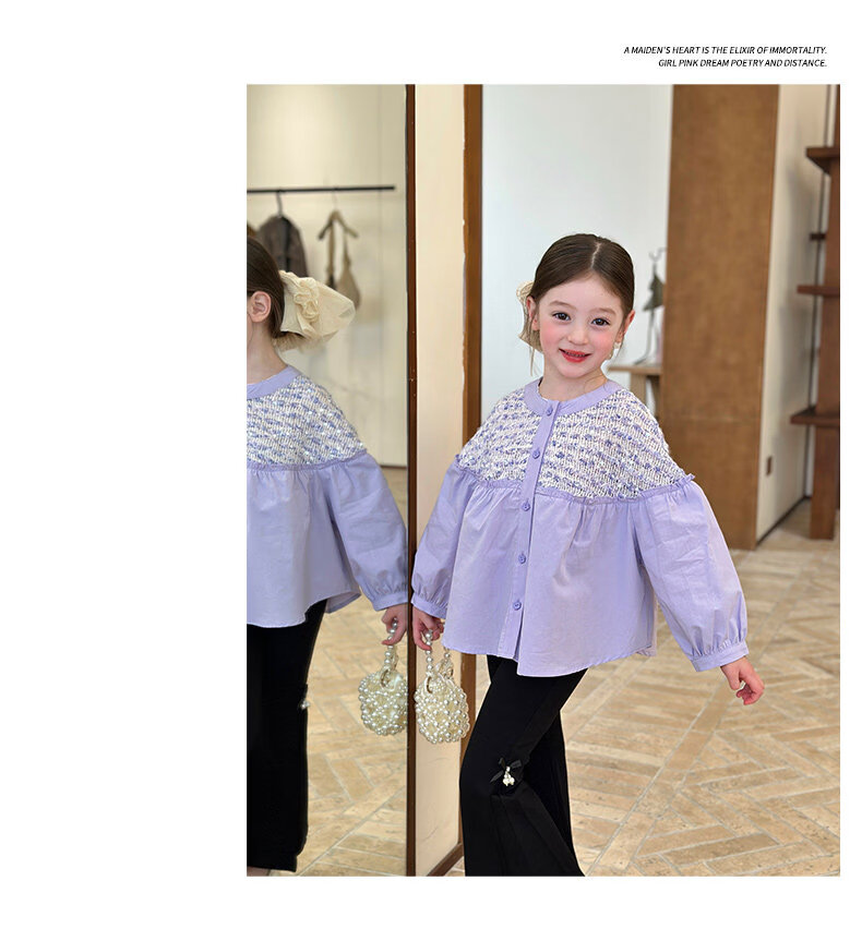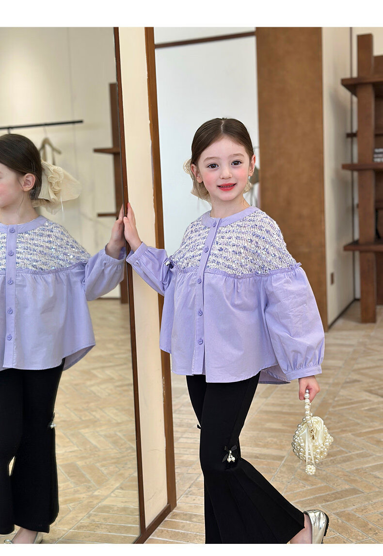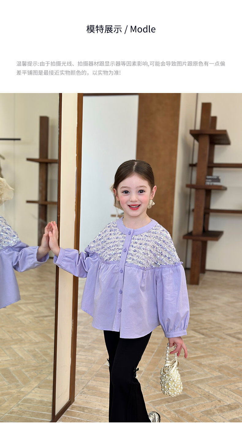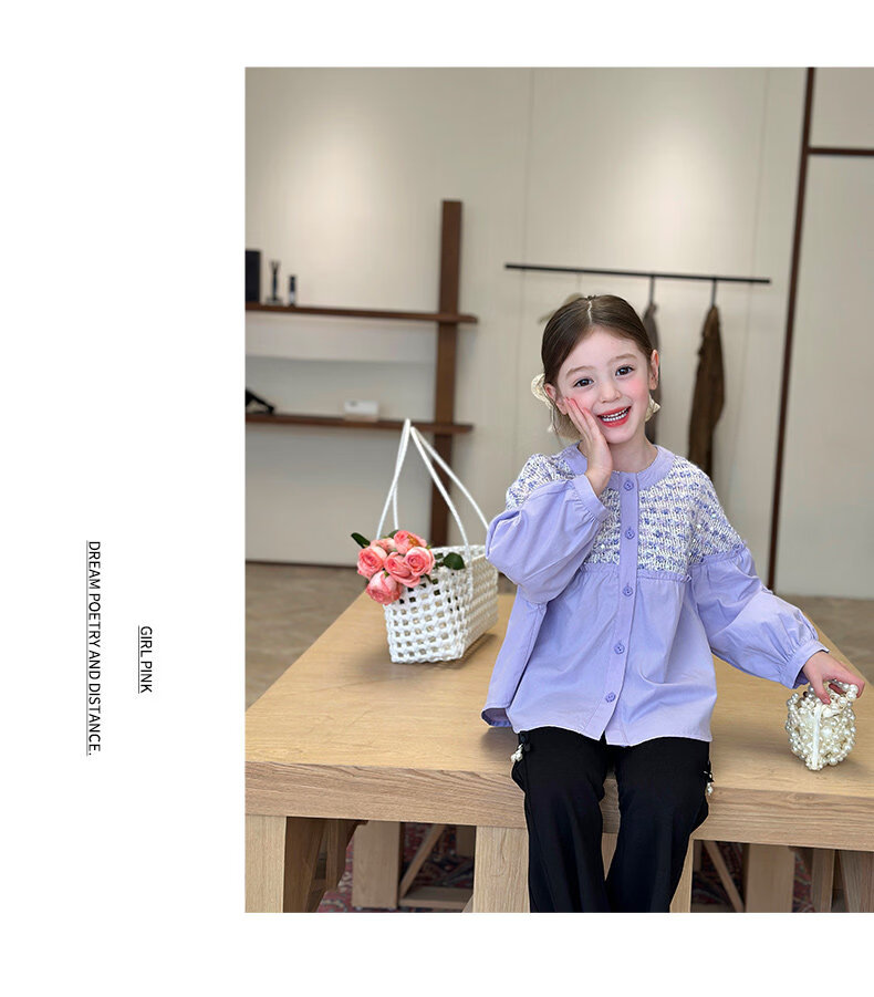 栀了成长记童装女童小香风圆领衬衫2026春季儿童新款甜美撞色上衣 紫色 衬衫 110 cm