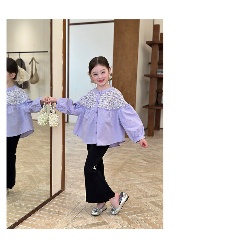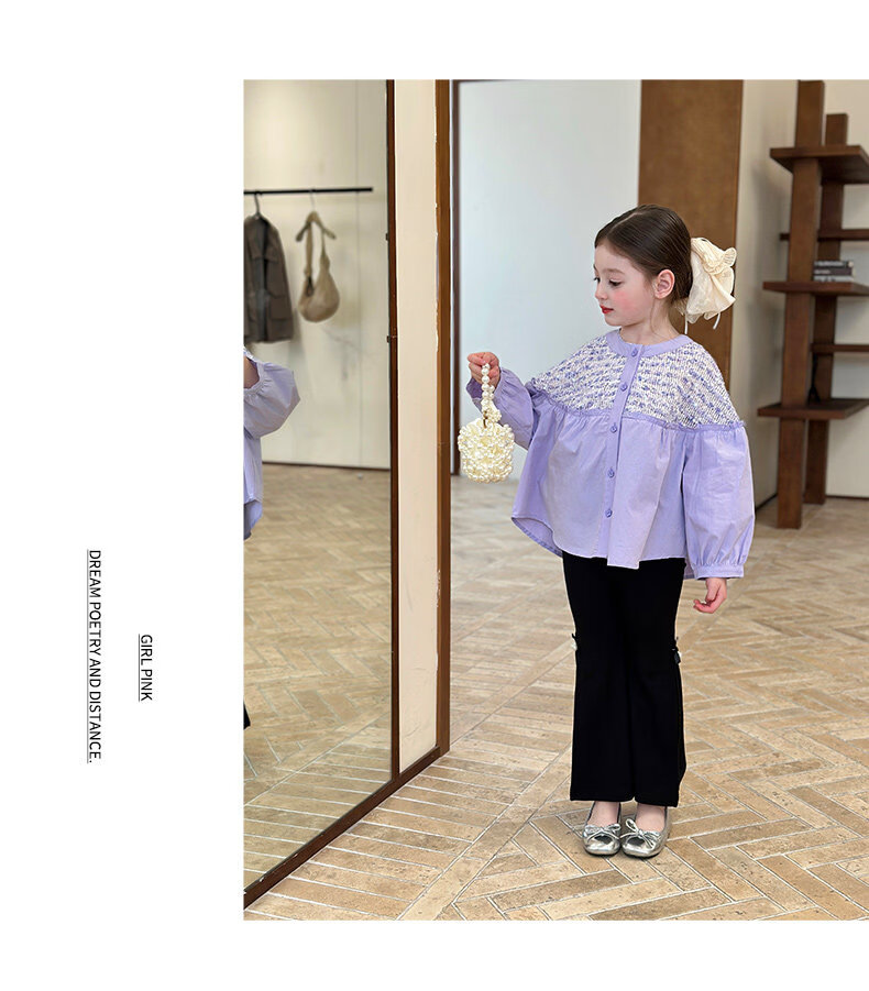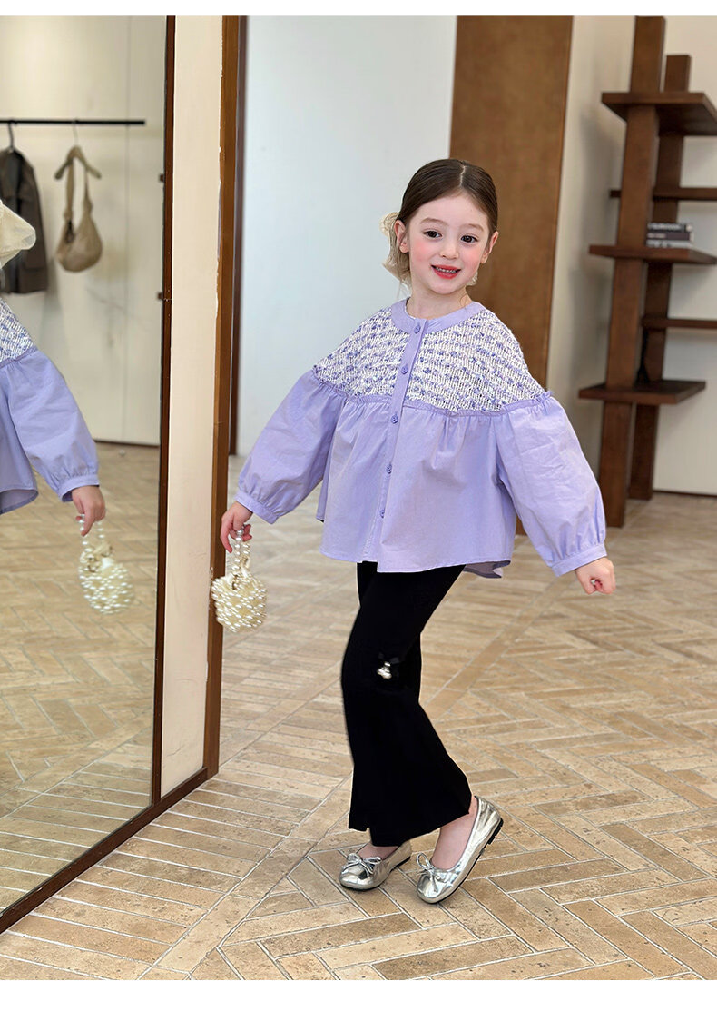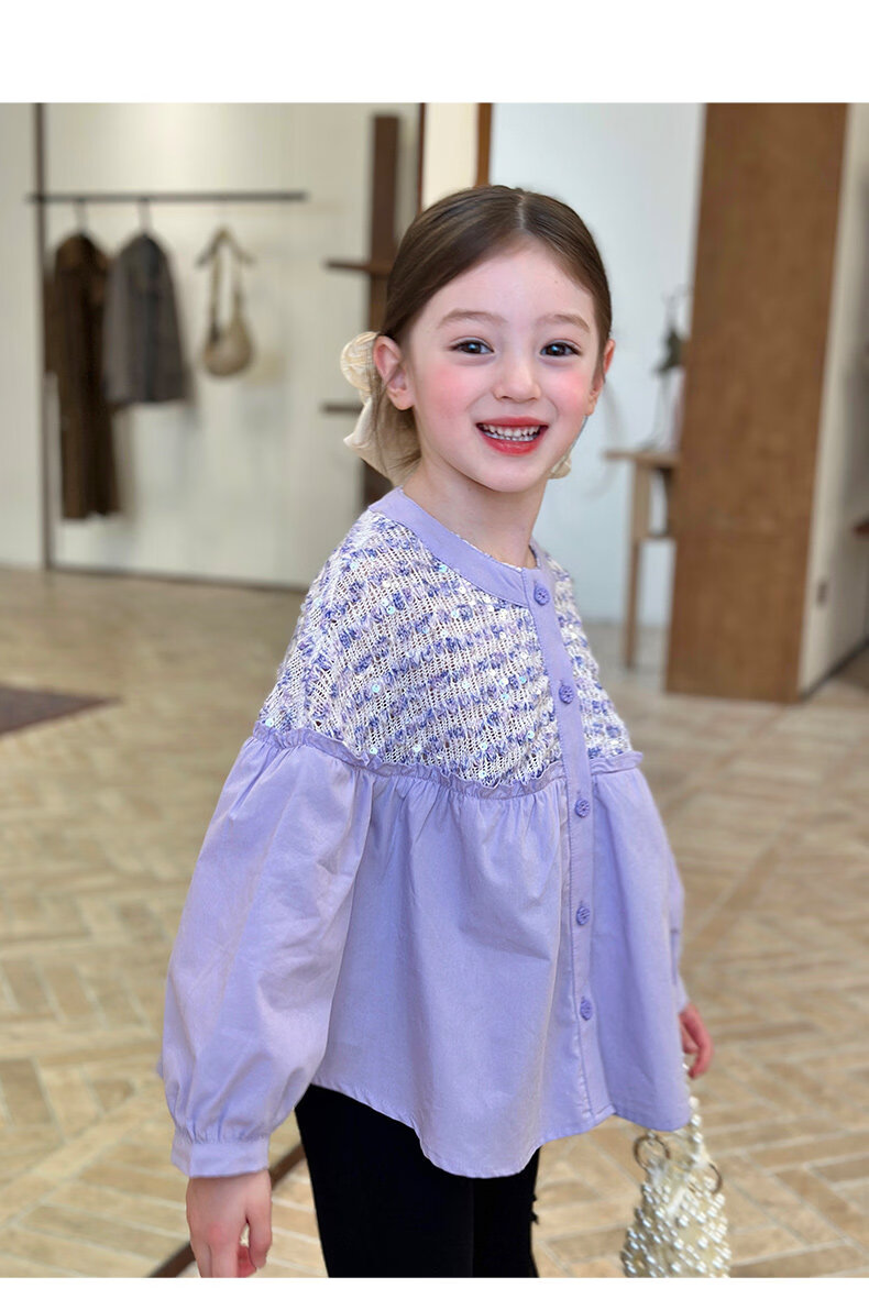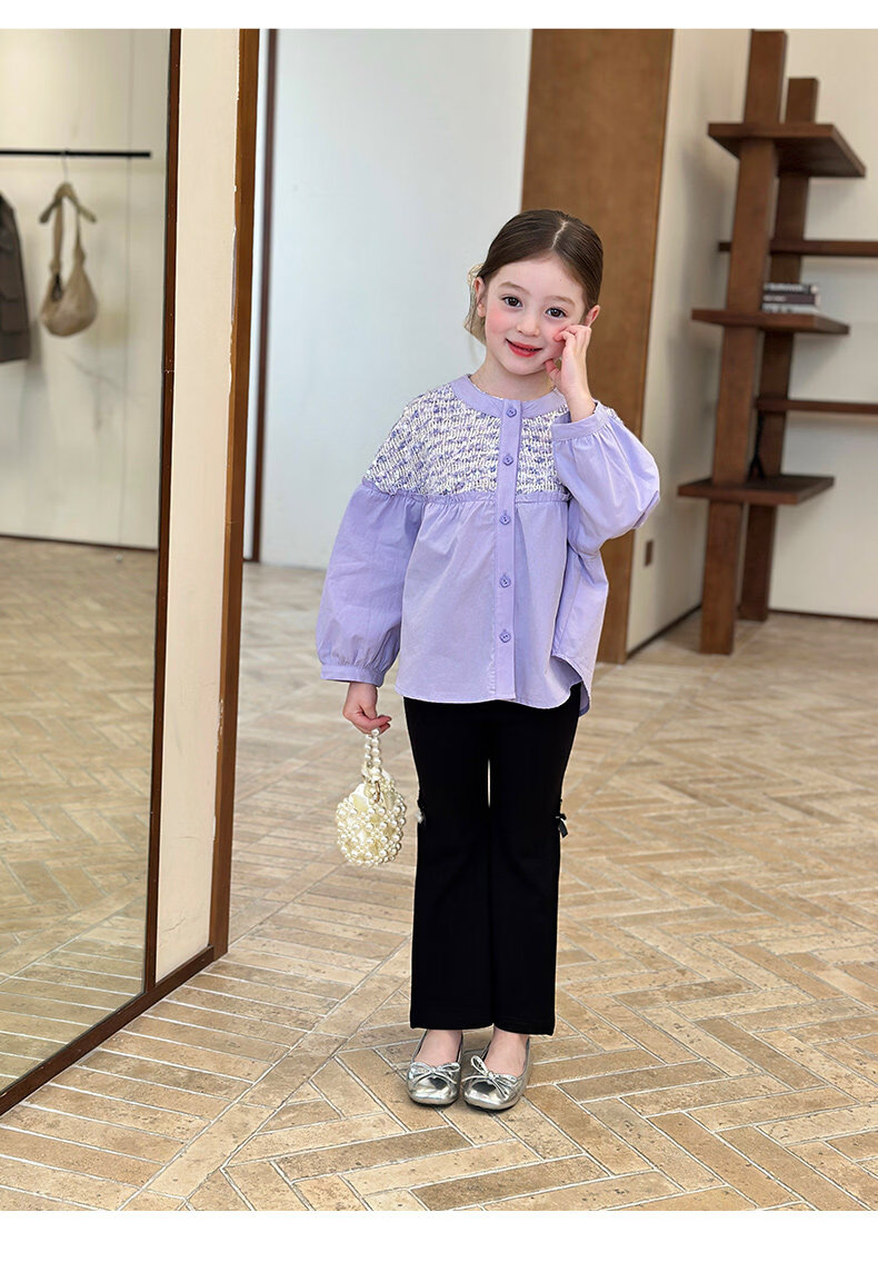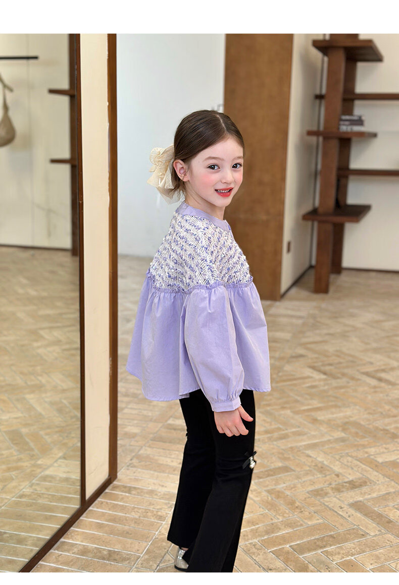 栀了成长记童装女童小香风圆领衬衫2026春季儿童新款甜美撞色上衣 紫色 衬衫 110 cm