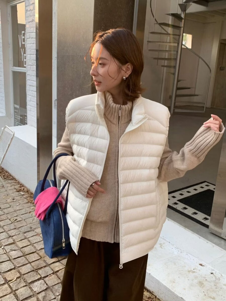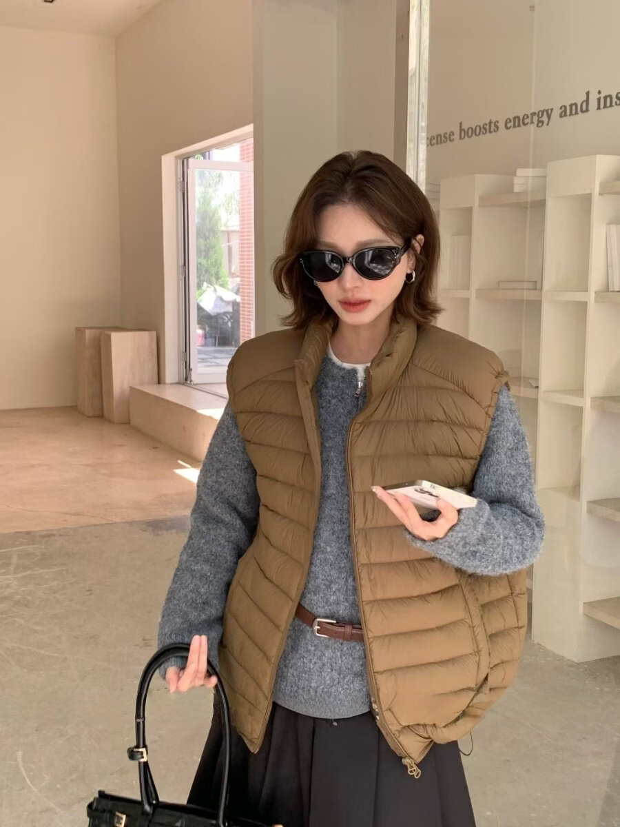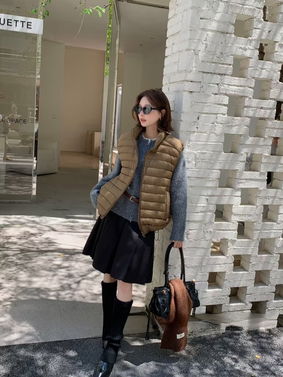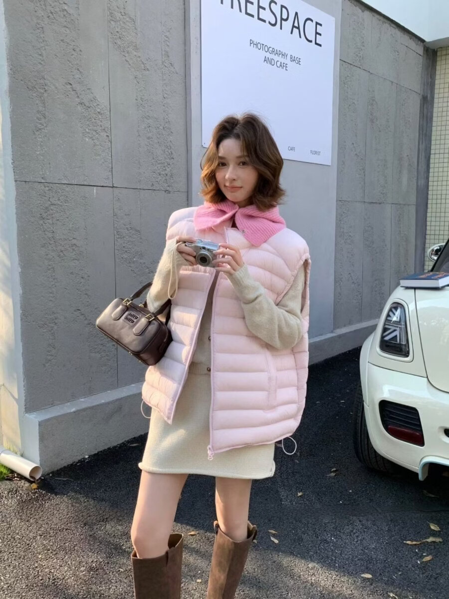 MODX粉色排骨羽绒马甲女2026秋冬新款韩系马夹背心时尚洋气坎肩 樱花粉 S