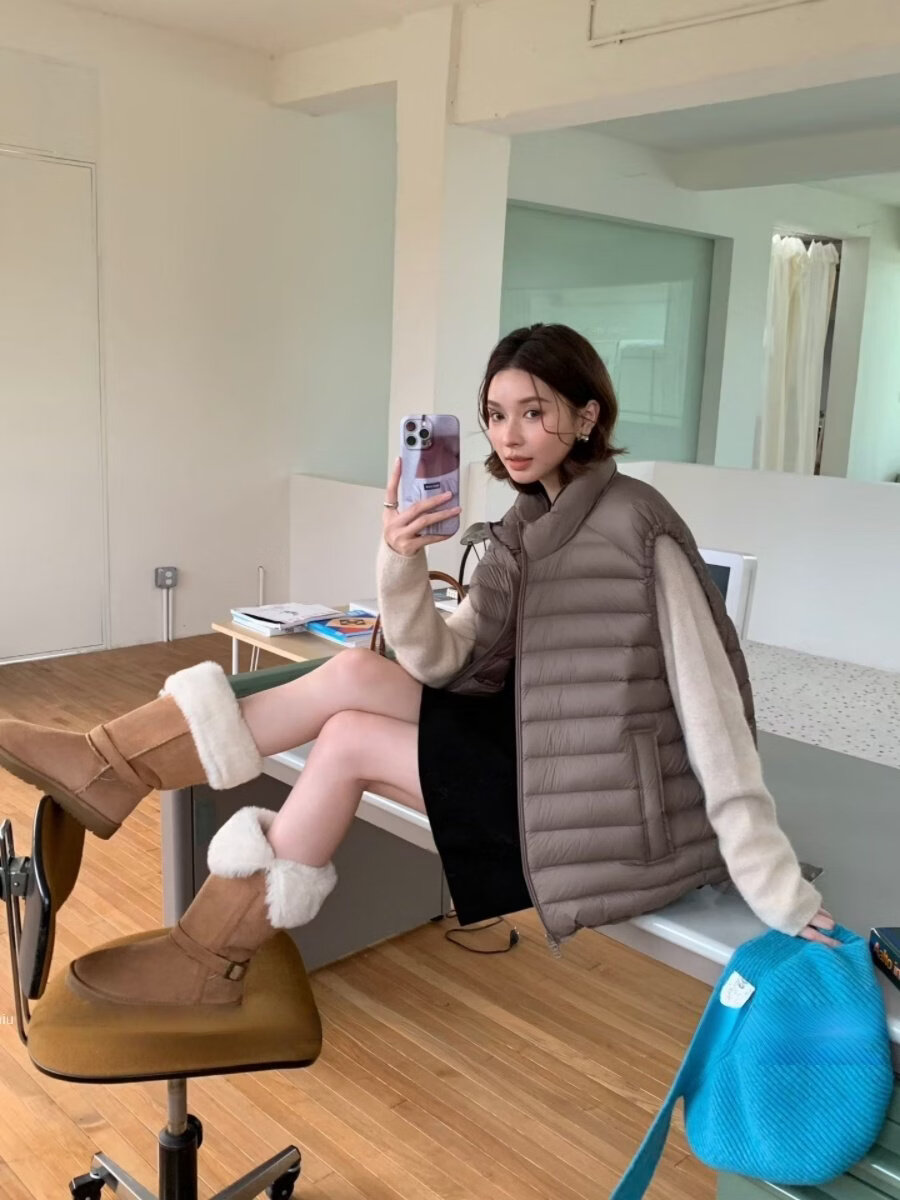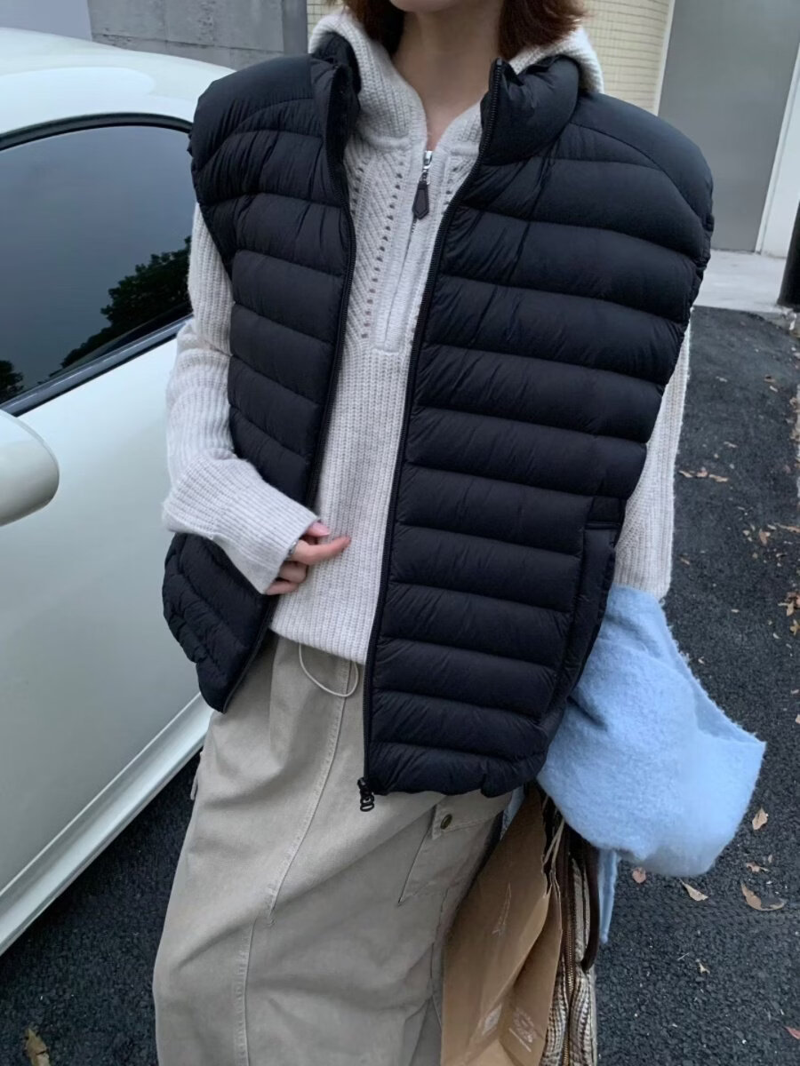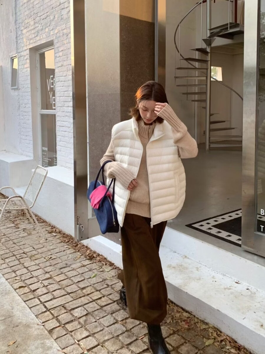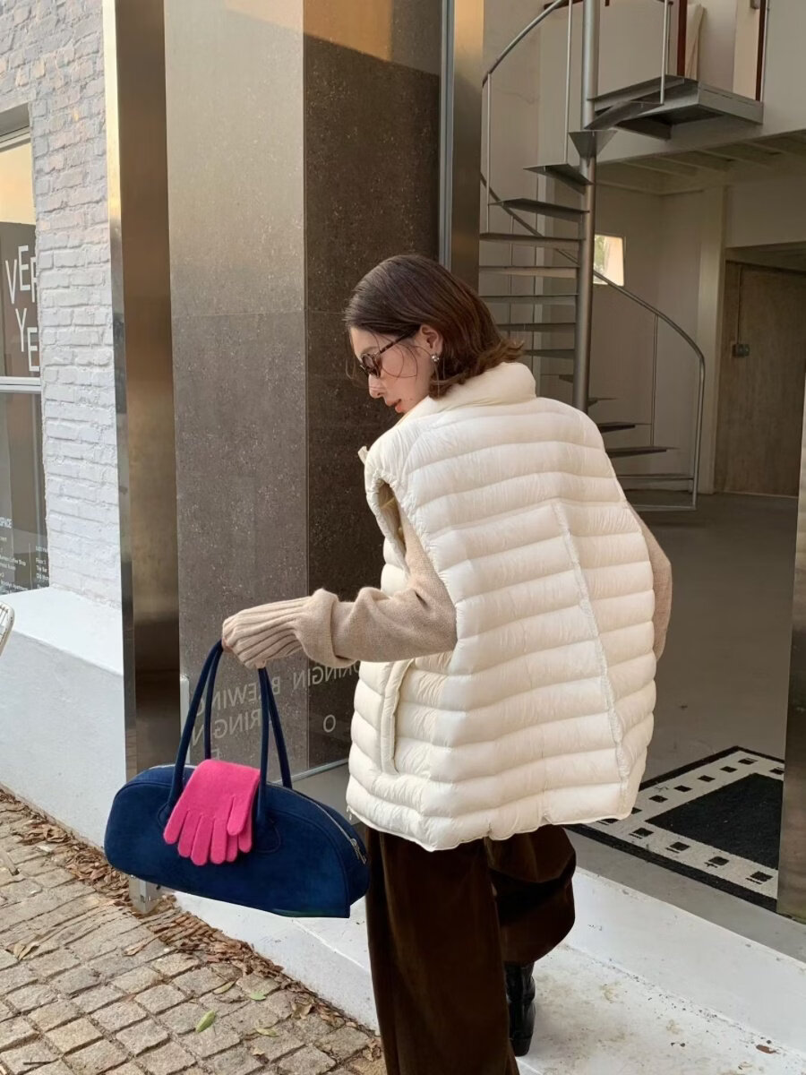 MODX粉色排骨羽绒马甲女2026秋冬新款韩系马夹背心时尚洋气坎肩 樱花粉 S