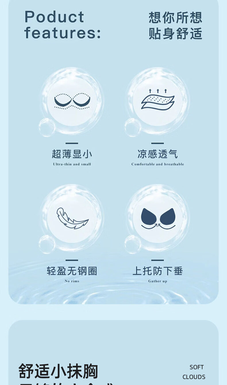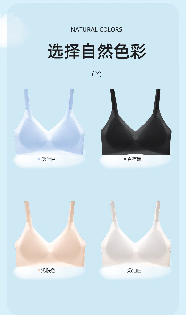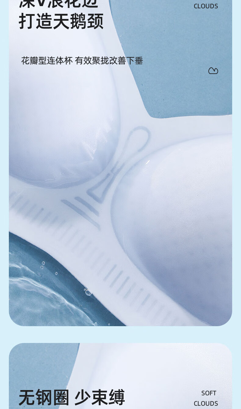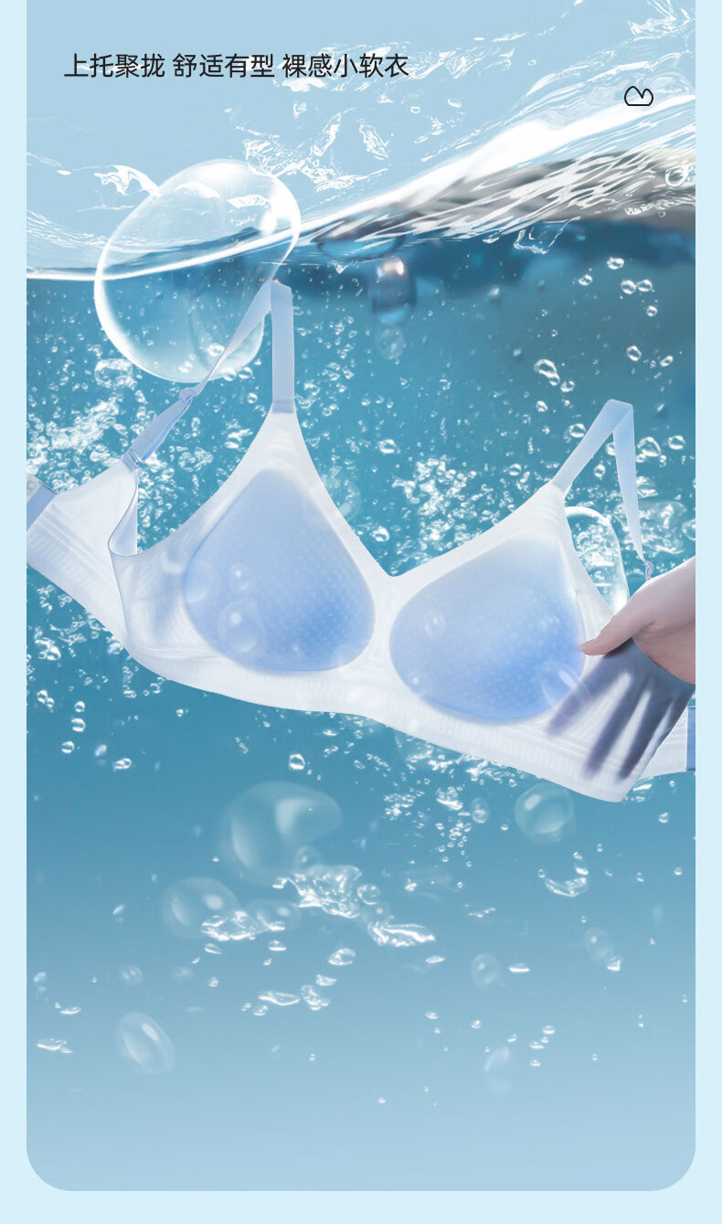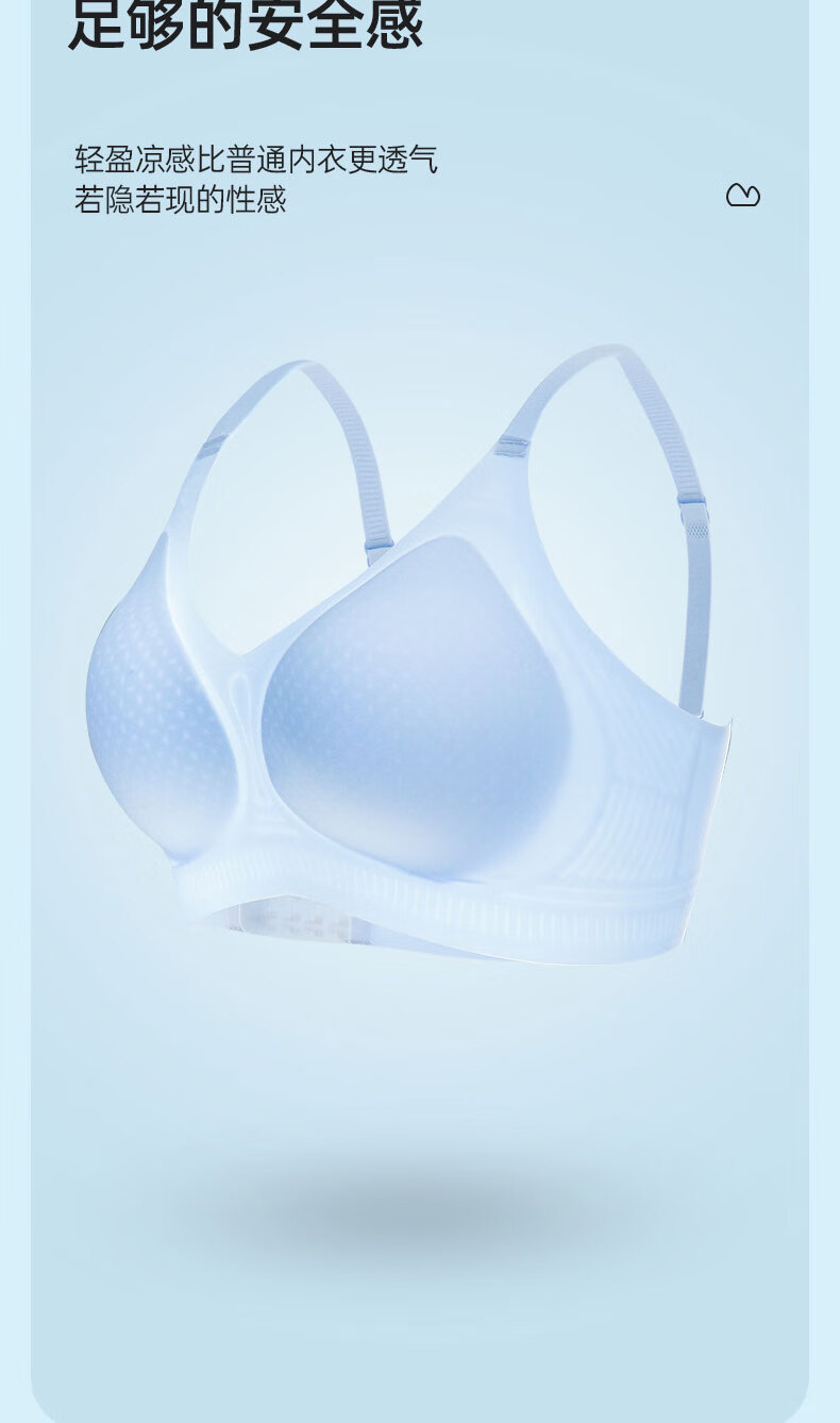 润微买一送一内衣女小胸聚拢夏季凉感超薄款冰丝透气防下垂无痕文胸罩 浅蓝 M (适合75ABC)
