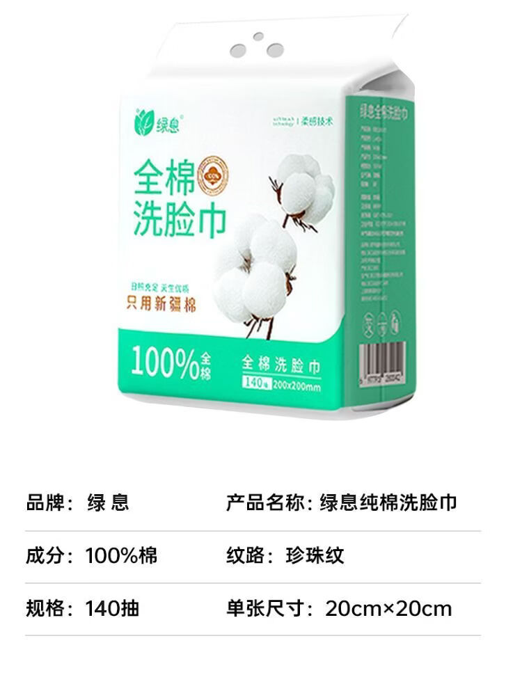 玫瑰熊 ROSE BEAR绿息一次性洗脸巾悬挂式加厚加大纯棉柔巾擦脸卸妆巾清洁洗面柔巾 4提【20*20cm加厚珍珠纹 】共560抽