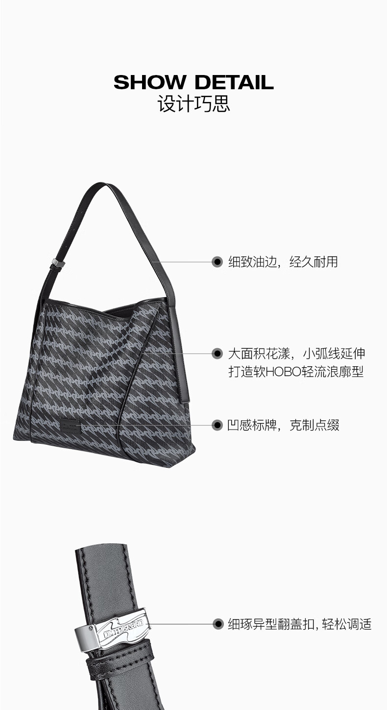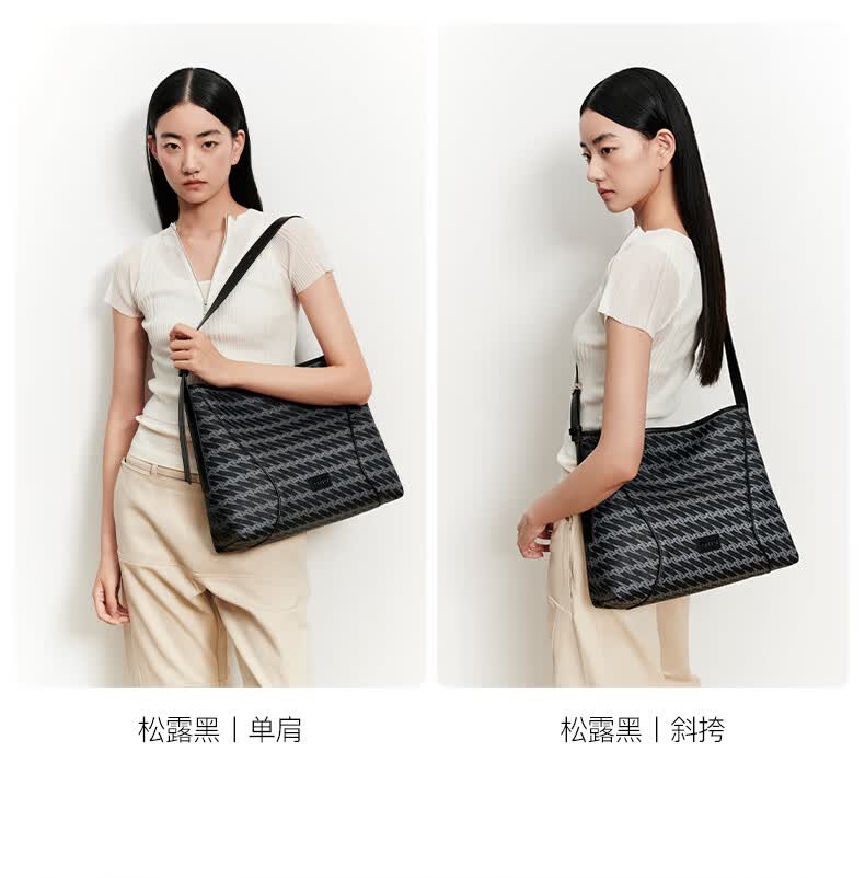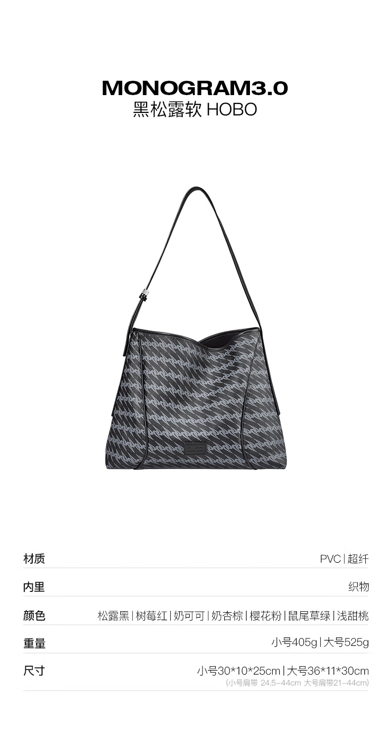 OMTO黑松露软hobo包新款通勤女包斜挎包包大容量单肩包女生日礼物女友 松露黑【大号】