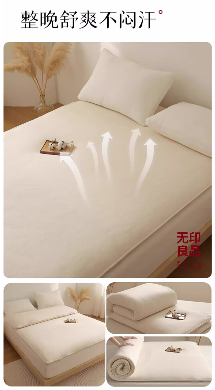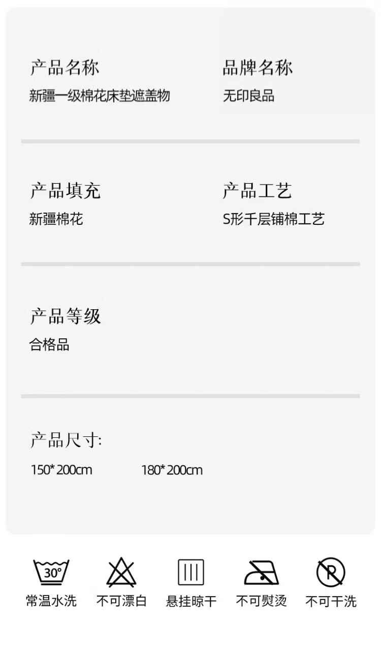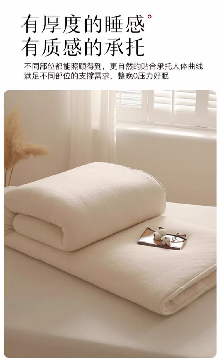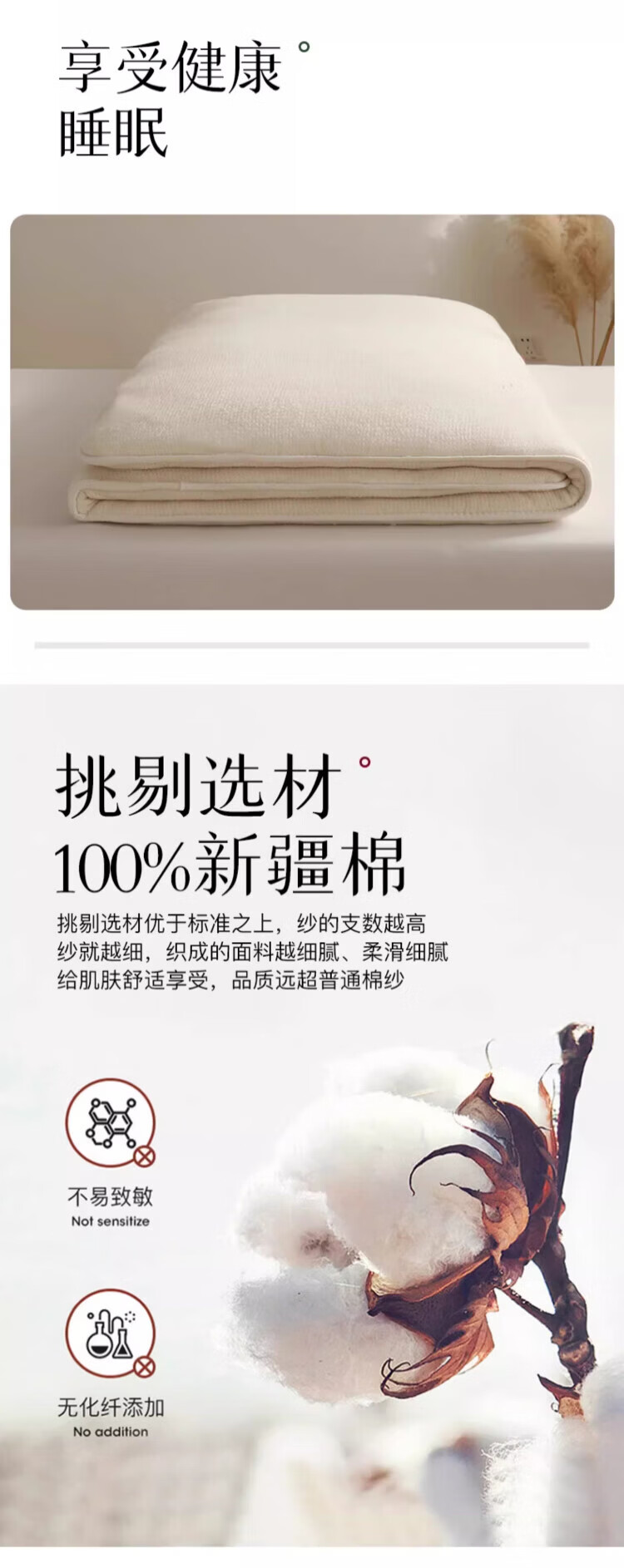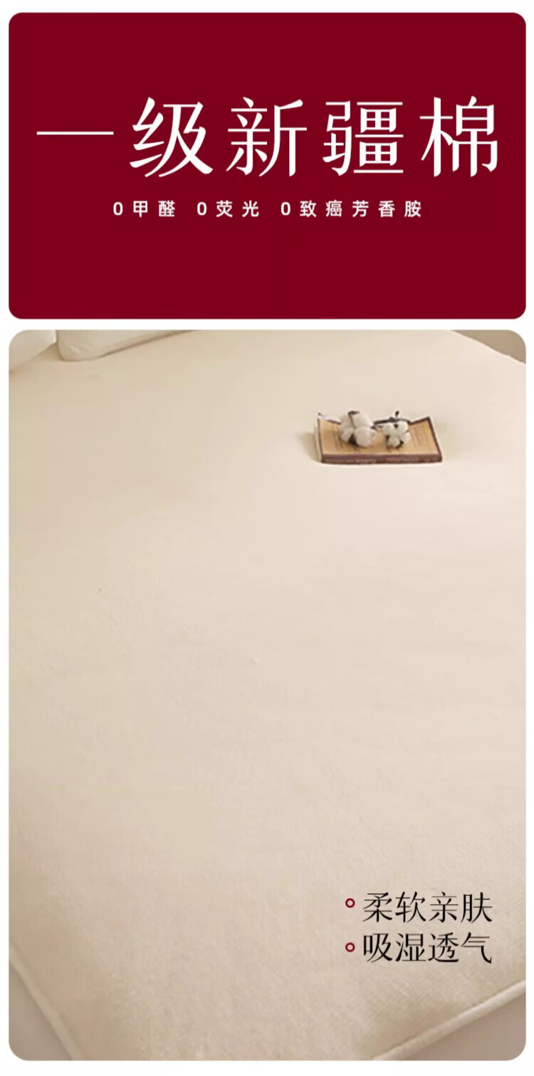 无印良品100%棉花床褥新疆一级棉花床垫遮盖物加厚被褥子 白色 180*200cm 8斤