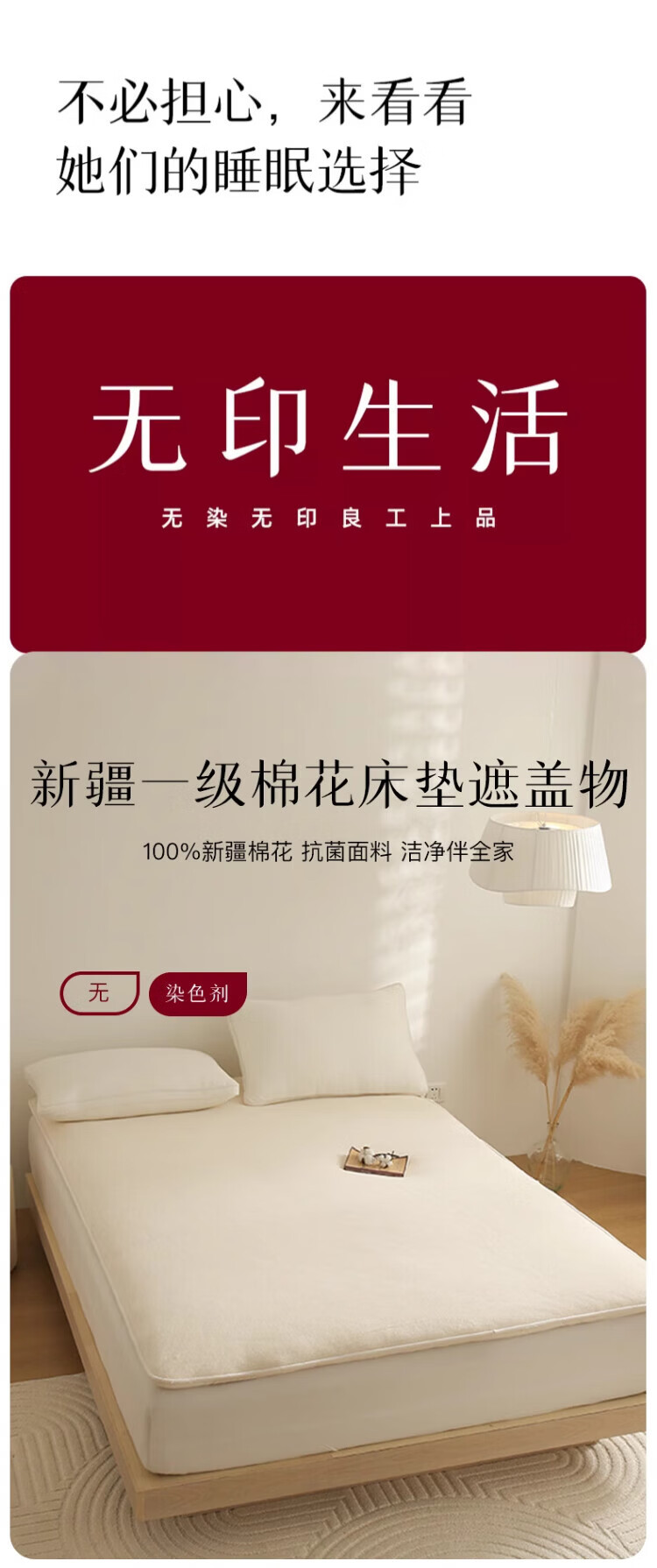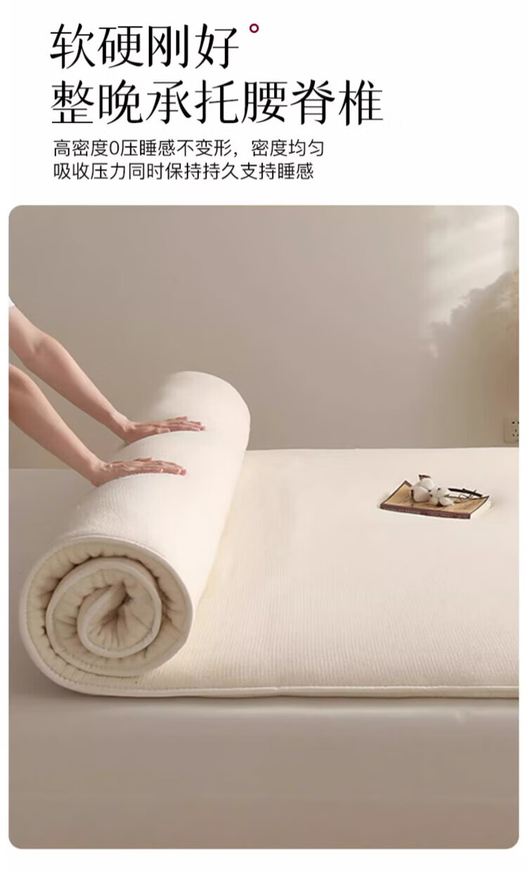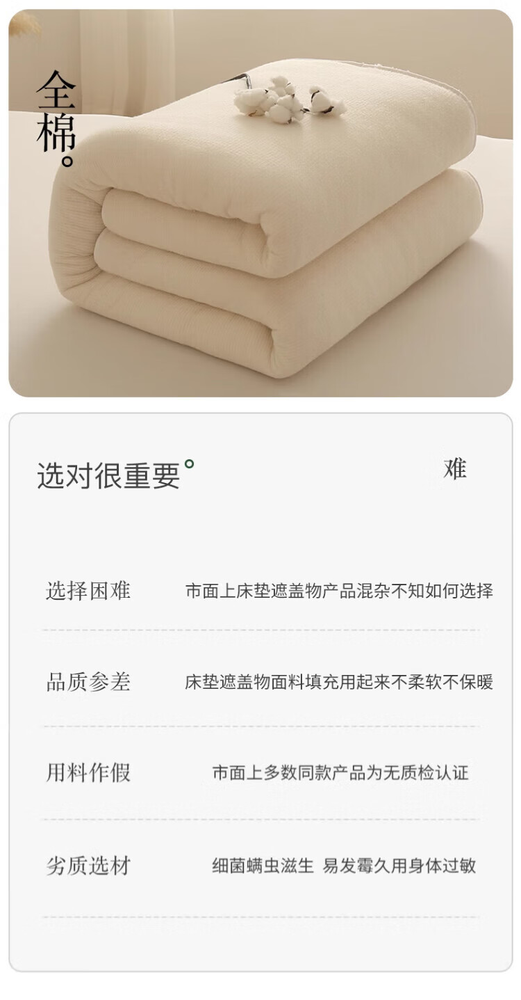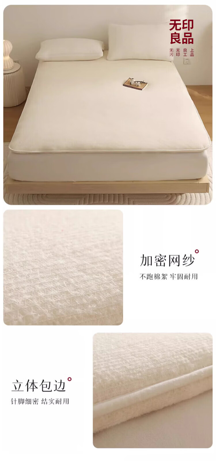 无印良品100%棉花床褥新疆一级棉花床垫遮盖物加厚被褥子 白色 180*200cm 8斤