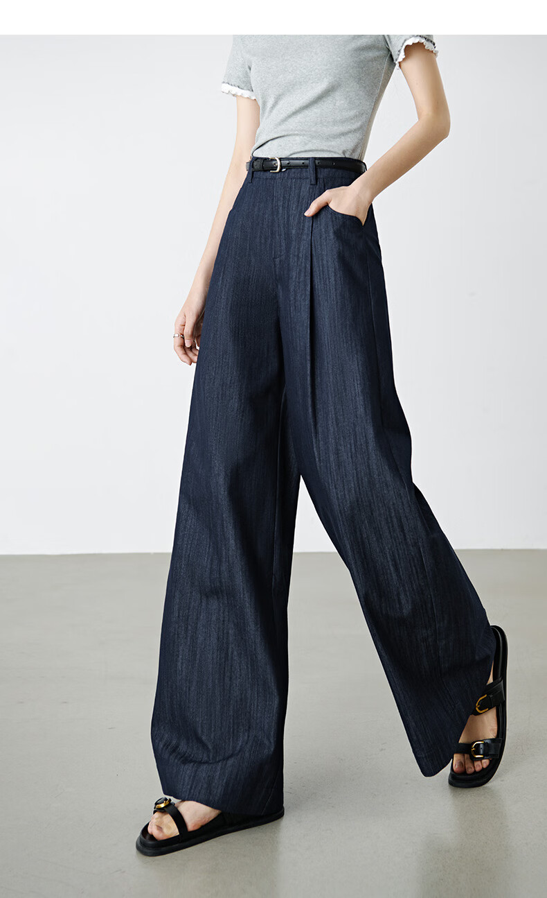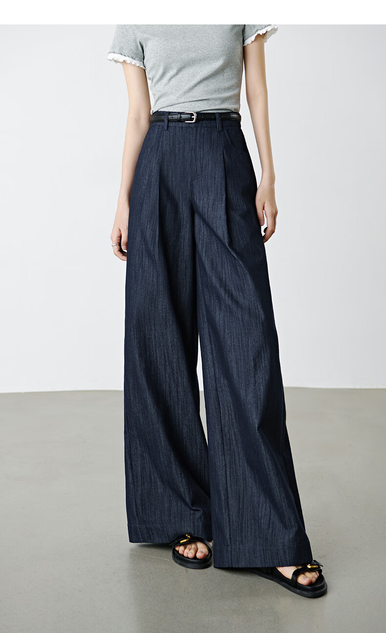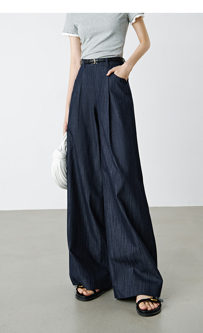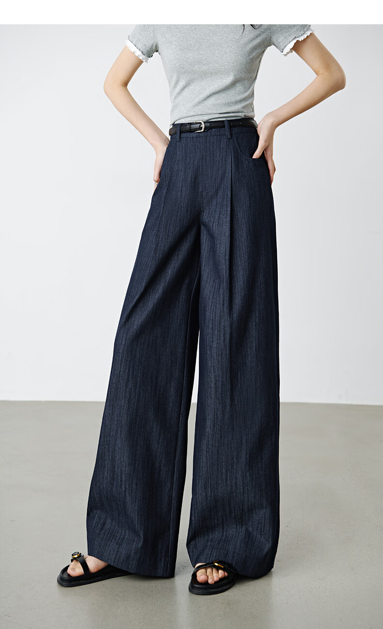 晚白【固色工艺】2026春款时尚棉料裤子高腰轻量感窄版显瘦阔腿裤女 深蓝色 29
