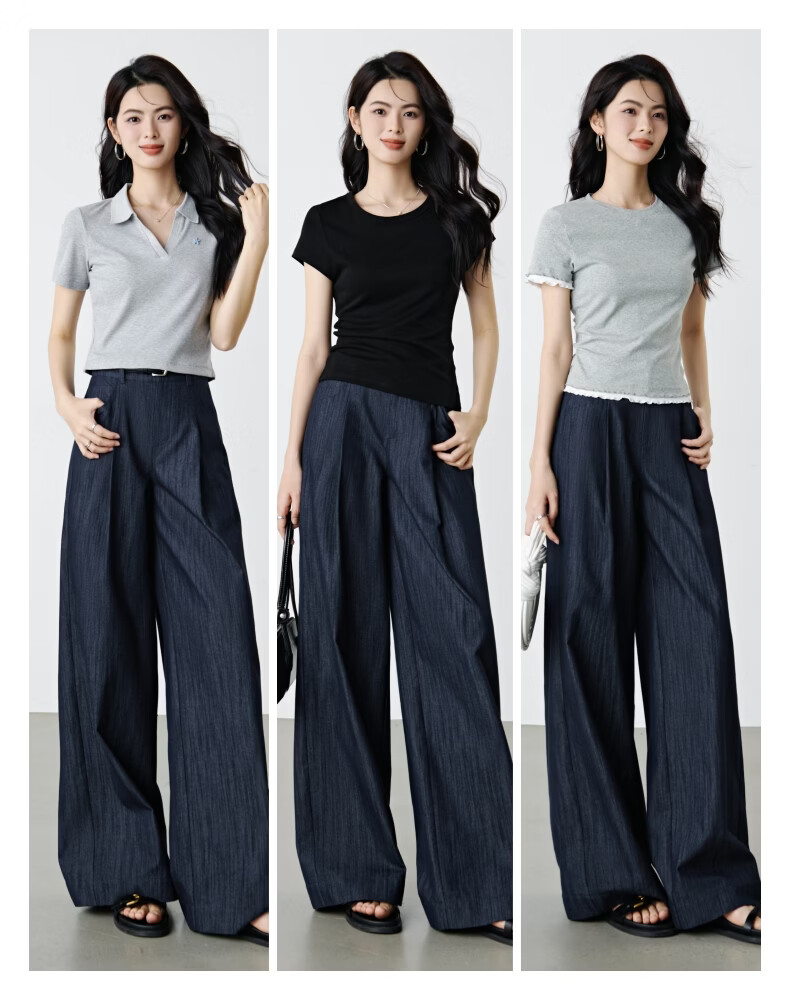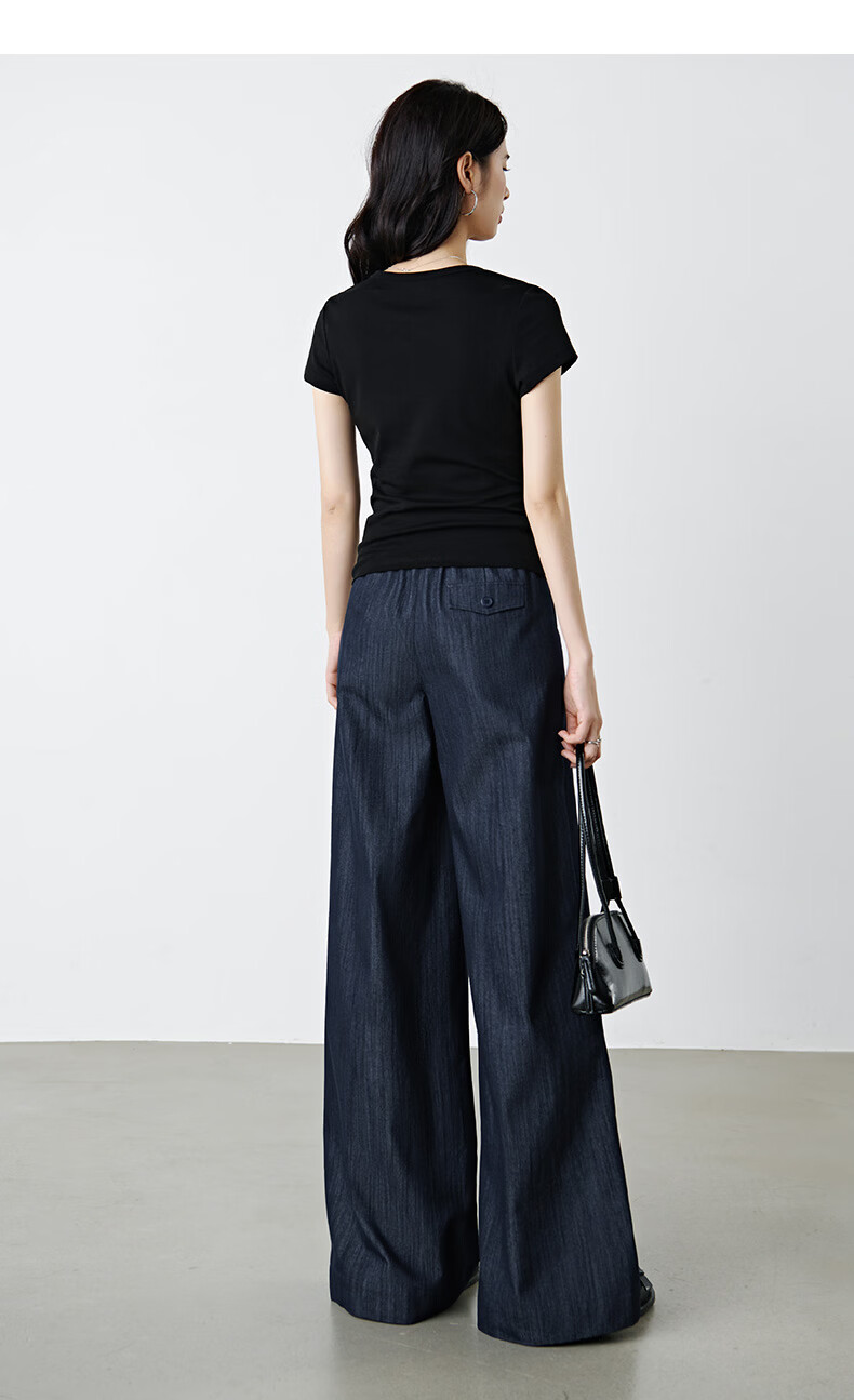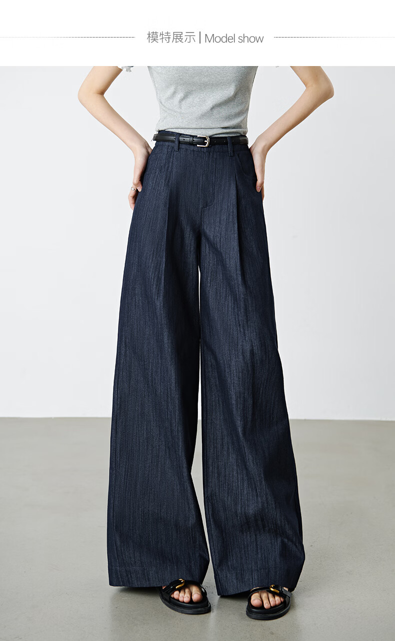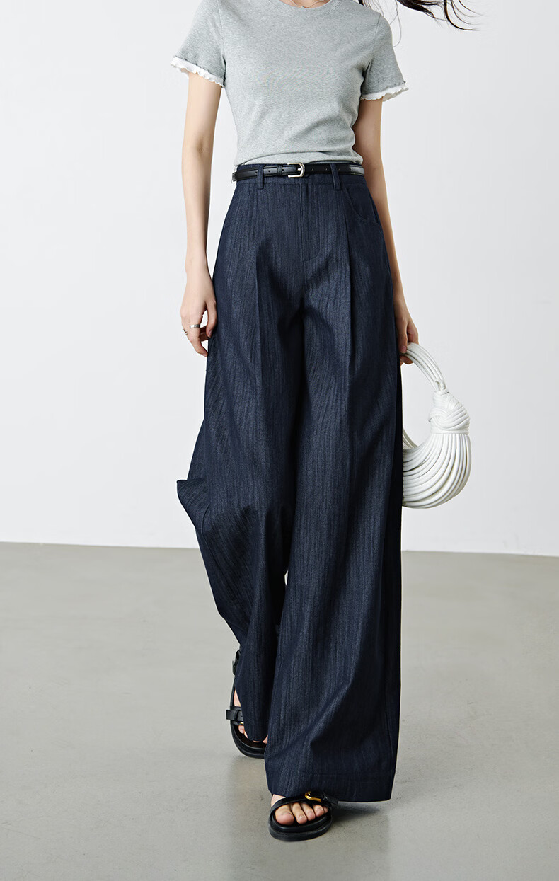 晚白【固色工艺】2026春款时尚棉料裤子高腰轻量感窄版显瘦阔腿裤女 深蓝色 29