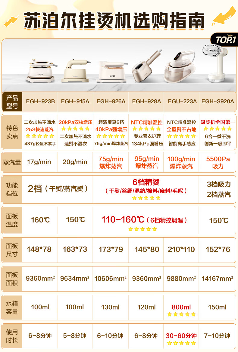 苏泊尔(SUPOR)【微增压】手持挂烫机20g/min大蒸汽100ml水箱家用熨烫机拼豆电熨斗小型便携式EGH-915A团购礼物