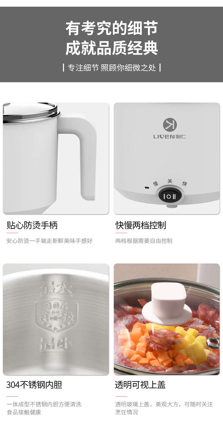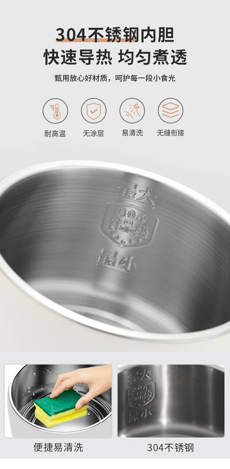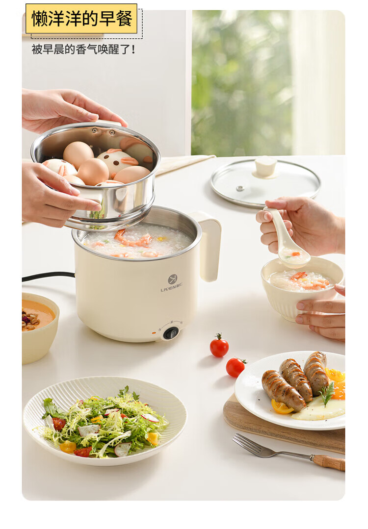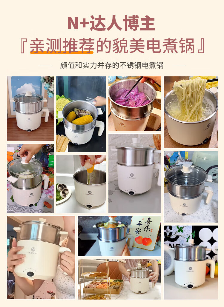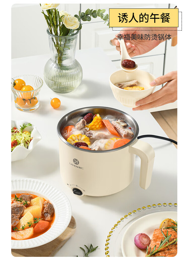 利仁(Liven)电煮锅304不锈钢0涂层1.8L小电锅宿舍电火锅电蒸锅炖蒸煮一体多功能学生锅小型1-2人用DHG-B151