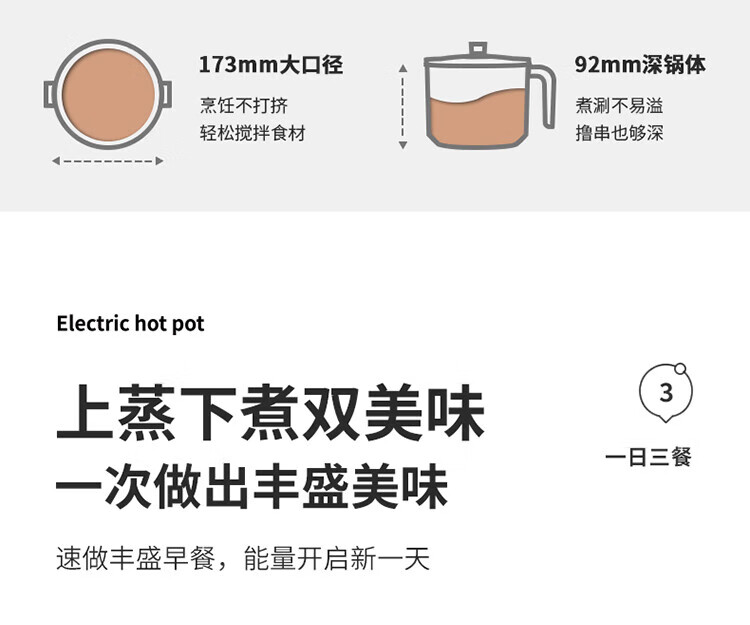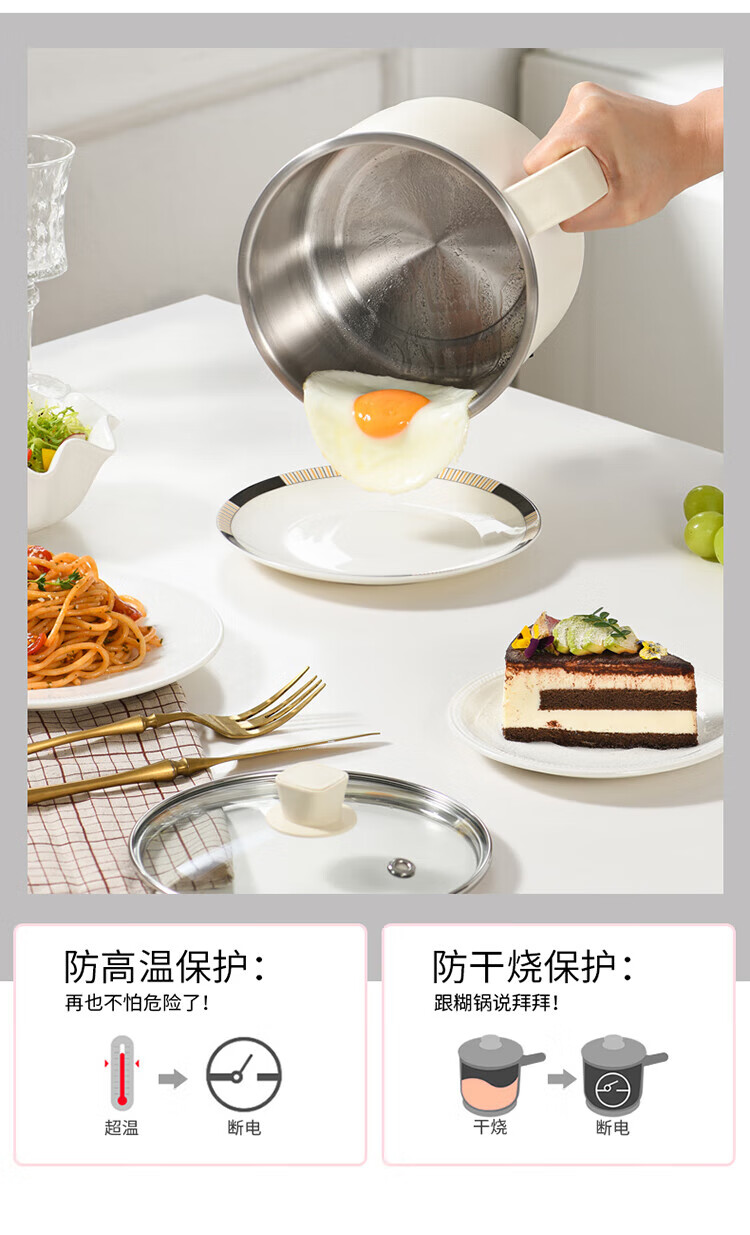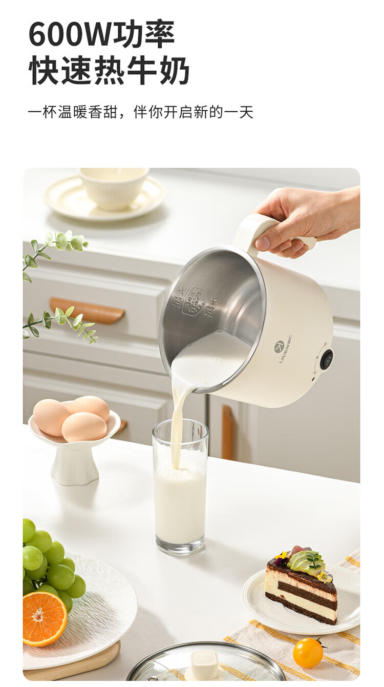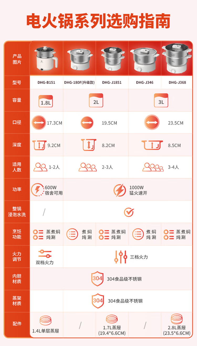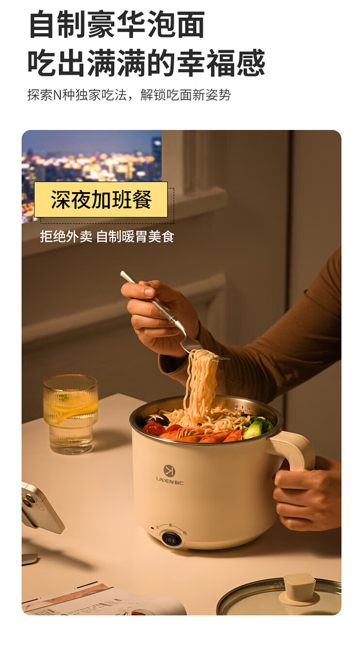 利仁(Liven)电煮锅304不锈钢0涂层1.8L小电锅宿舍电火锅电蒸锅炖蒸煮一体多功能学生锅小型1-2人用DHG-B151