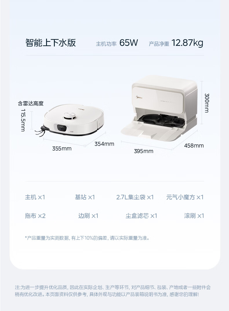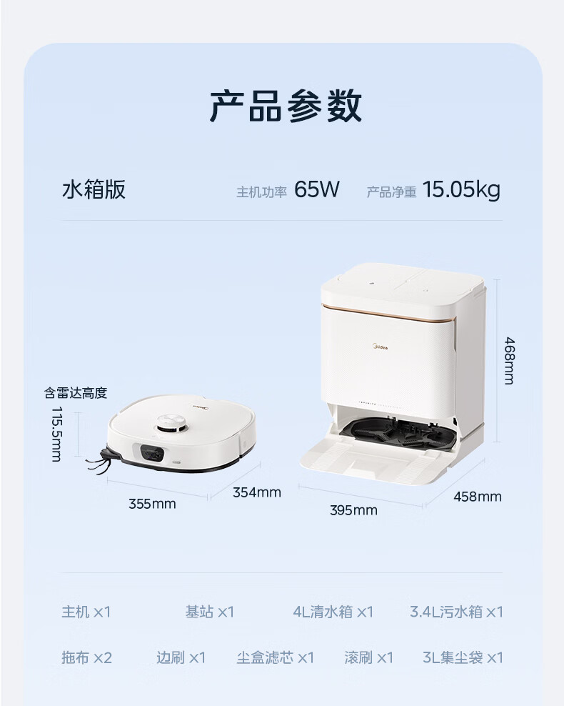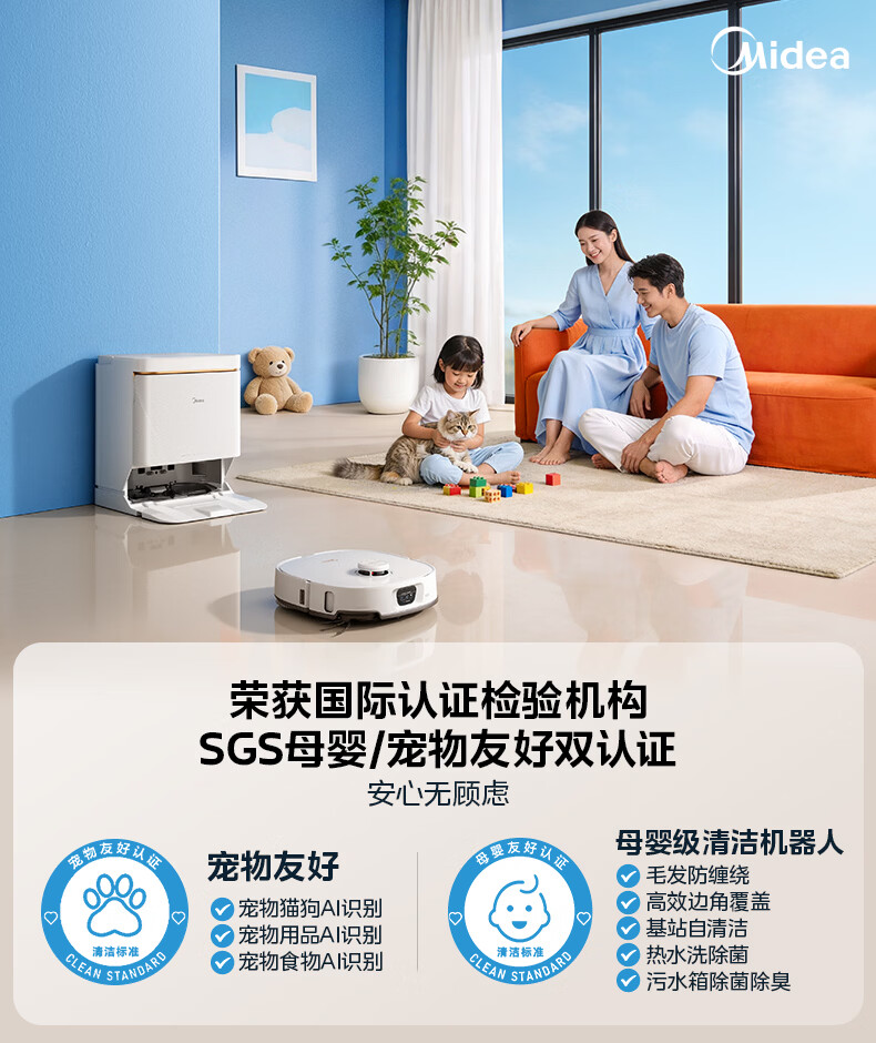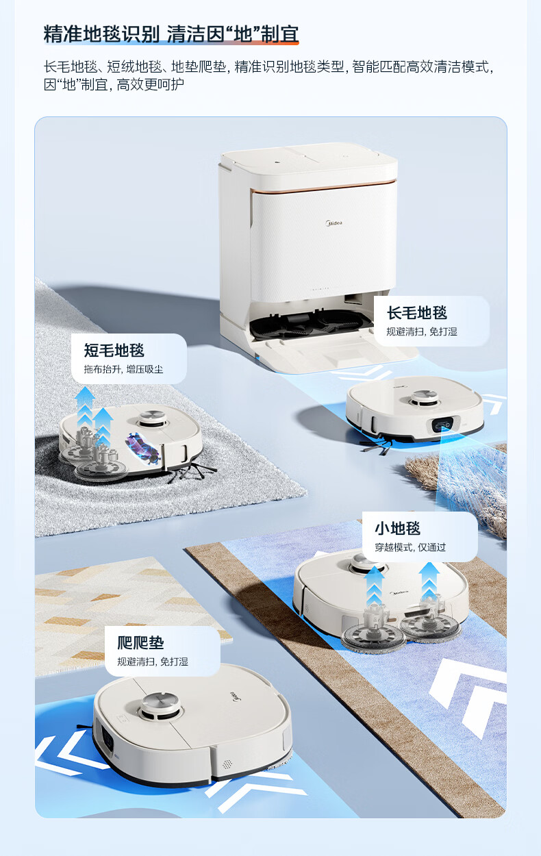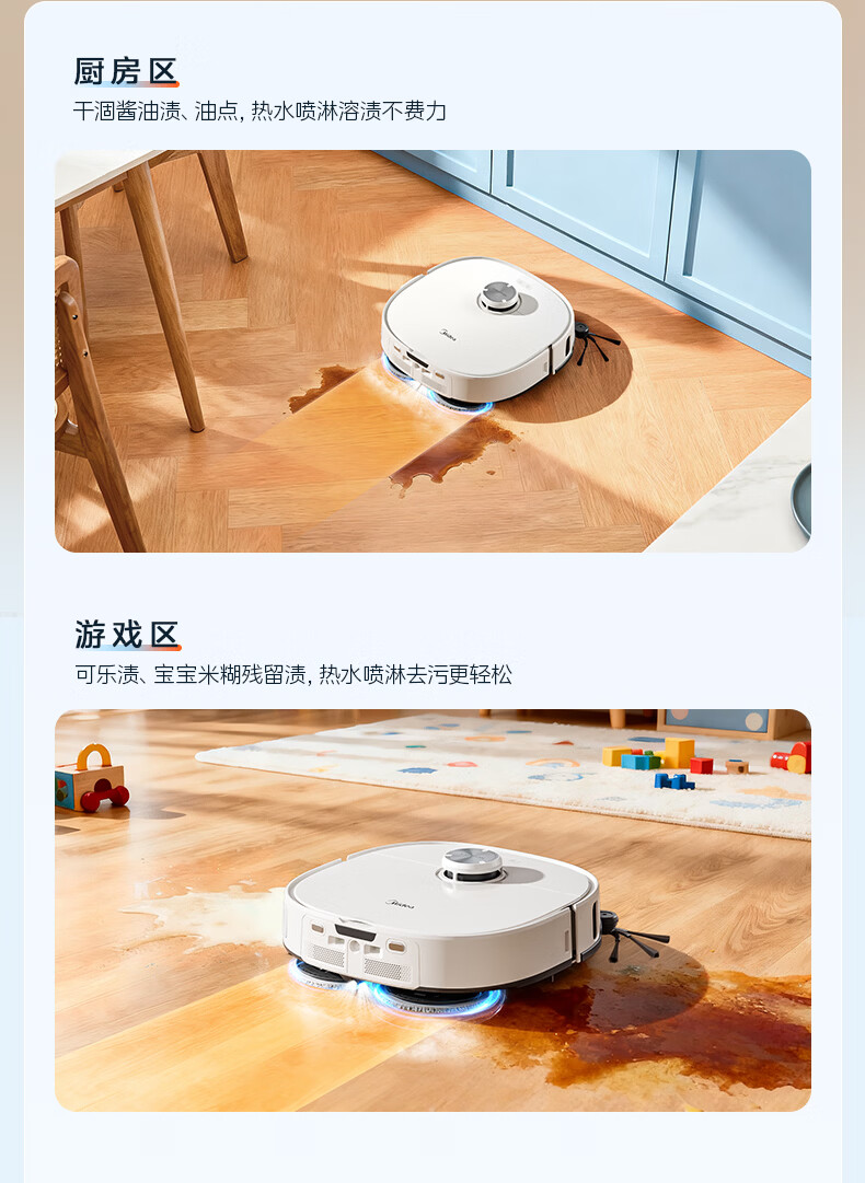 美的(Midea)V16s Pro扫地机器人扫拖一体自动清洗【热水喷拖除干渍】自动集尘热水洗拖布宠物清洁水箱版
