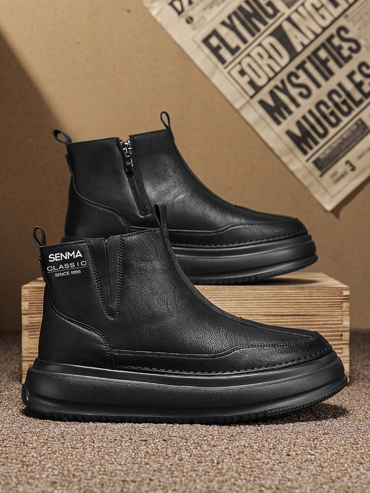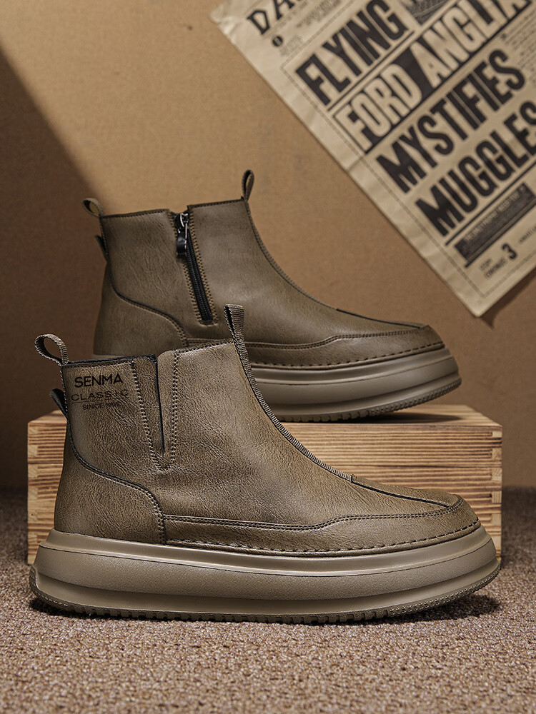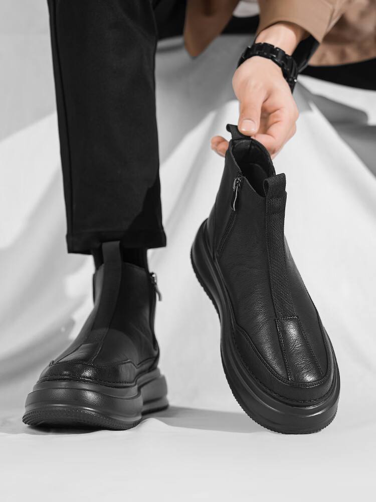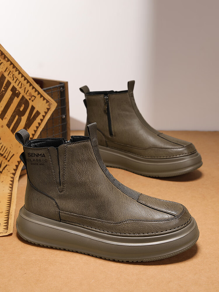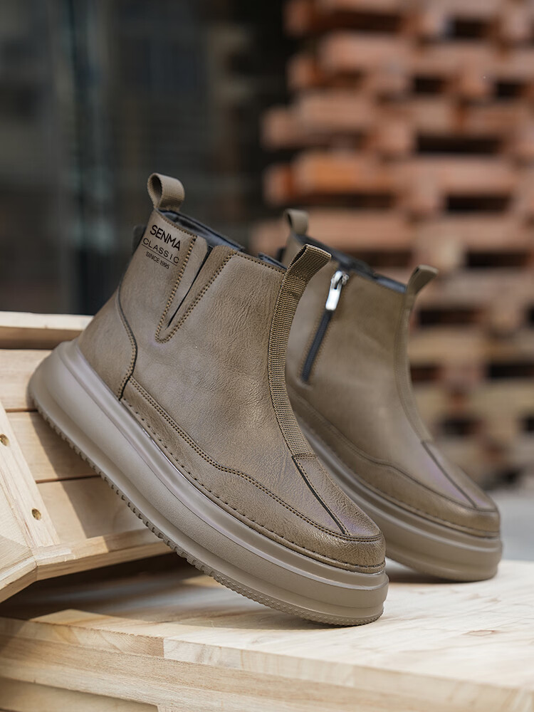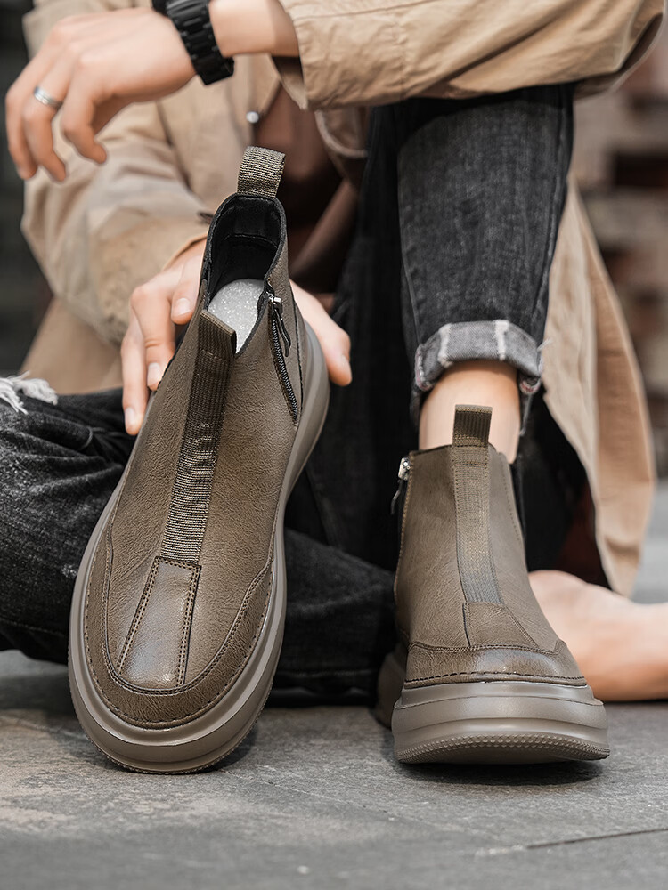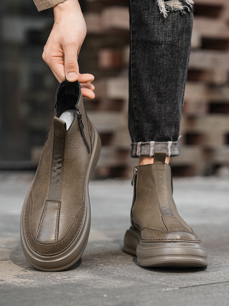 森馬马丁靴男春季英伦风复古高帮厚底真皮防水皮靴男士厚底防滑工装靴 卡其【基础款】 39 标准码数/现货秒发