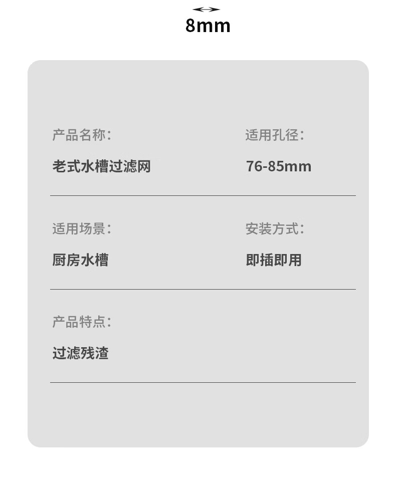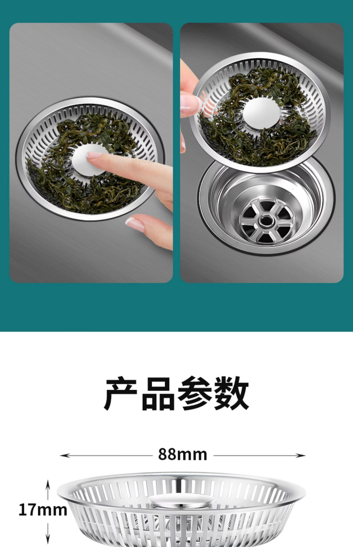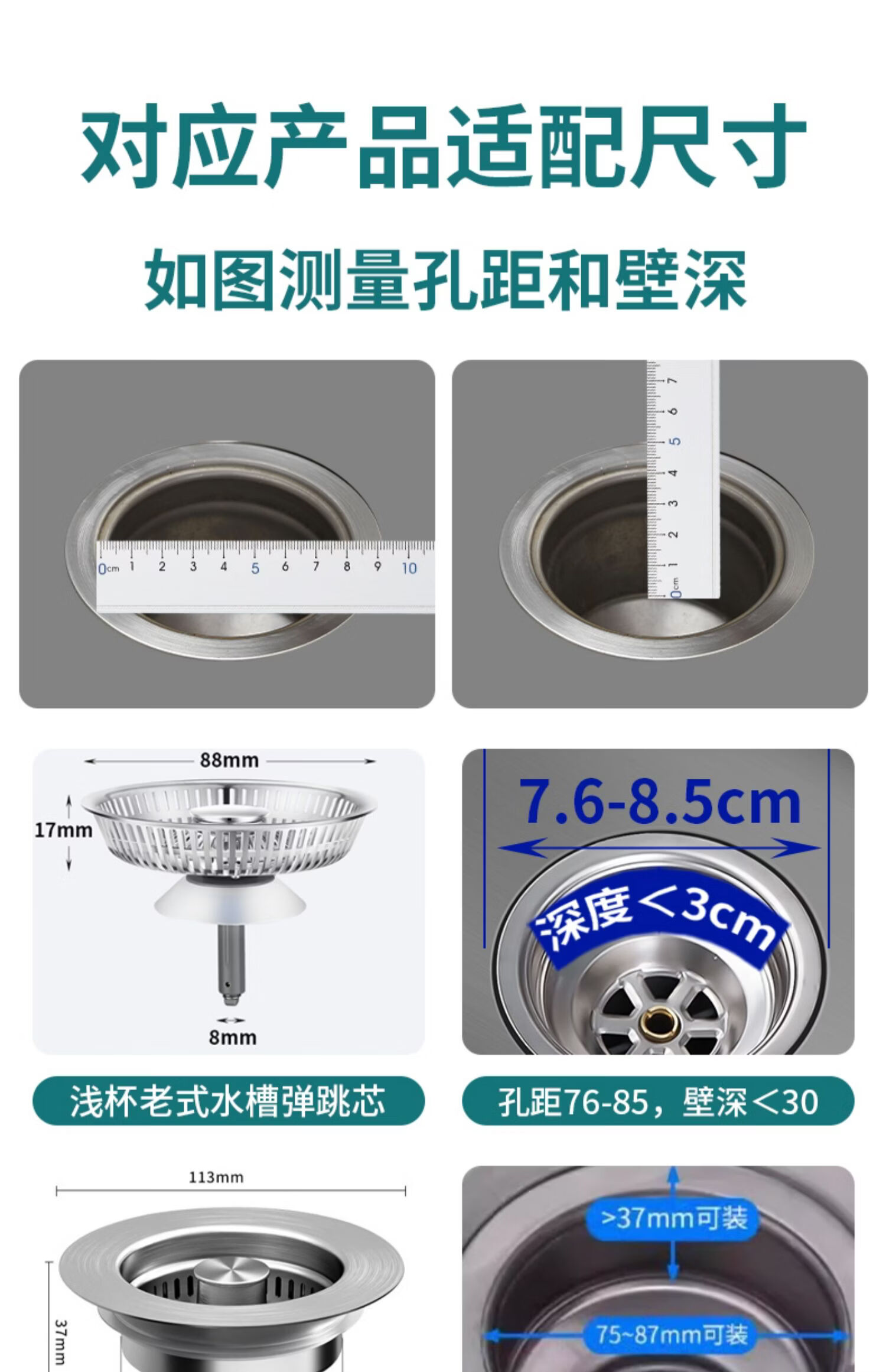 Jeonestan老式浅水槽厨房过滤网洗菜盆水槽堵水盖封口盖洗菜池漏水塞子通用 【不锈钢网款】老式水槽过滤网-浅深度3cm