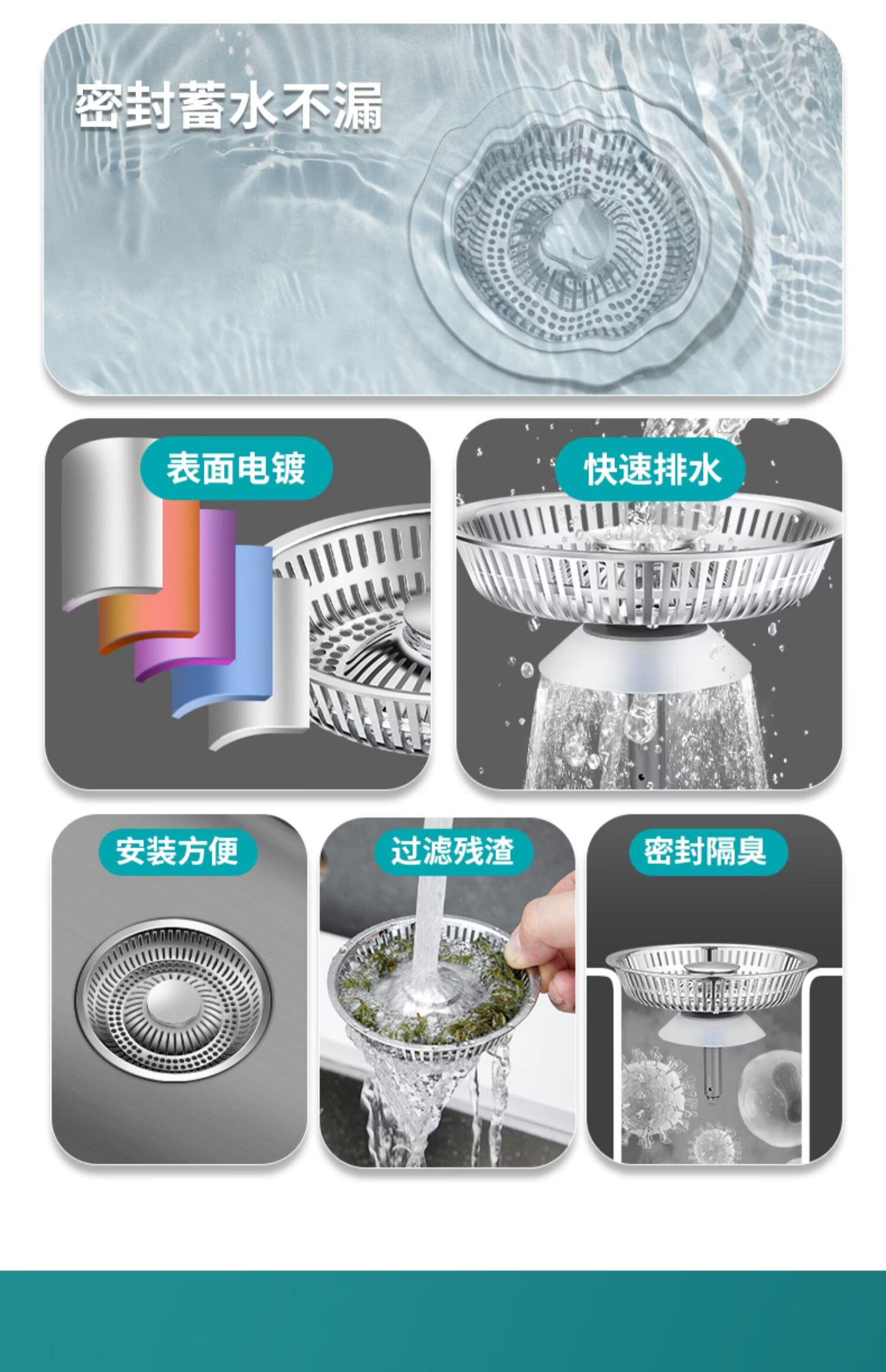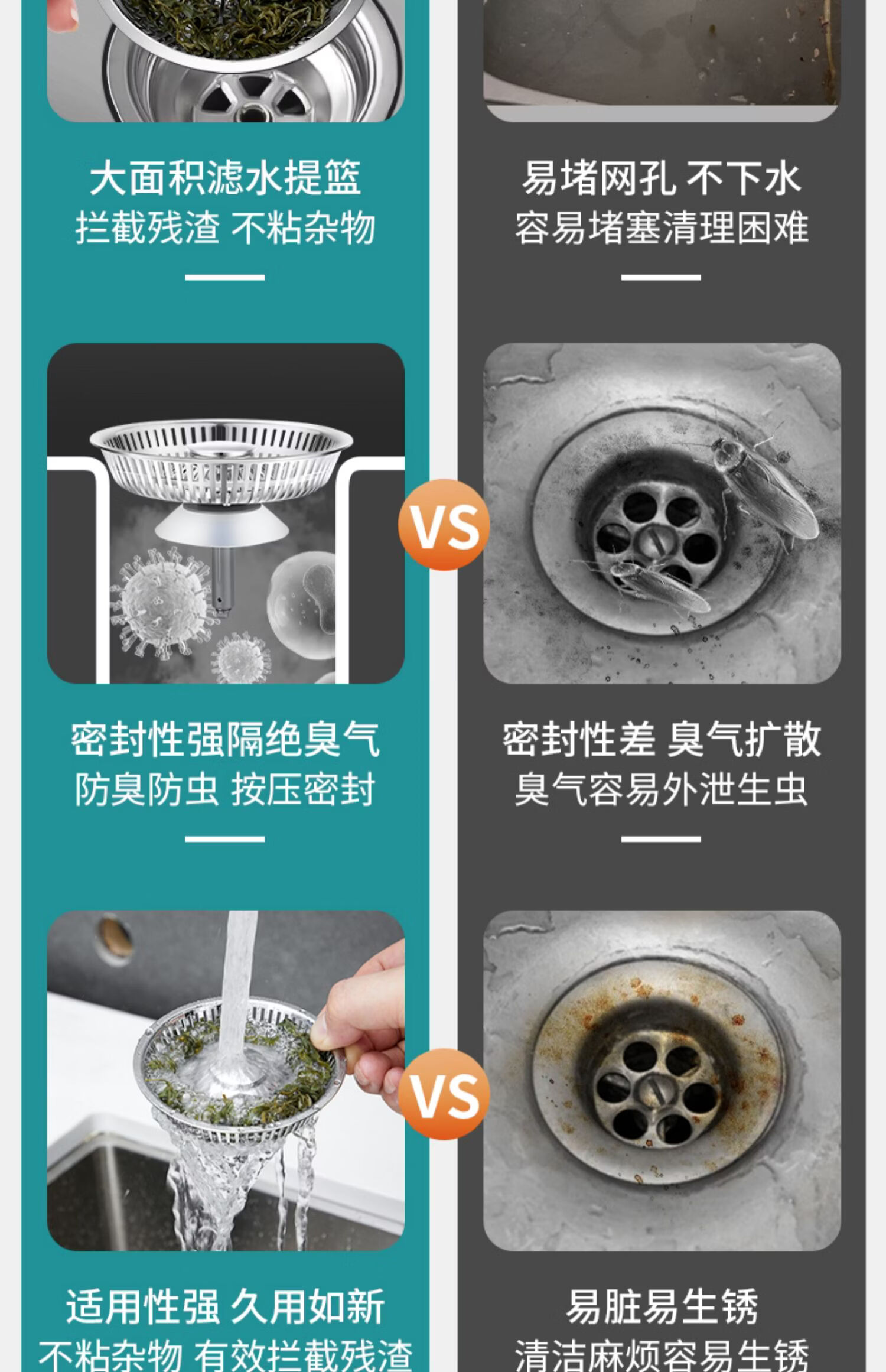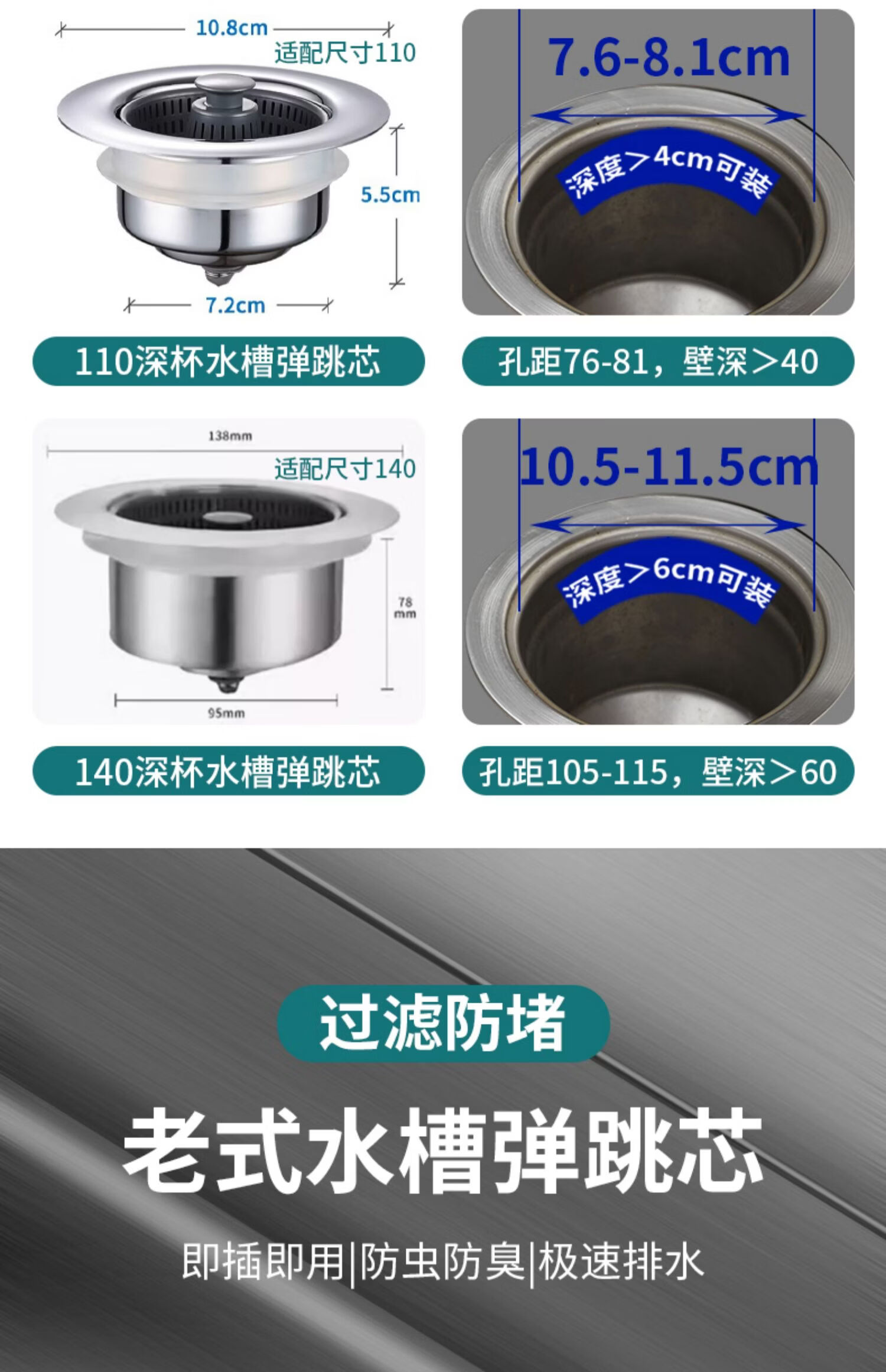 Jeonestan老式浅水槽厨房过滤网洗菜盆水槽堵水盖封口盖洗菜池漏水塞子通用 【不锈钢网款】老式水槽过滤网-浅深度3cm